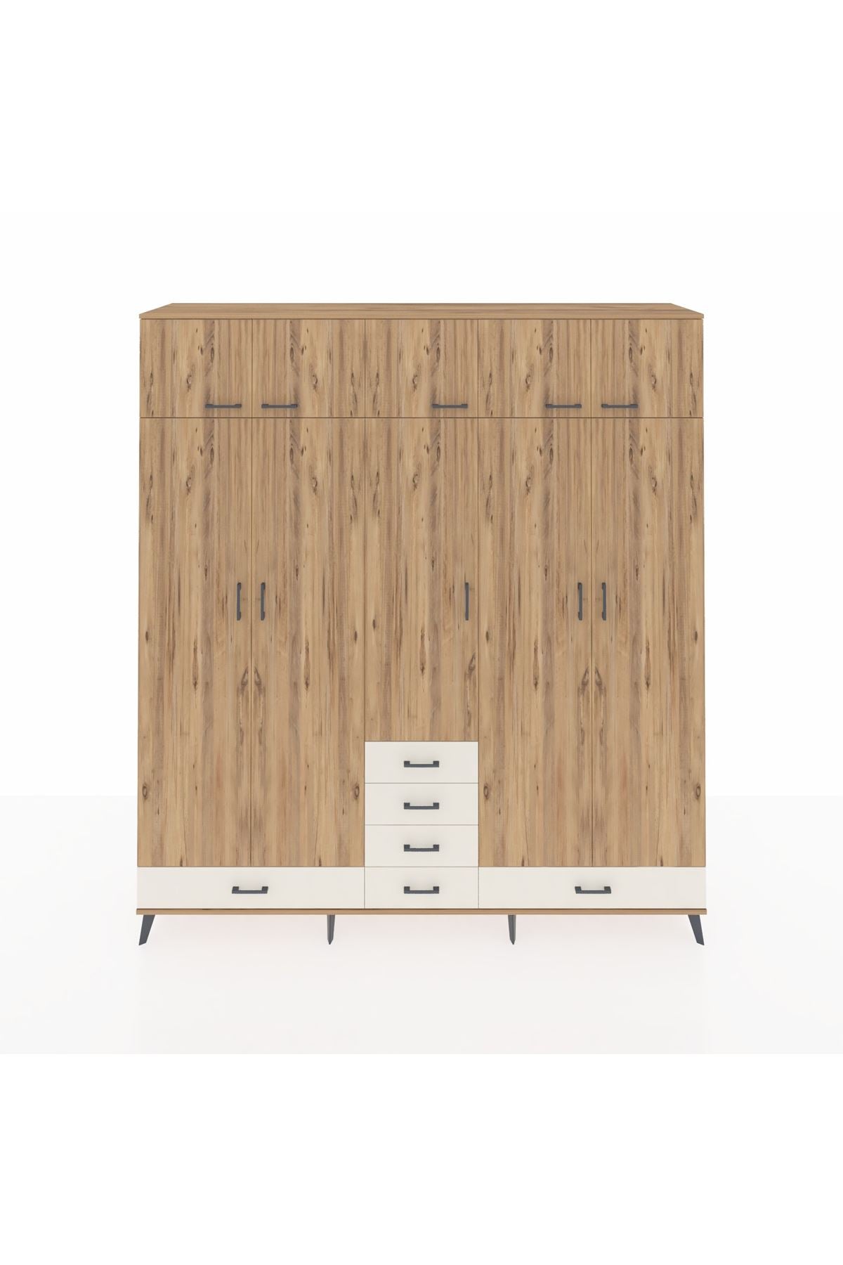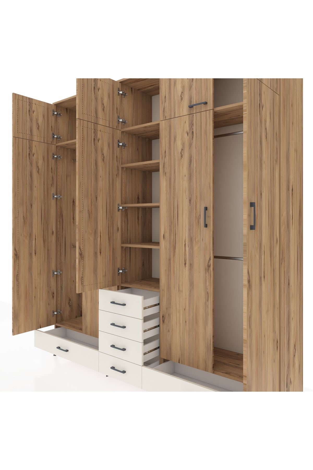 Hyperion Dolap 6 Raflı 6 Çekmeceli 4 Askılı 220x44x243 Çam-Çam/Aytaşı