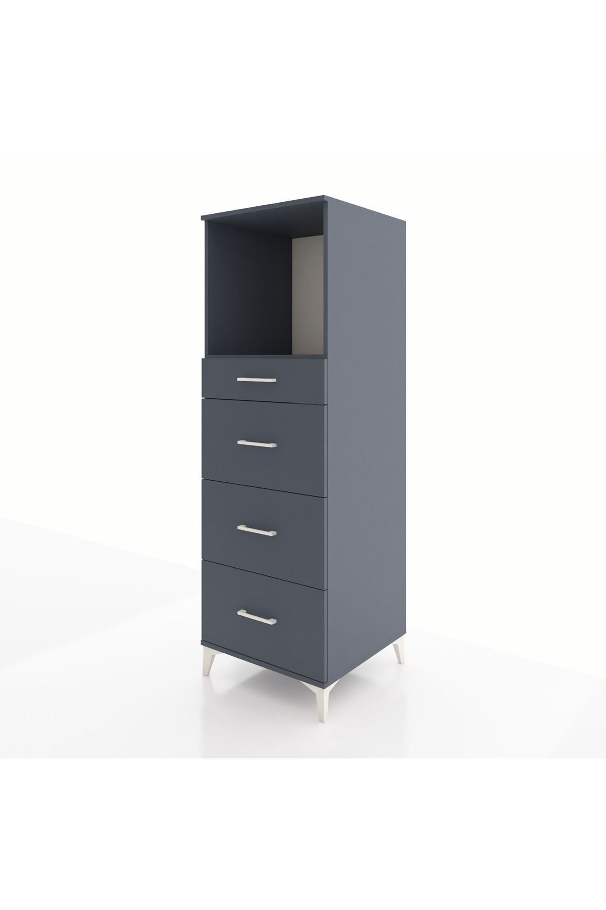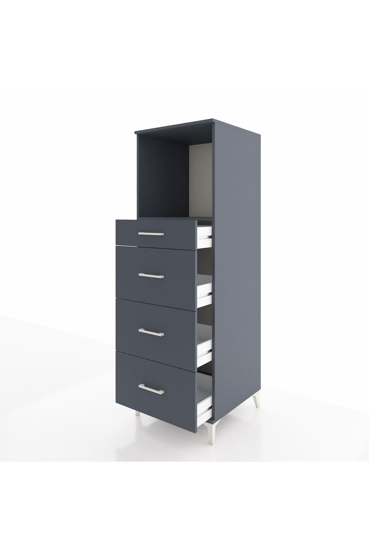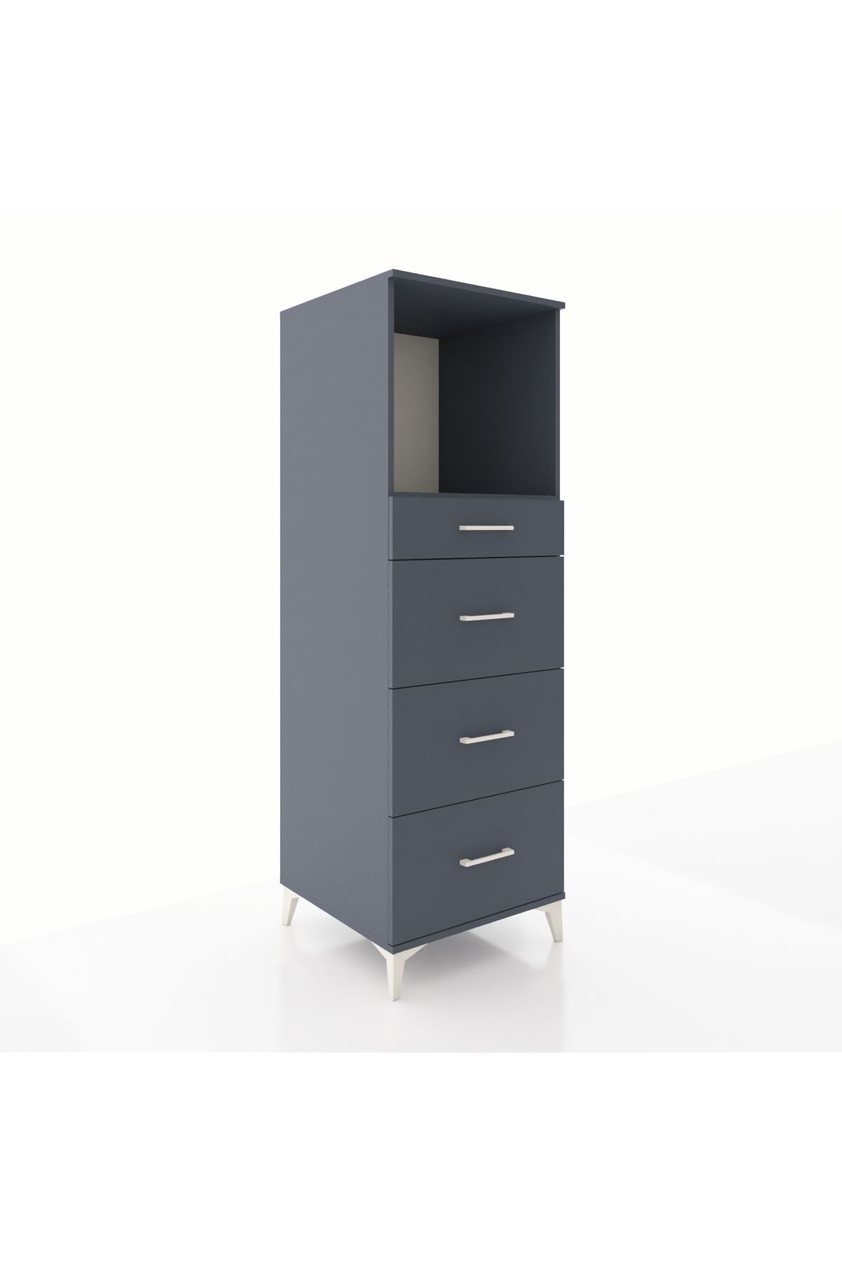 Kronos Dolap Tek Raflı 4 Çekmeceli 60x59x182 Antrasit-Antrasit