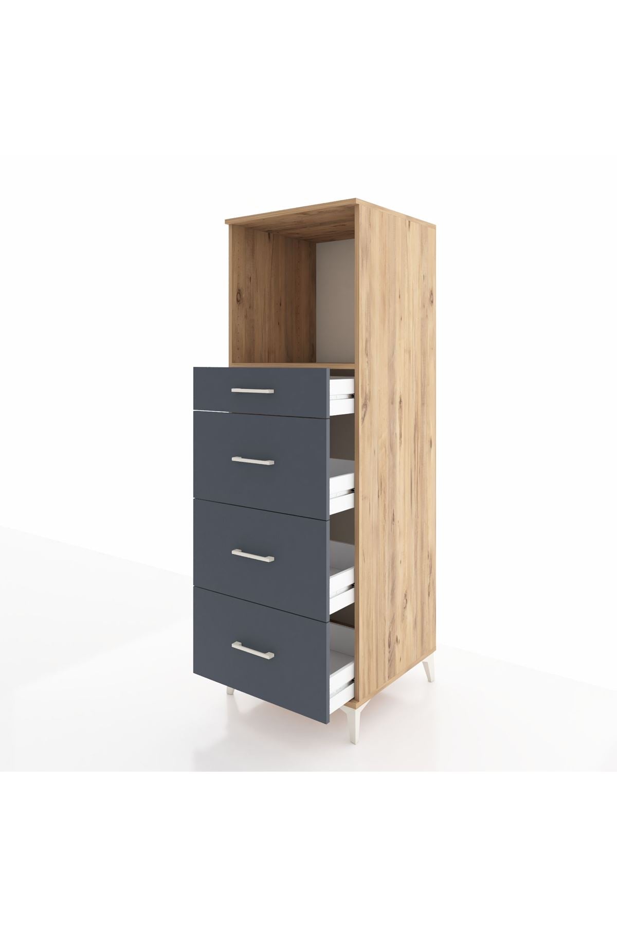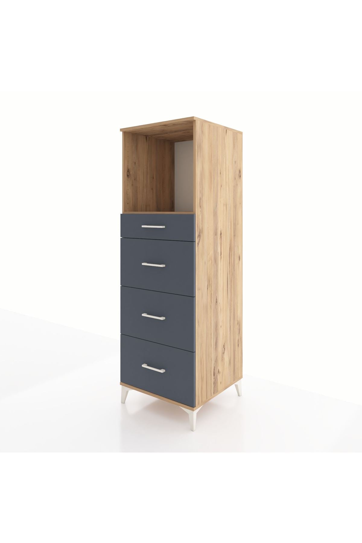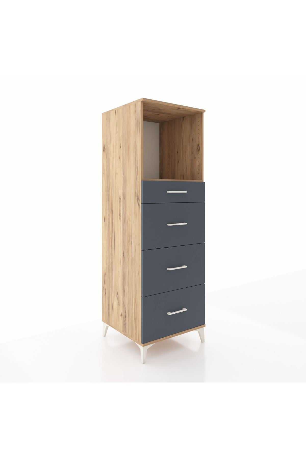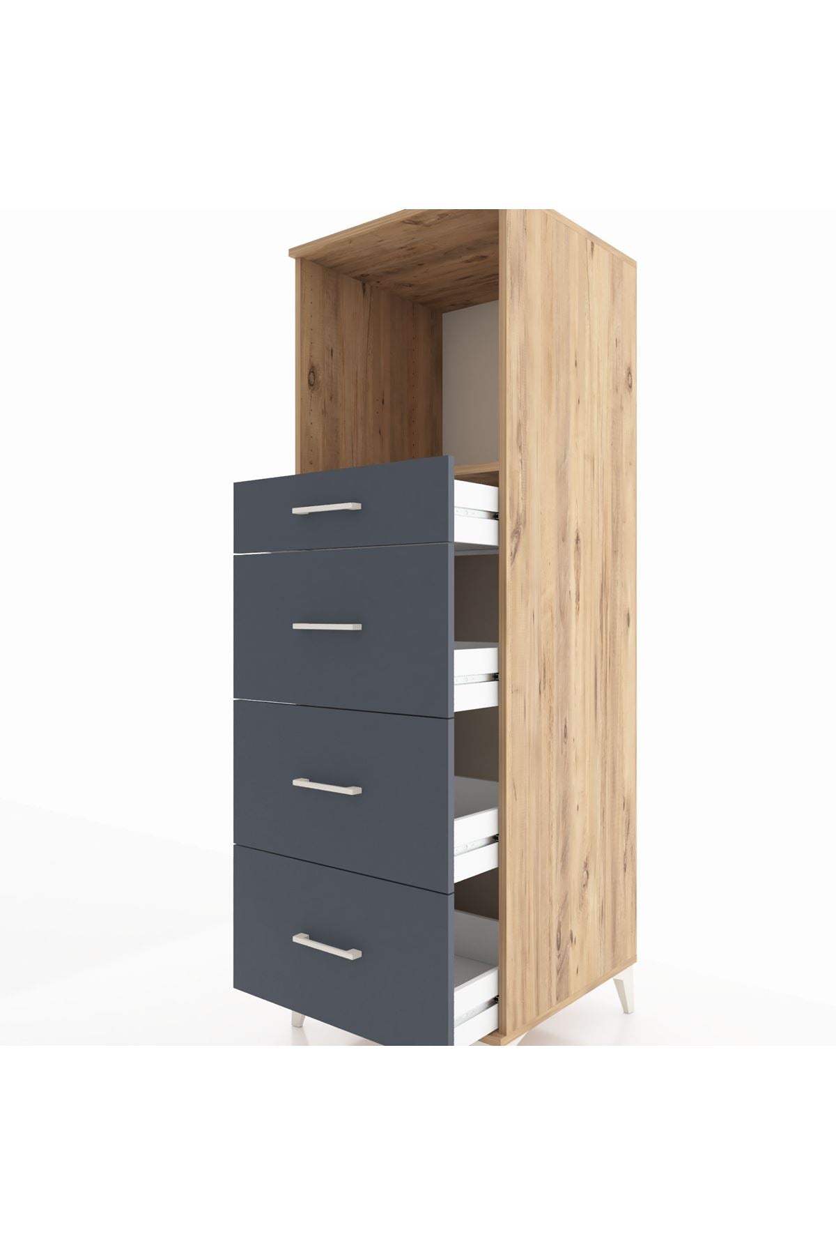 Kronos Dolap Tek Raflı 4 Çekmeceli 60x59x182 Çam-Antrasit
