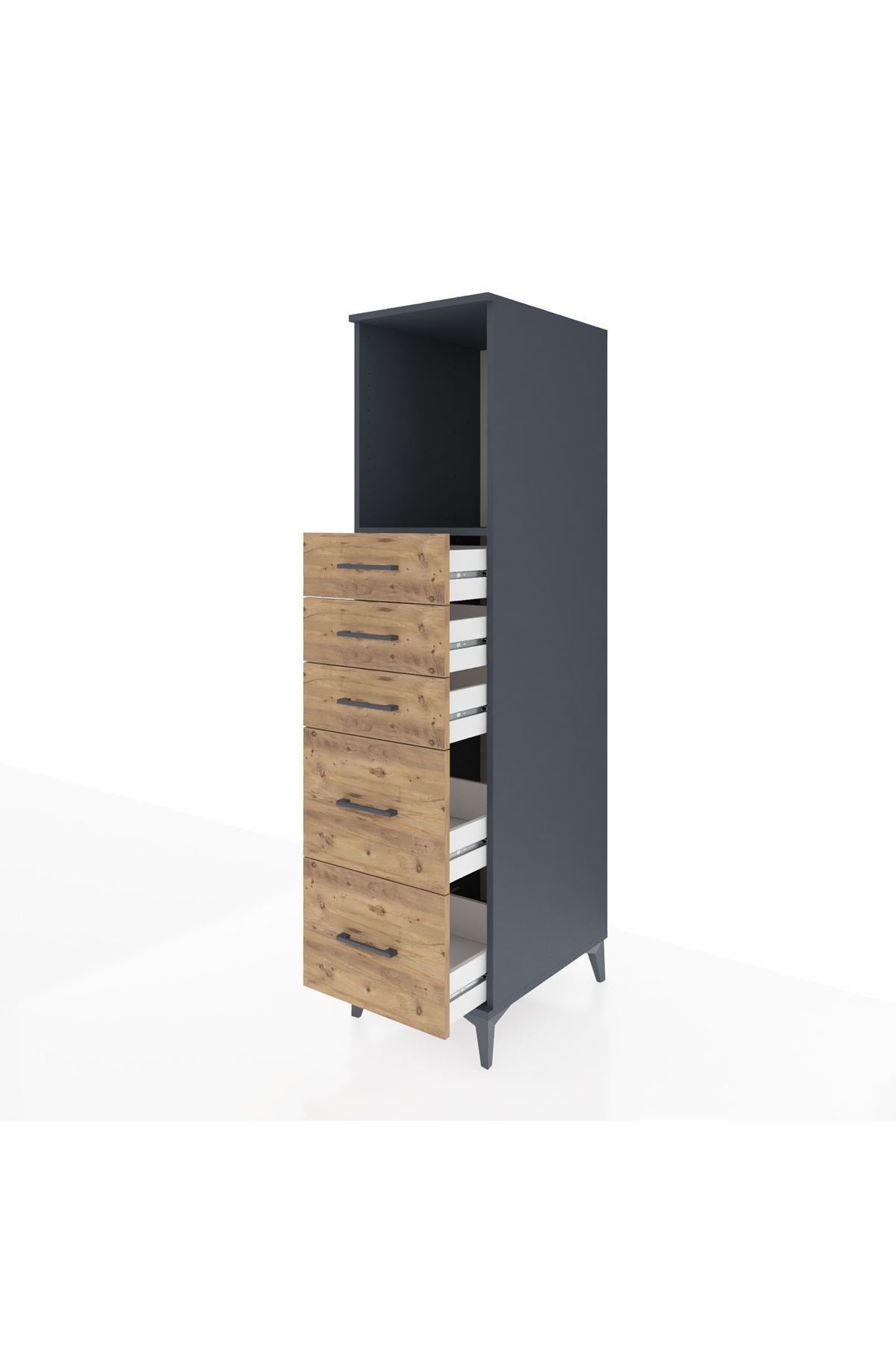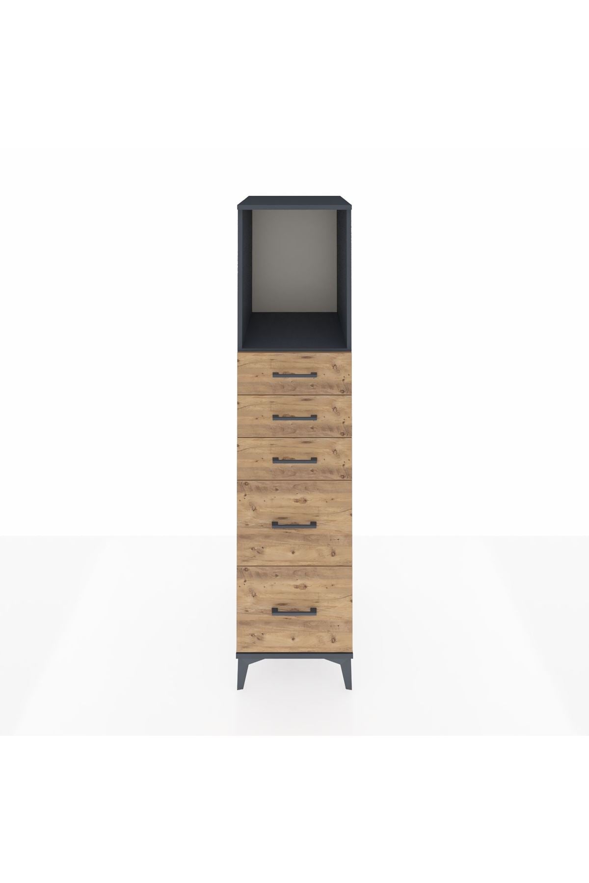 Kronos Dolap Tek Raflı 5 Çekmeceli 44x59x182 Antrasit-Çam