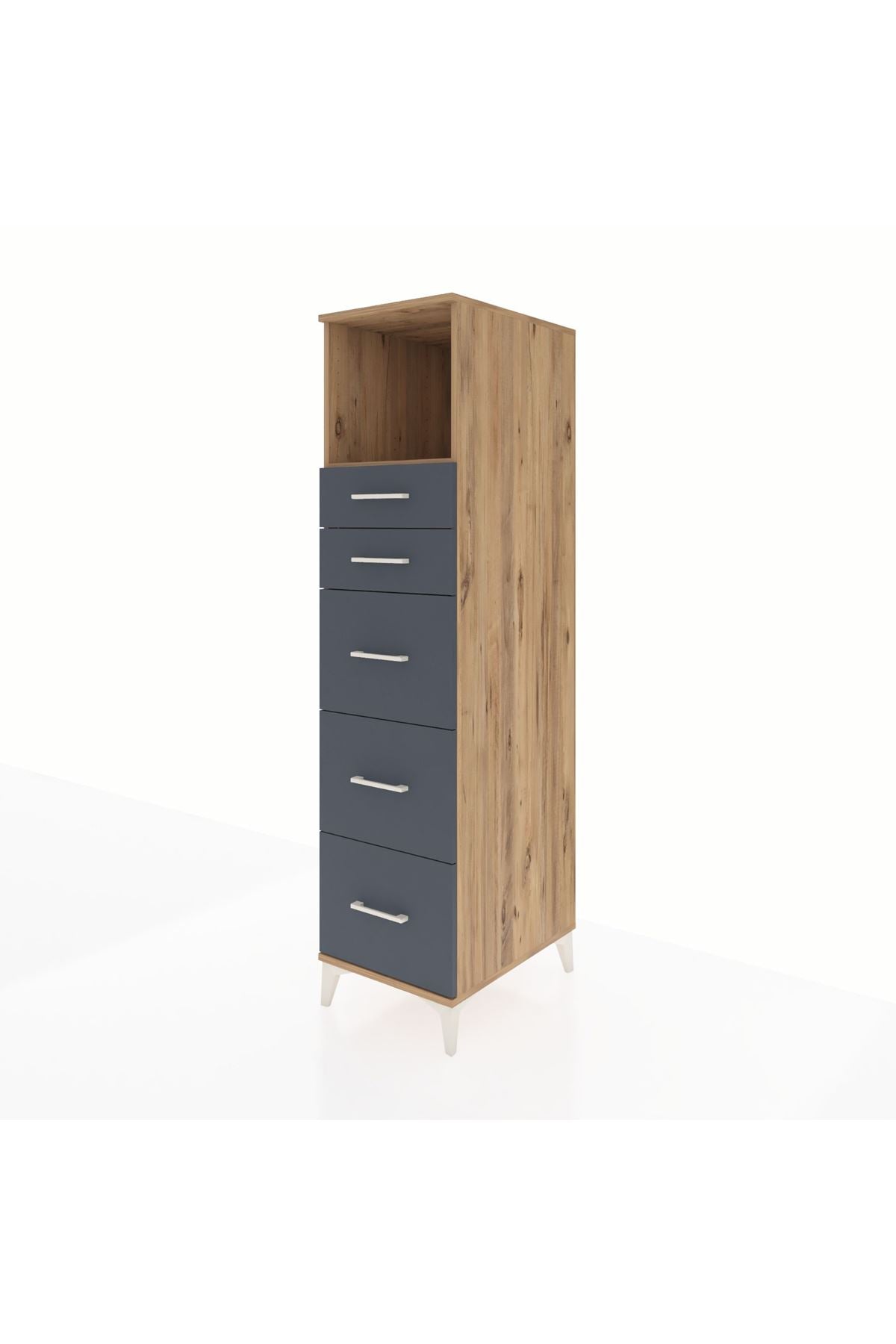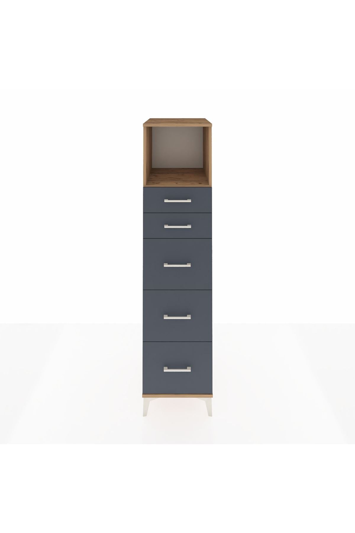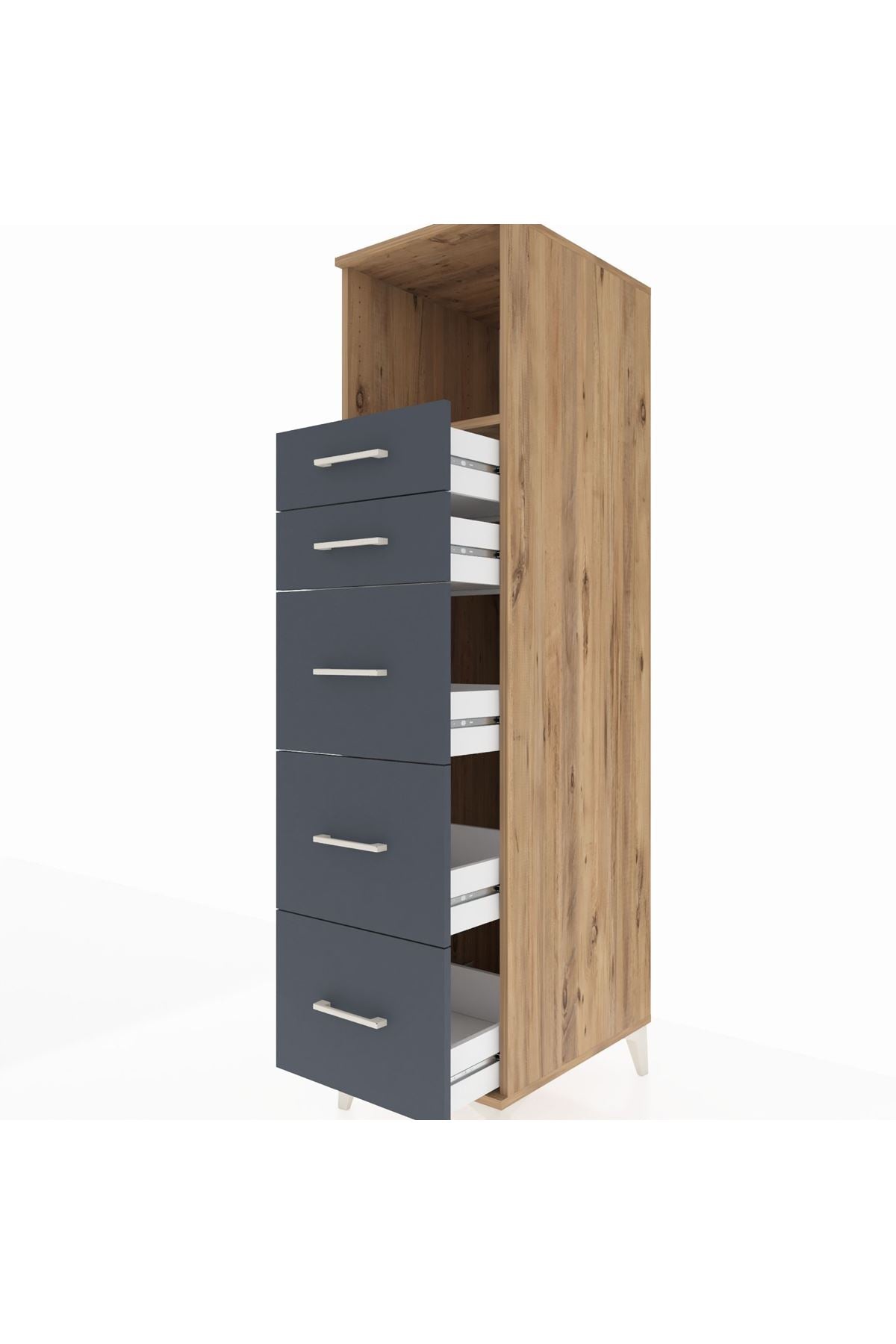 Kronos Dolap Tek Raflı 5 Çekmeceli 44x59x182 Çam-Antrasit
