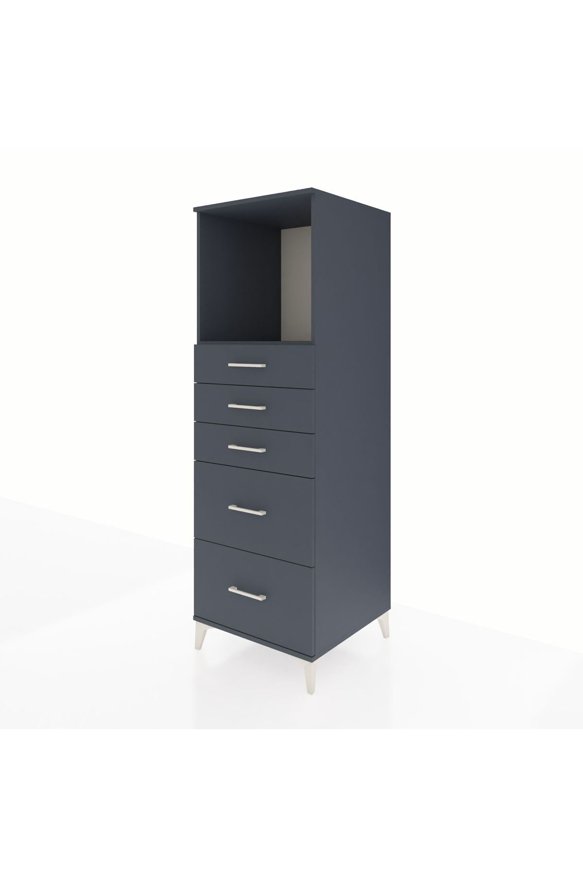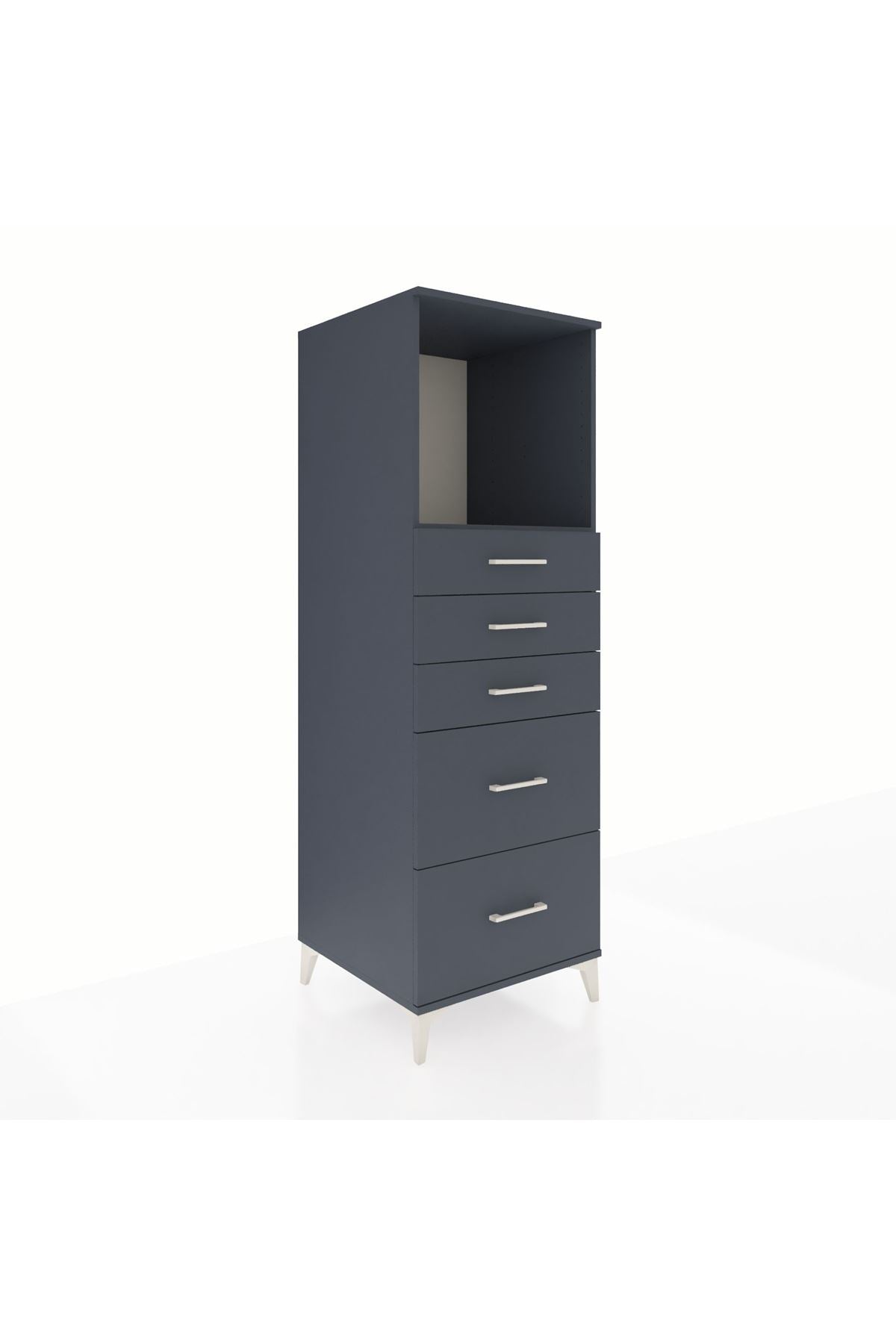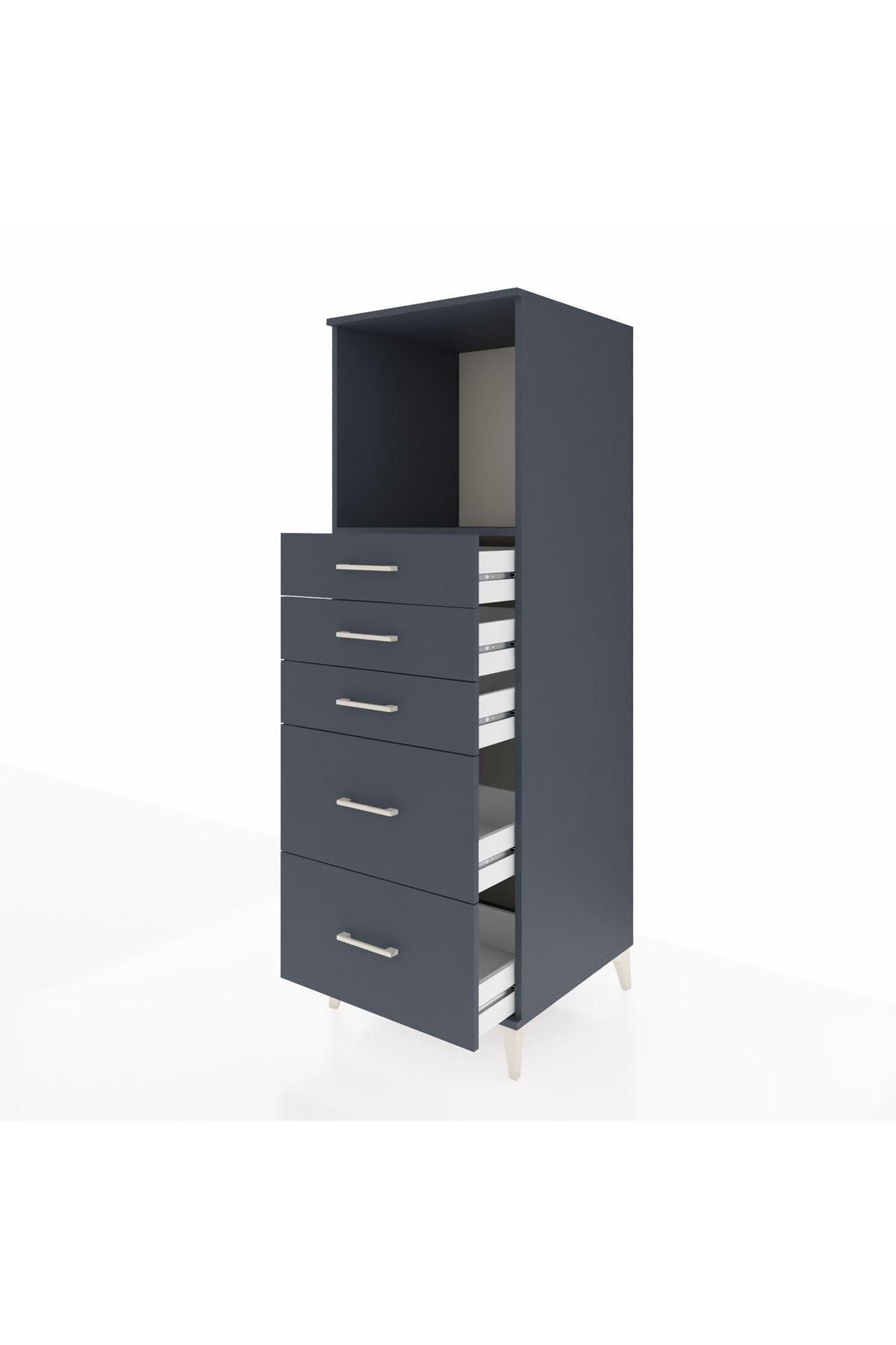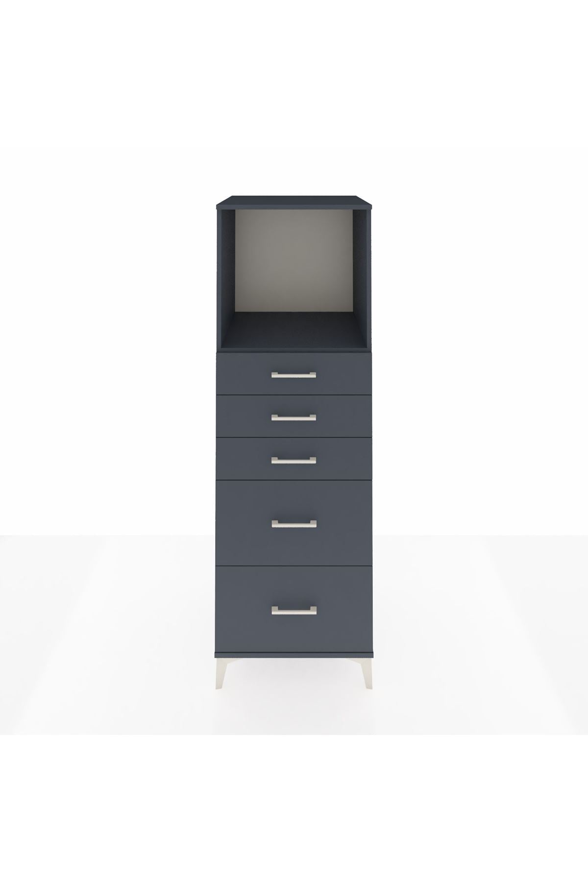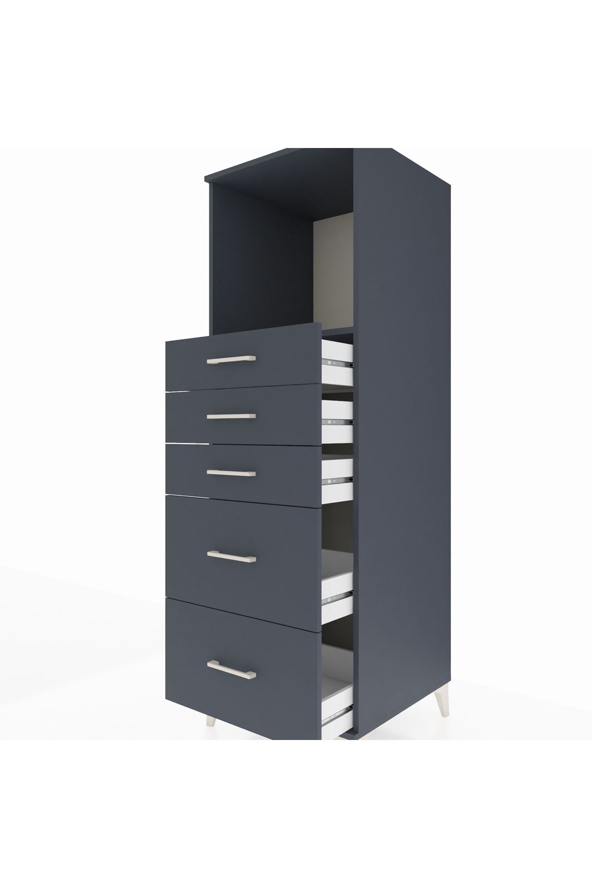 Kronos Dolap Tek Raflı 5 Çekmeceli 60x59x182 Antrasit-Antrasit
