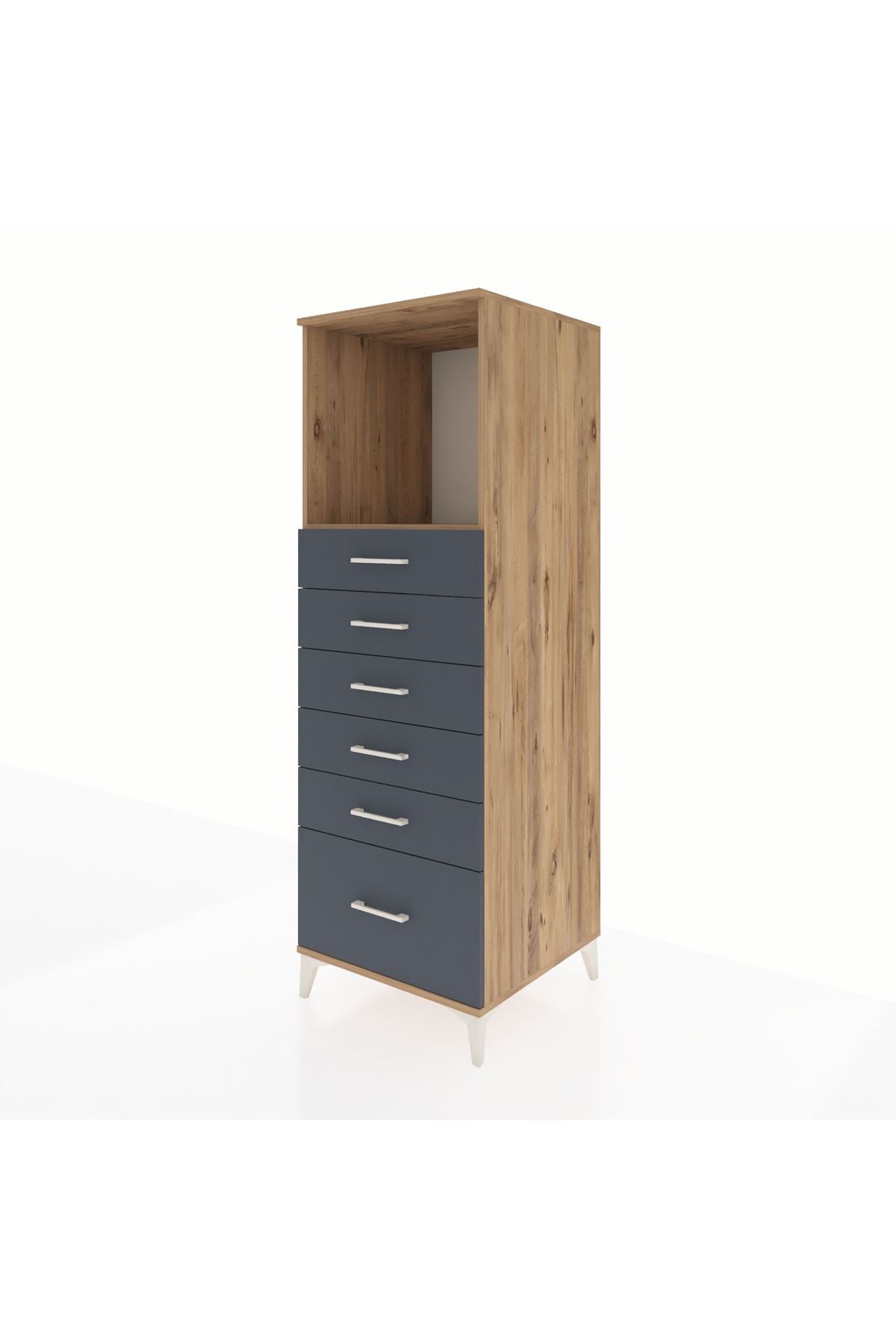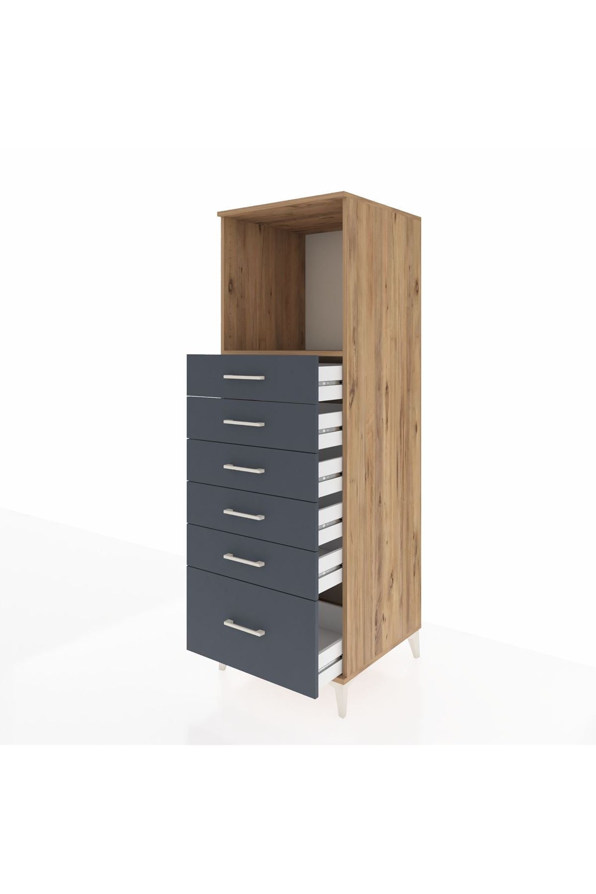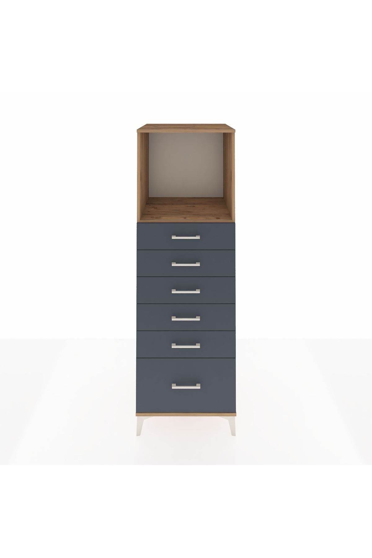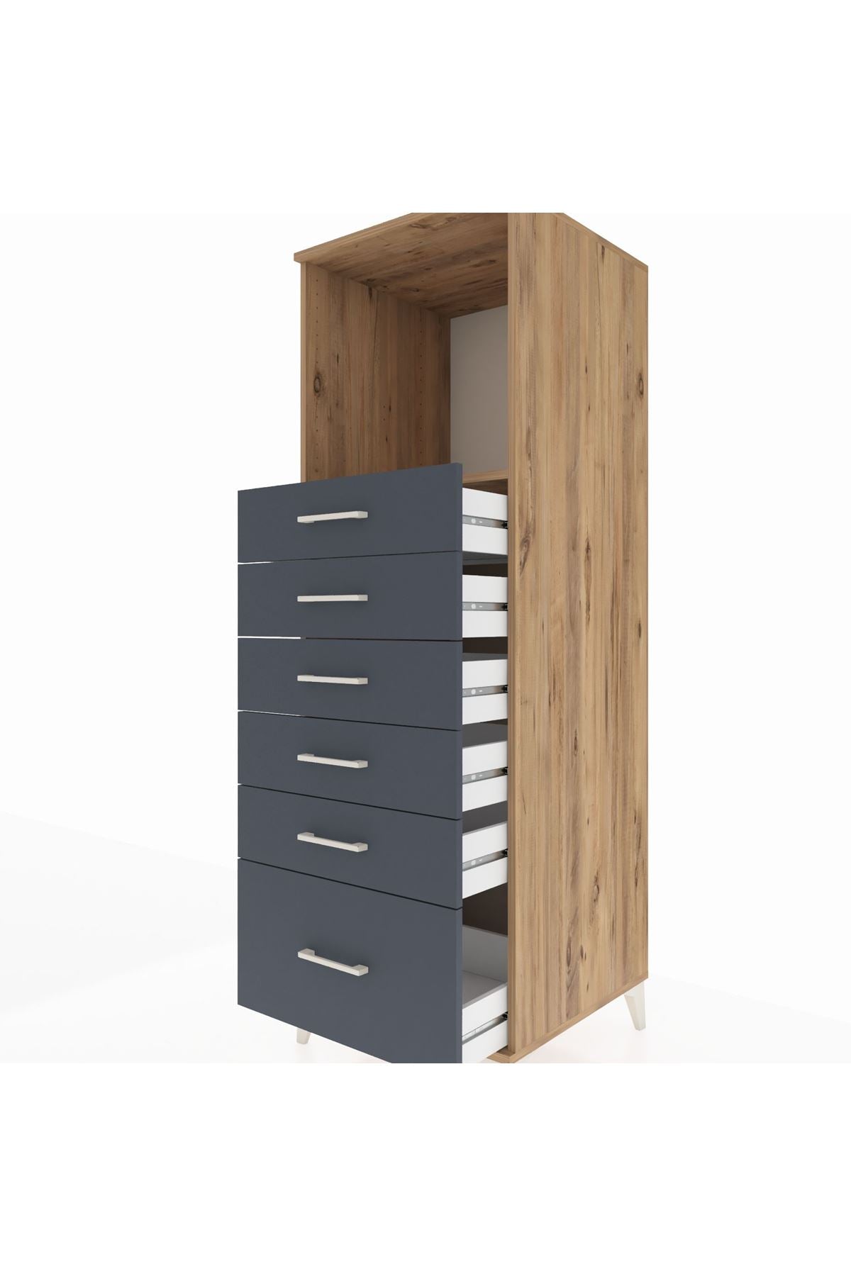 Kronos Dolap Tek Raflı 6 Çekmeceli 60x59x182 Çam-Antrasit