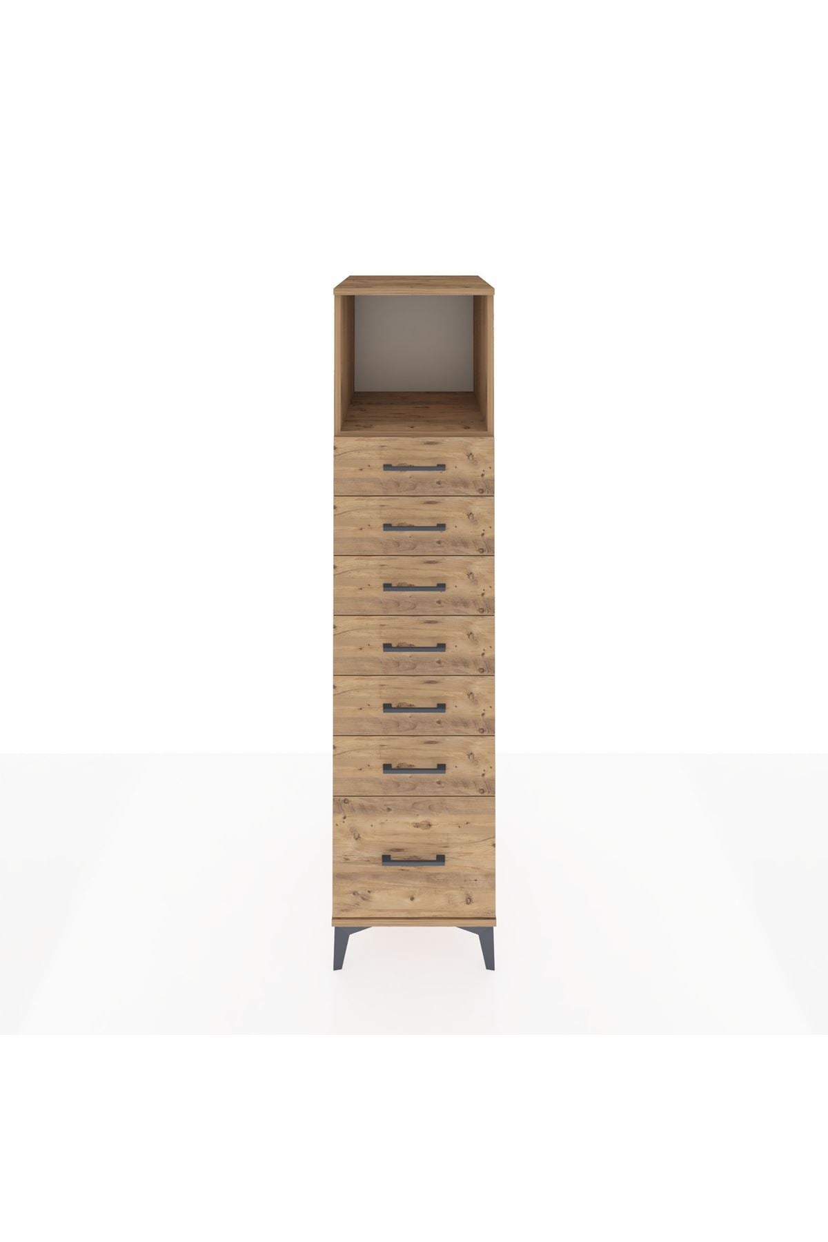 Kronos Dolap Tek Raflı 7 Çekmeceli 44x59x182 Çam-Çam