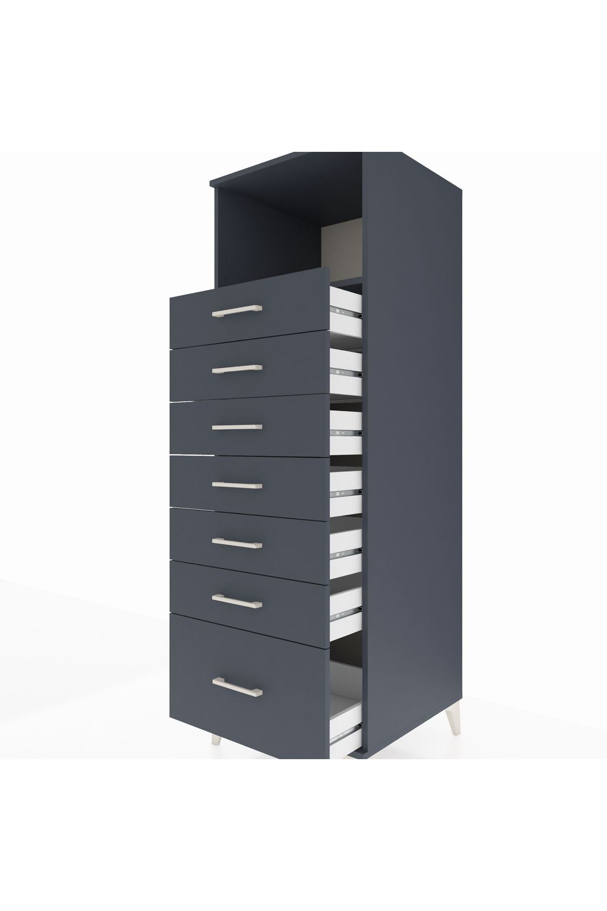 Kronos Dolap Tek Raflı 7 Çekmeceli 60x59x182 Antrasit-Antrasit