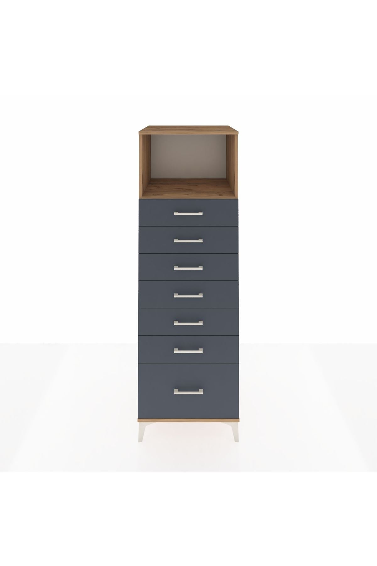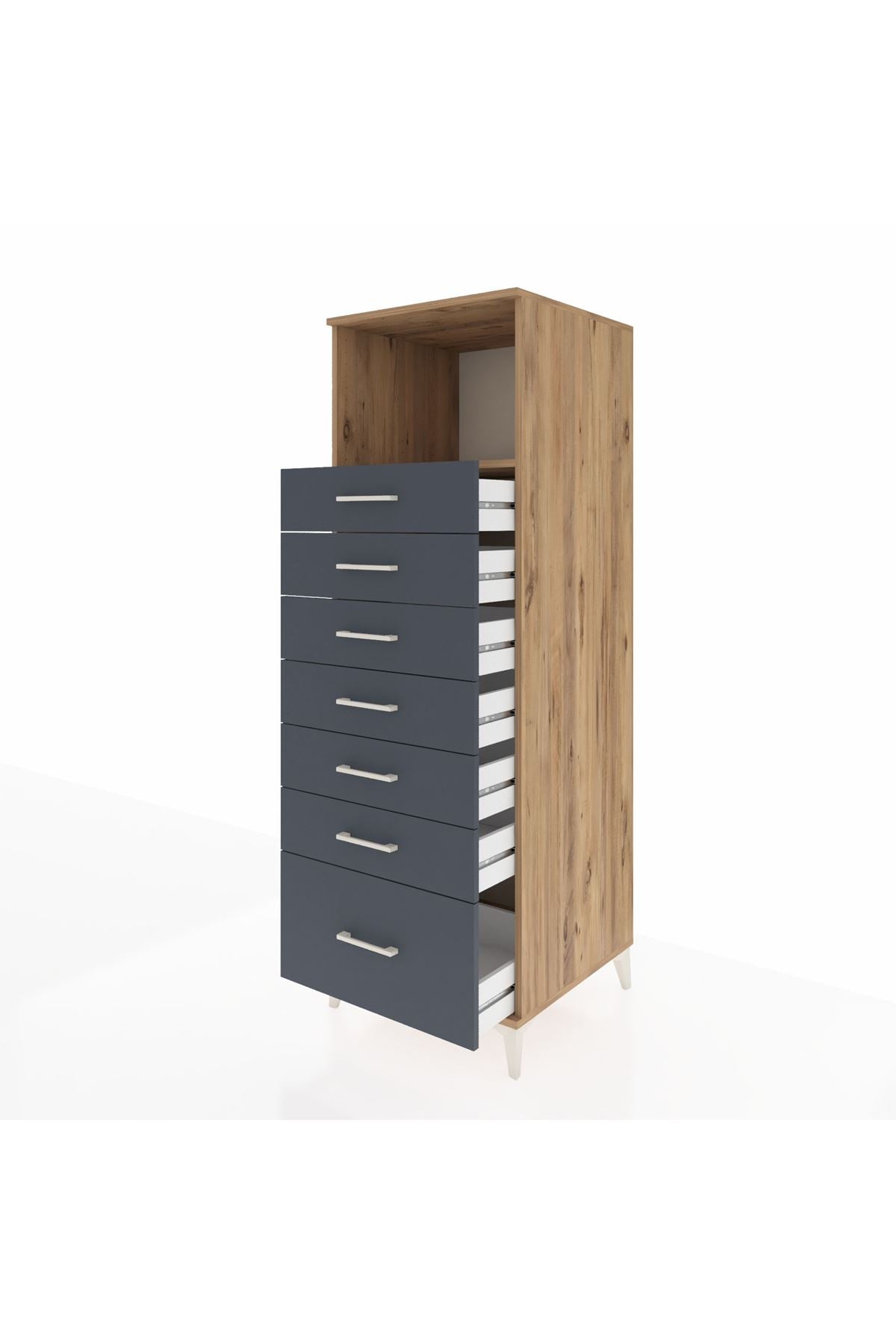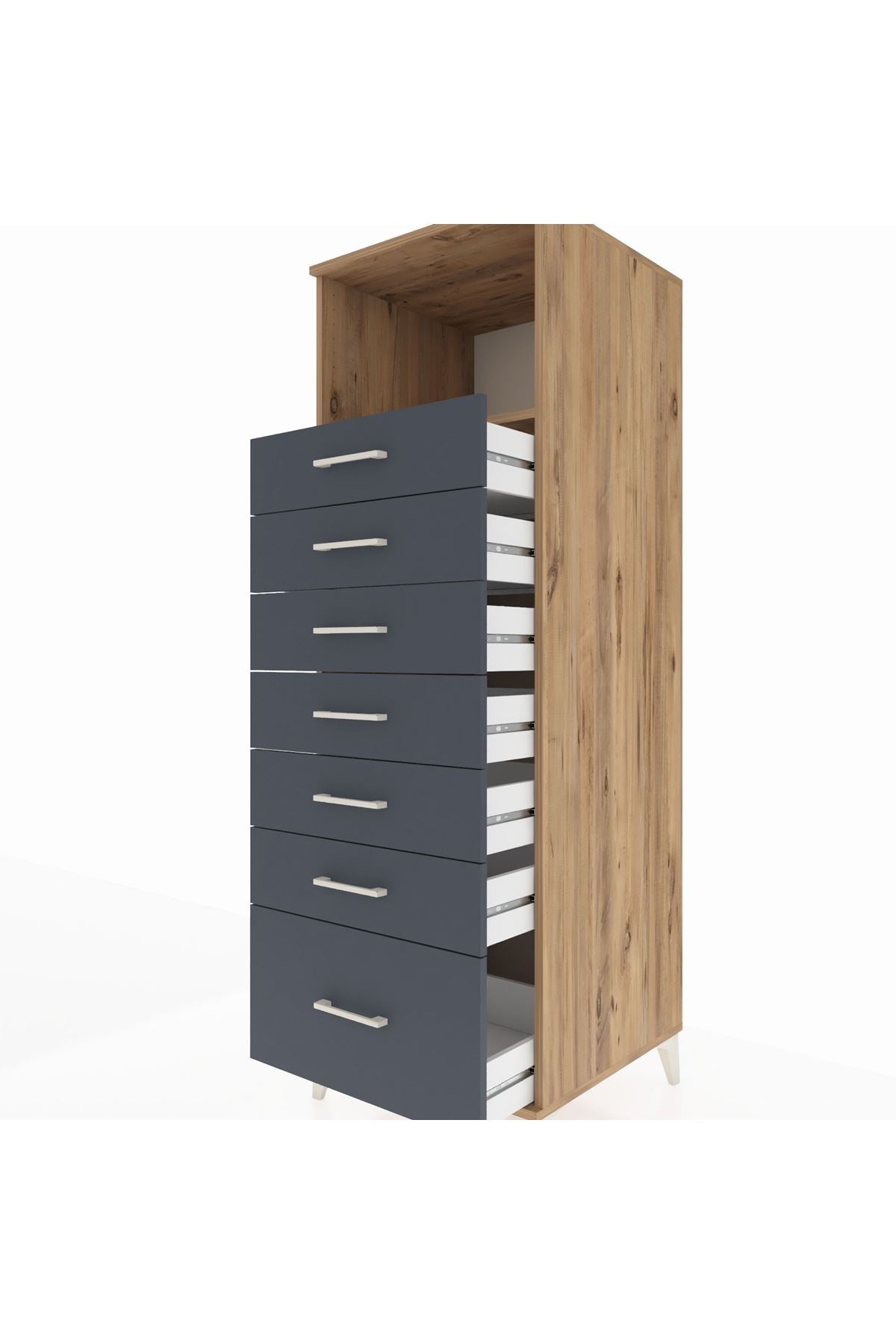 Kronos Dolap Tek Raflı 7 Çekmeceli 60x59x182 Çam-Antrasit