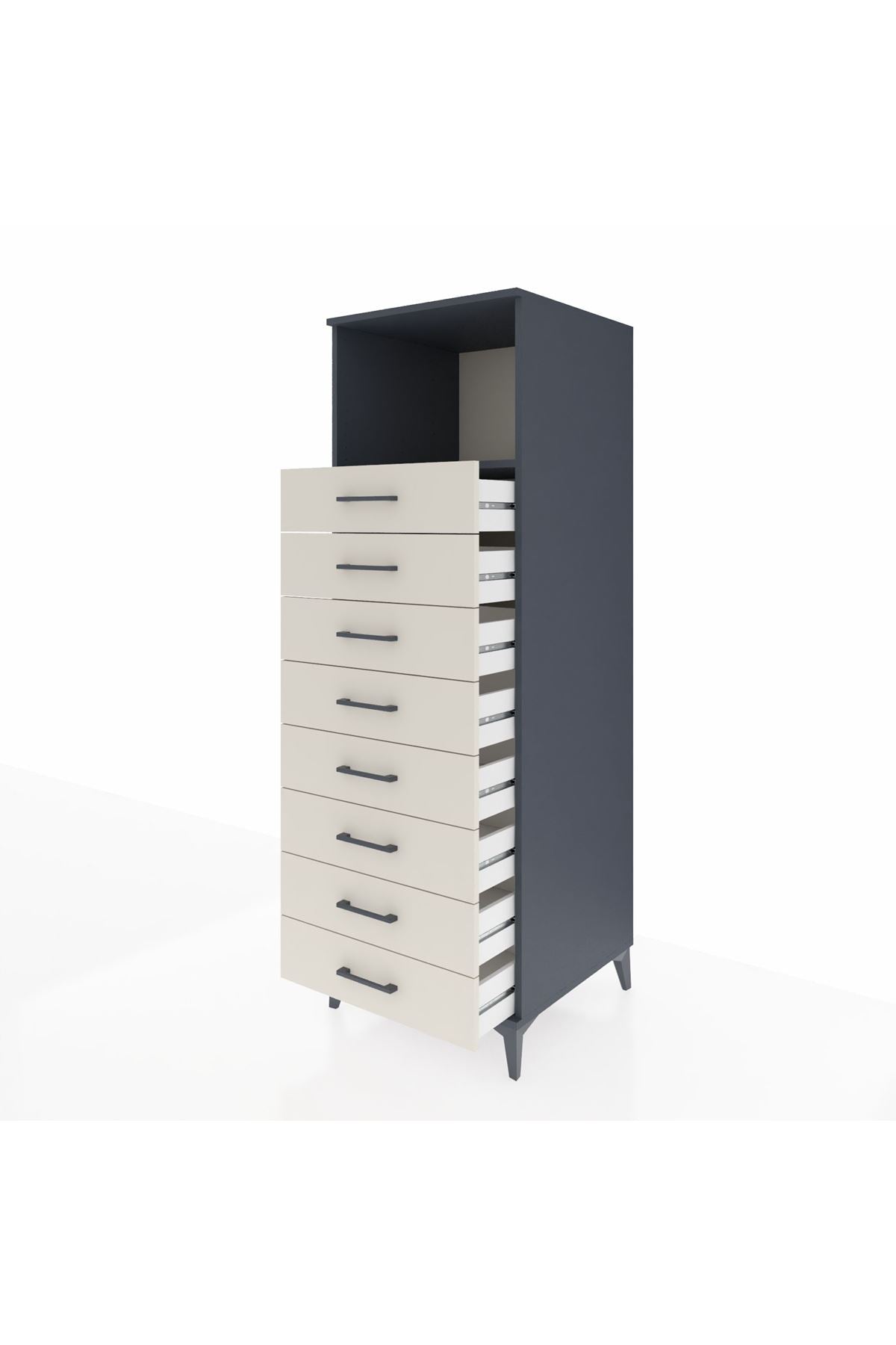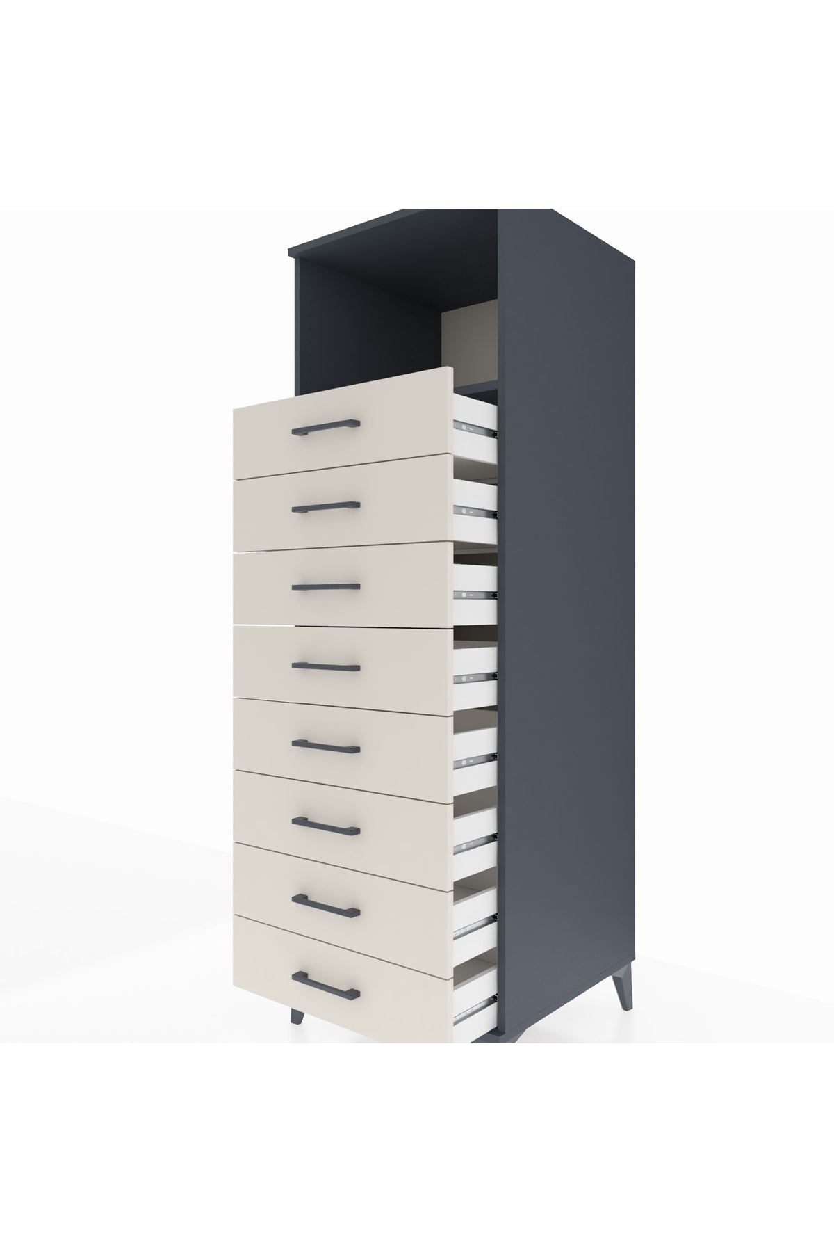 Kronos Dolap Tek Raflı 8 Çekmeceli 60x59x182 Antrasit-Aytaşı