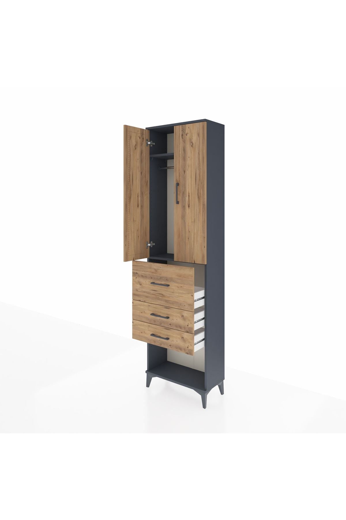Arges Dolap 2 Raflı 3 Çekmeceli 2 Kapaklı 60x30x221 Antrasit-Çam