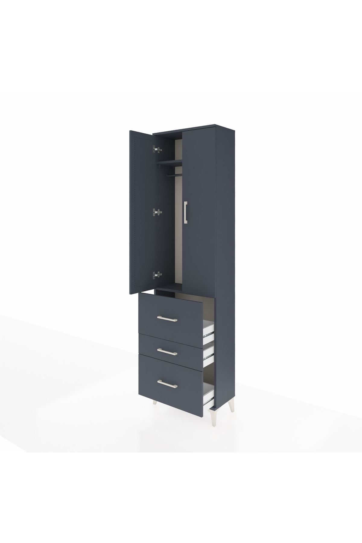 Arges Dolap 2 Raflı 3 Çekmeceli Tek Askılı 60x30x221 Antrasit-Antrasit