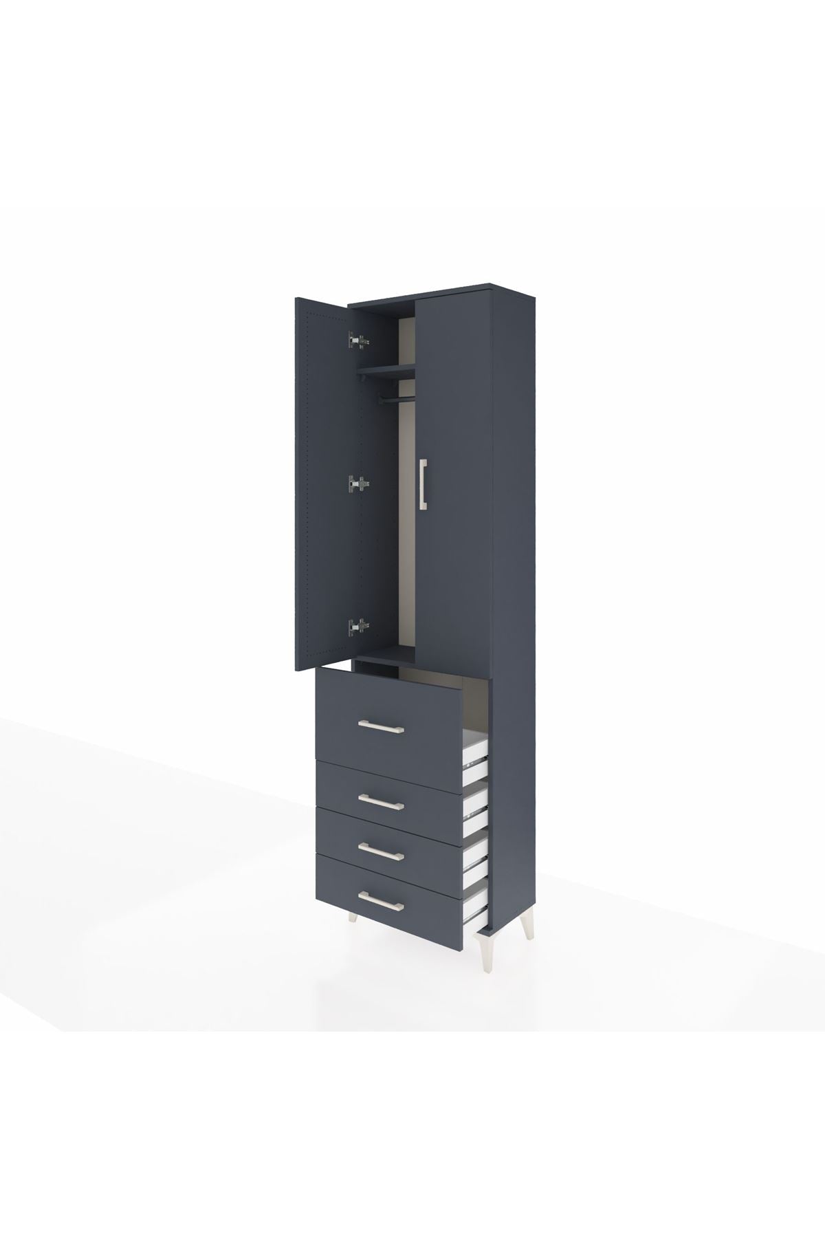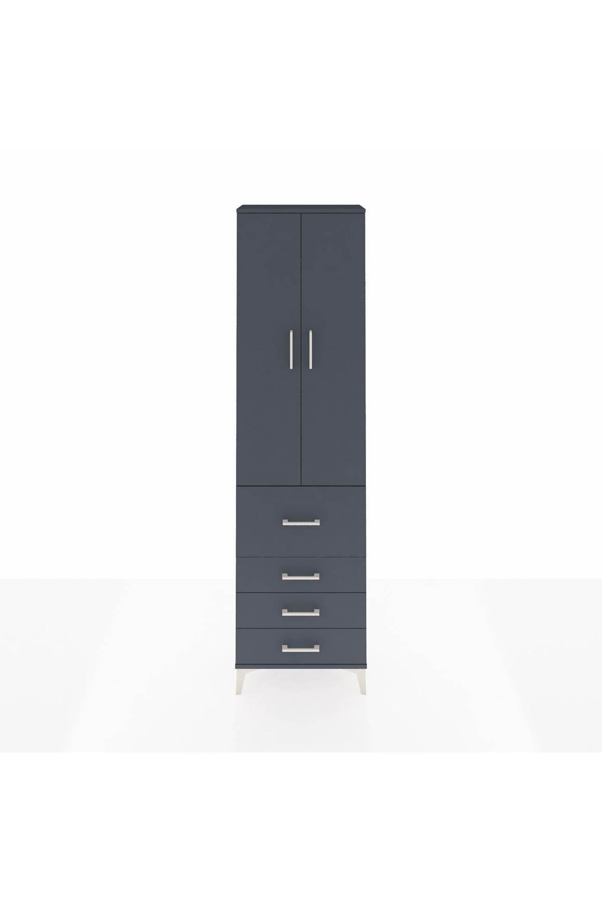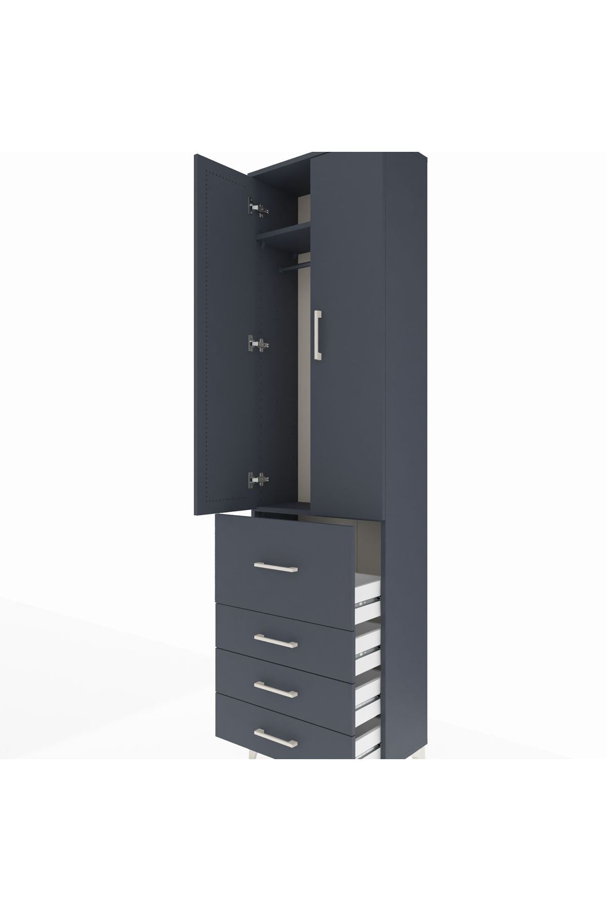 Arges Dolap 2 Raflı 4 Çekmeceli Tek Askılı 60x30x221 Antrasit-Antrasit