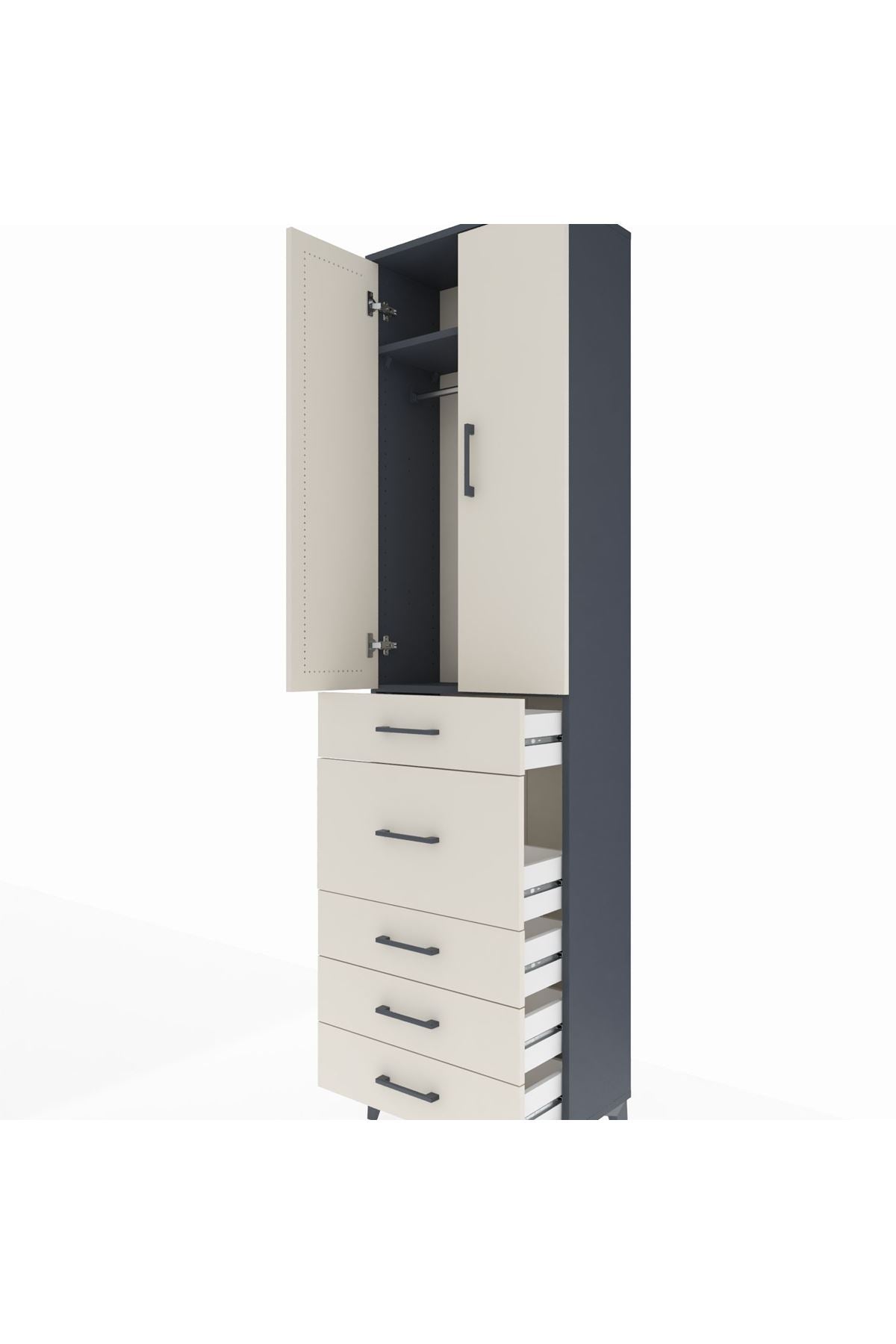 Arges Dolap 2 Raflı 5 Çekmeceli 2 Kapaklı 60x30x221 Antrasit-Aytaşı