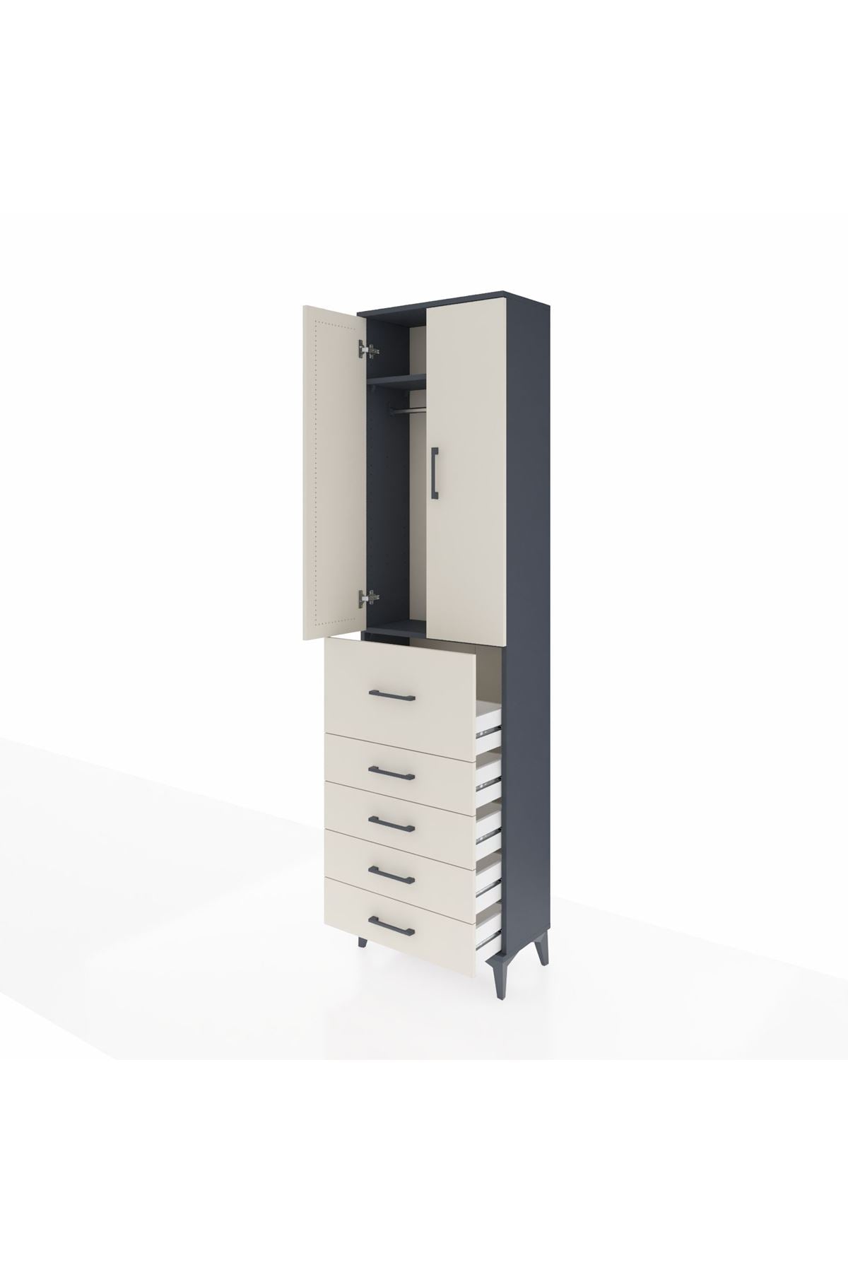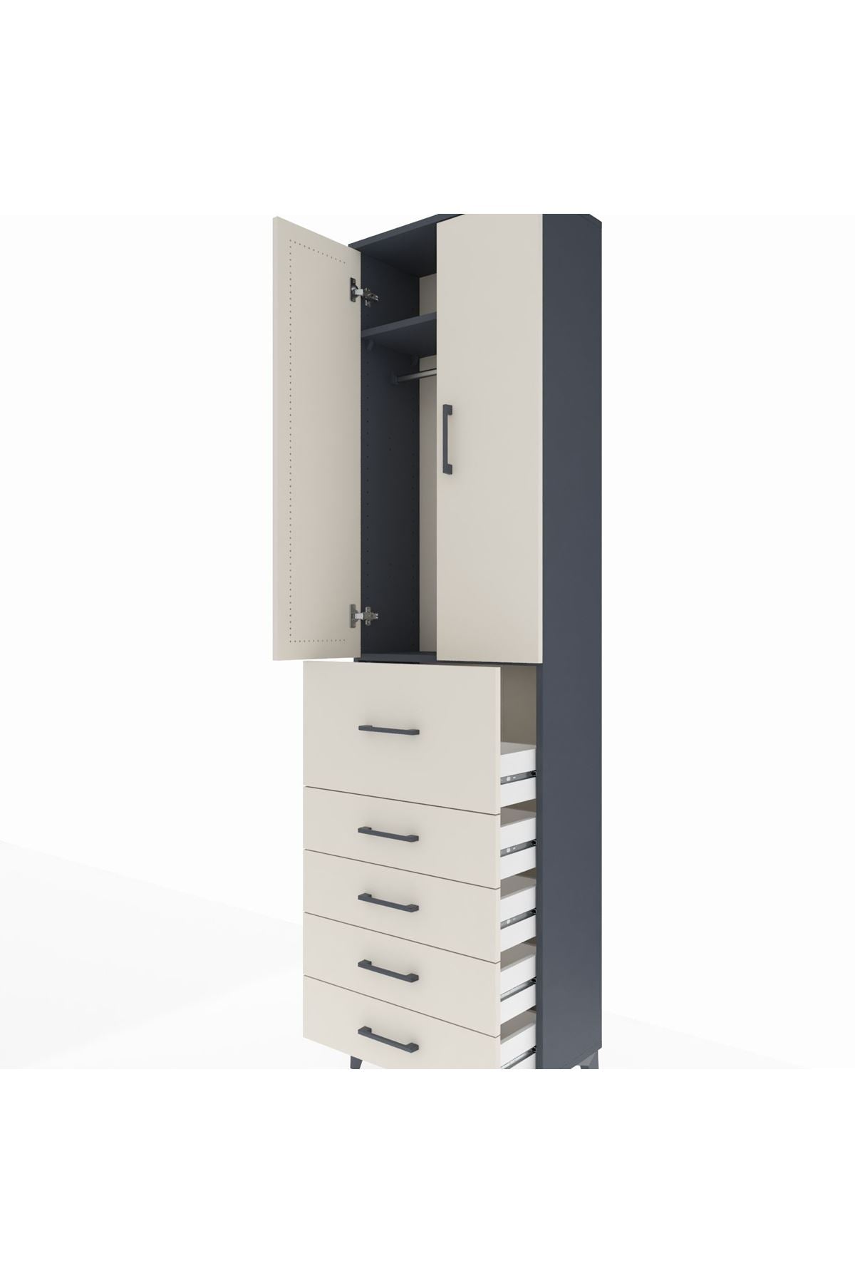 Arges Dolap 2 Raflı 5 Çekmeceli 2 Kapaklı 60x30x221 Antrasit-Aytaşı