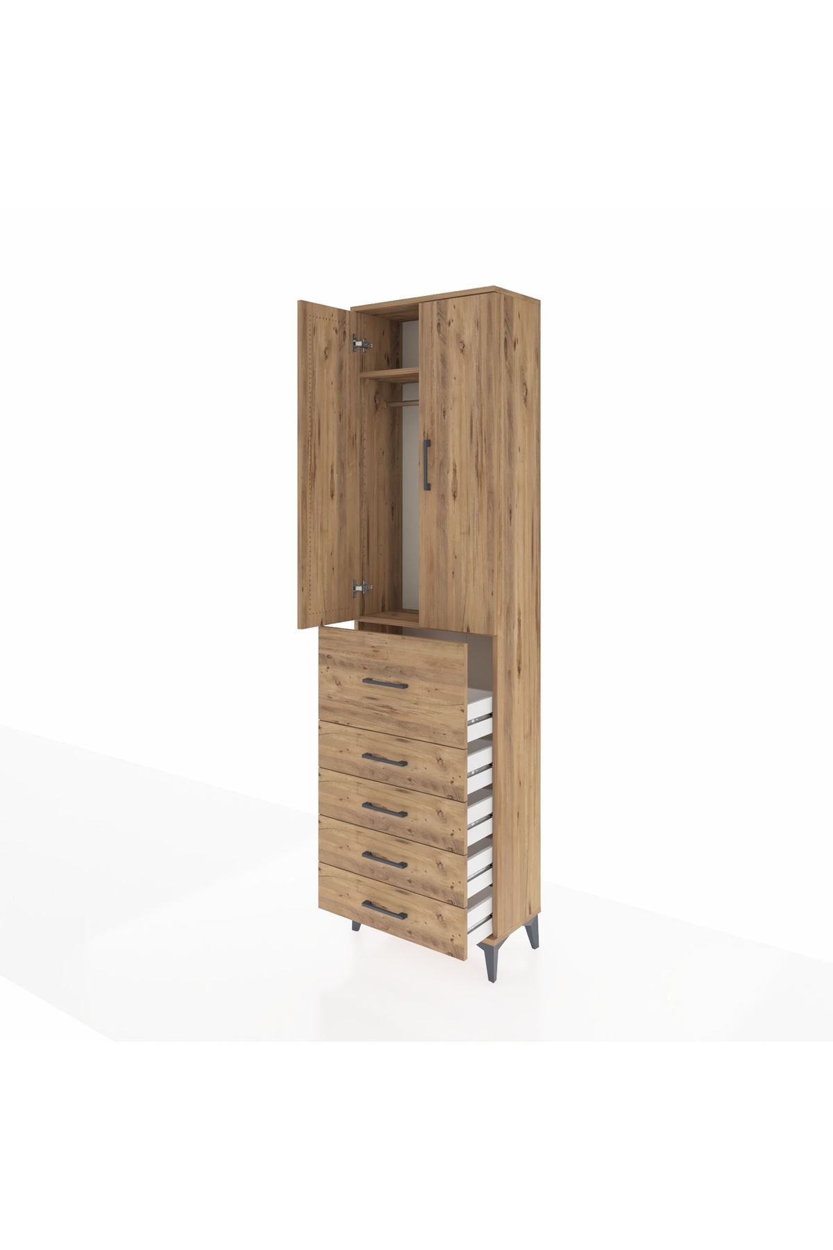 Arges Dolap 2 Raflı 5 Çekmeceli 2 Kapaklı 60x30x221 Çam-Çam