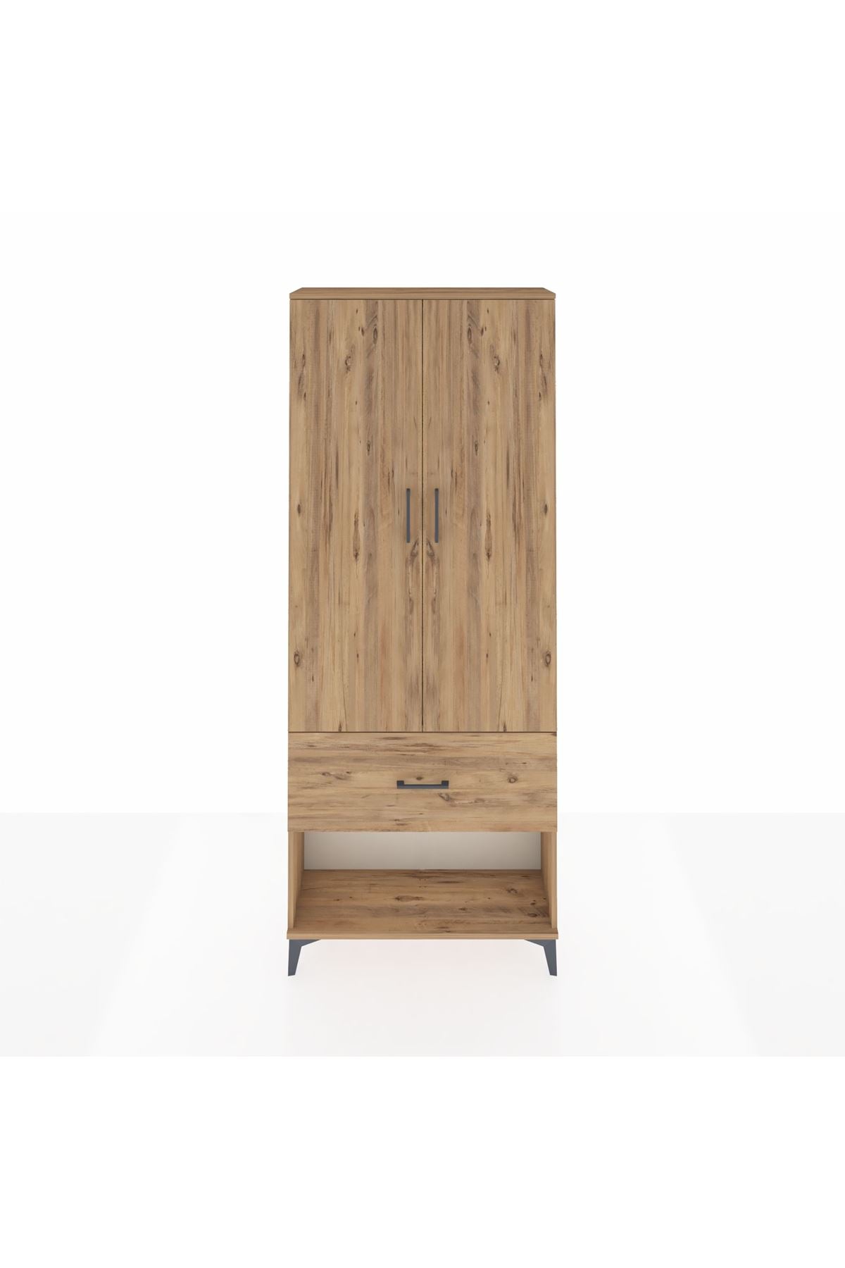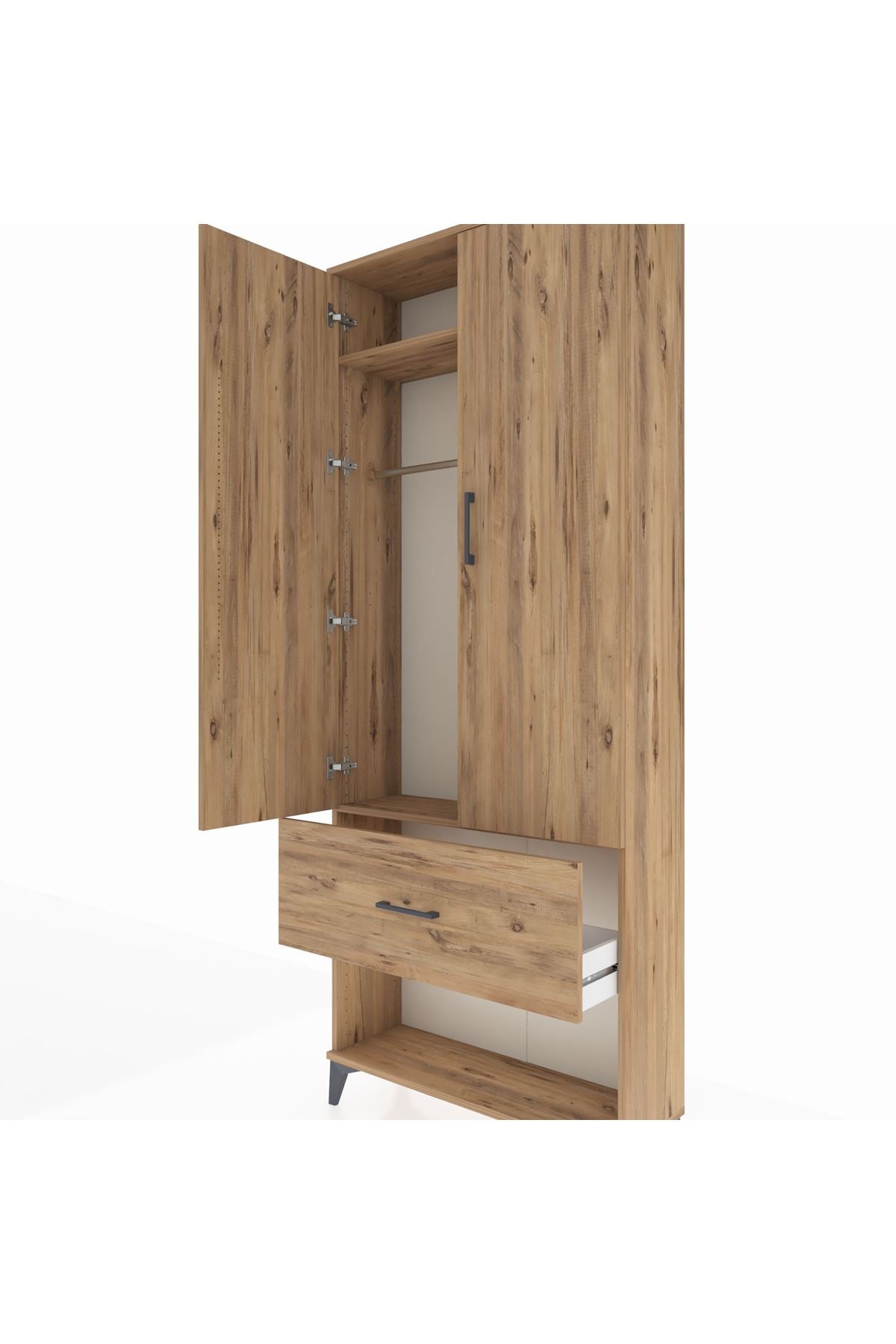 Arges Dolap 2 Raflı Tek Çekmeceli Tek Askılı 88x30x221 Çam-Çam