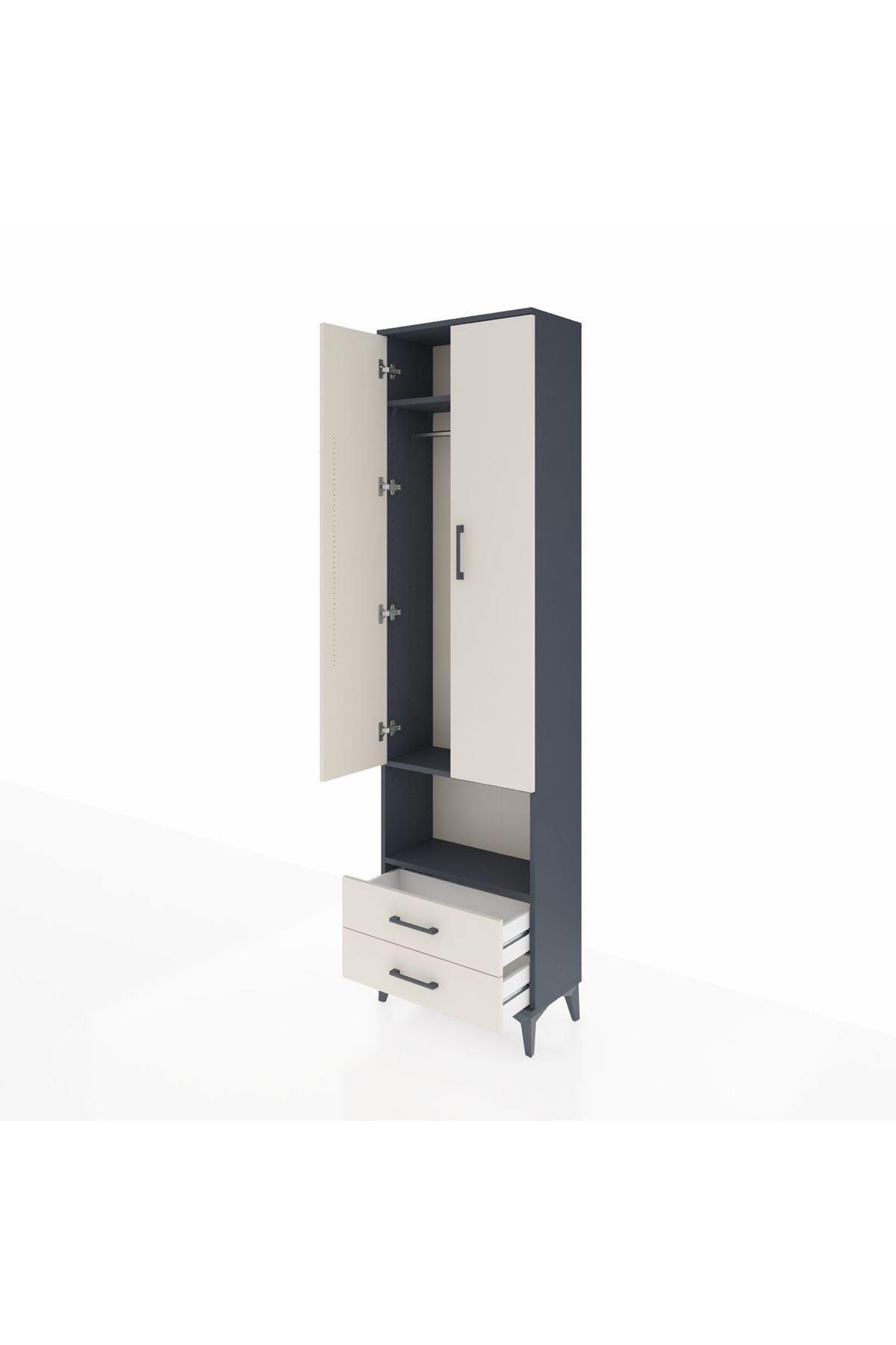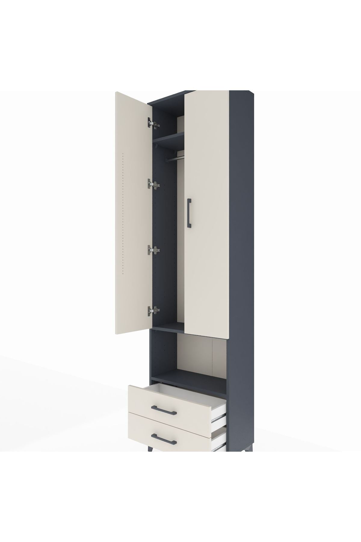Arges Dolap 3 Raflı 2 Çekmeceli Tek Askılı 60x30x221 Antrasit-Aytaşı