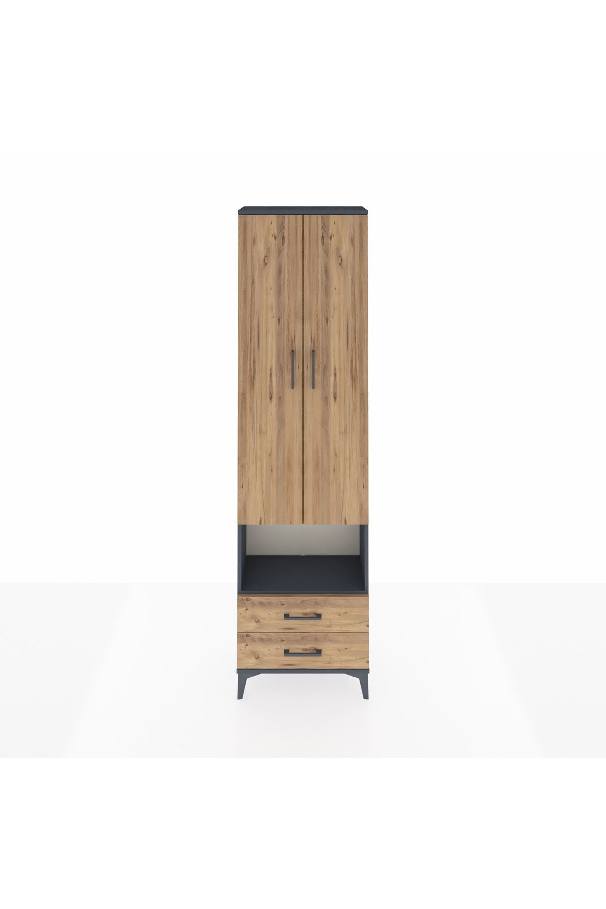Arges Dolap 3 Raflı 2 Çekmeceli Tek Askılı 60x30x221 Antrasit-Çam