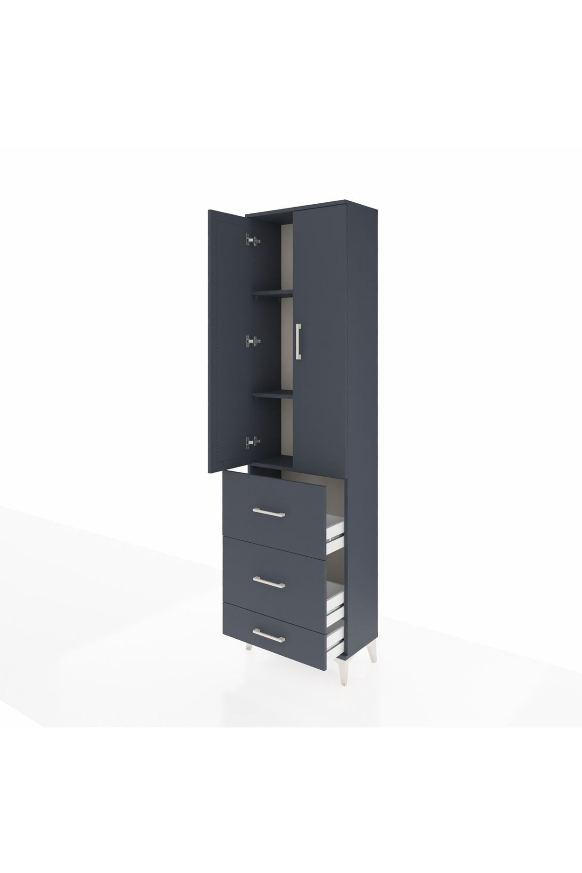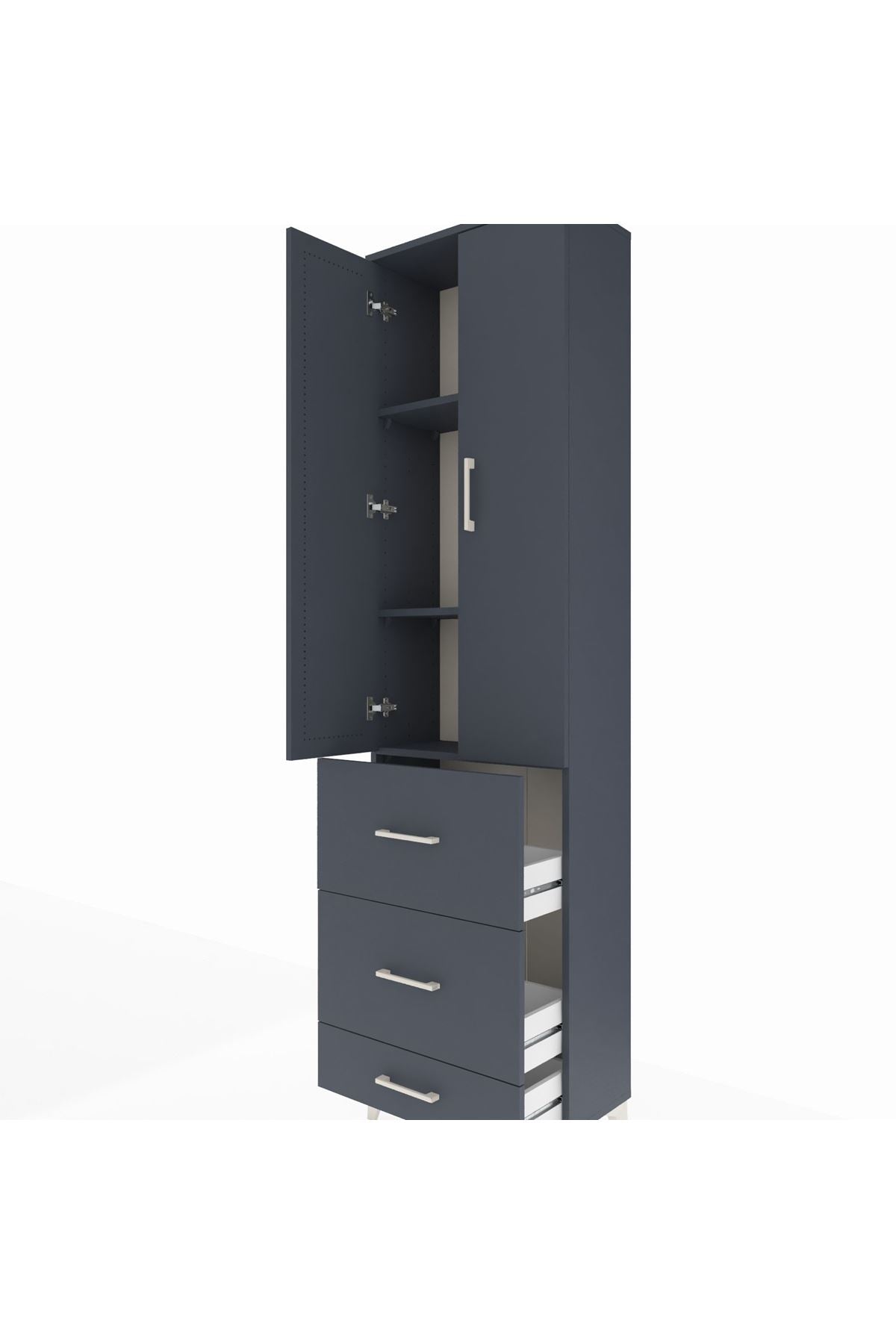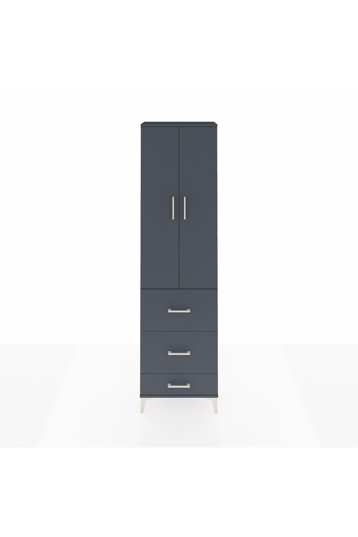Arges Dolap 3 Raflı 3 Çekmeceli 2 Kapaklı 60x30x221 Antrasit-Antrasit