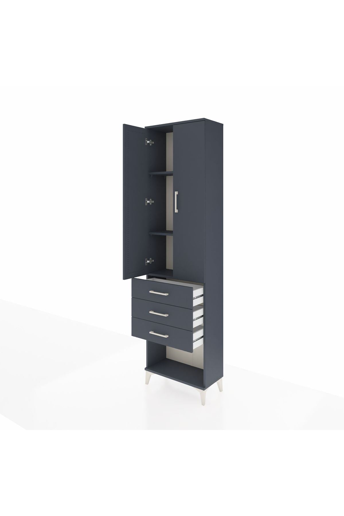 Arges Dolap 3 Raflı 3 Çekmeceli 2 Kapaklı 60x30x221 Antrasit-Antrasit