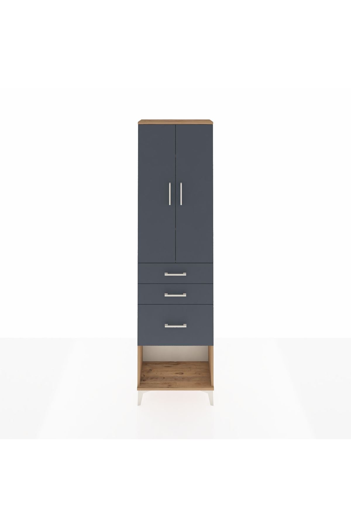 Arges Dolap 3 Raflı 3 Çekmeceli 2 Kapaklı 60x30x221 Çam-Antrasit