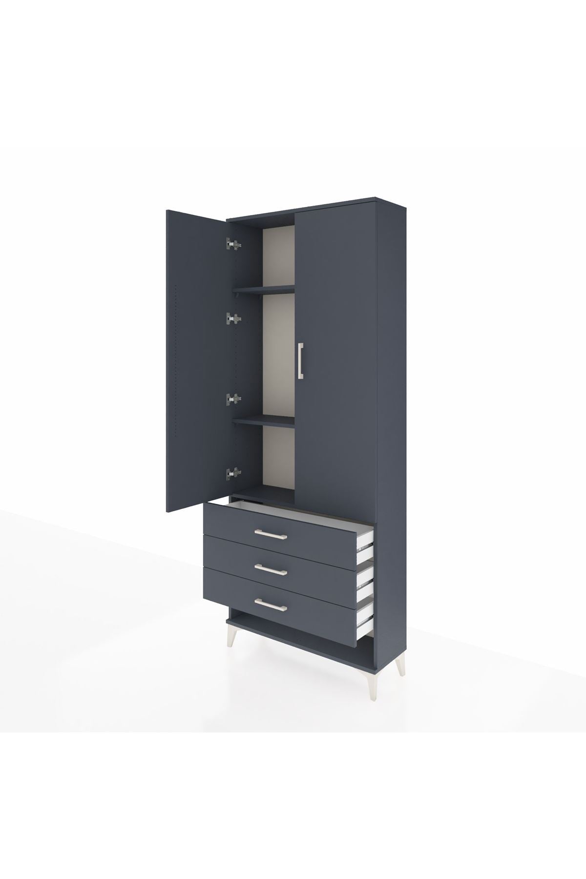 Arges Dolap 3 Raflı 3 Çekmeceli 2 Kapaklı 88x30x221 Antrasit-Antrasit