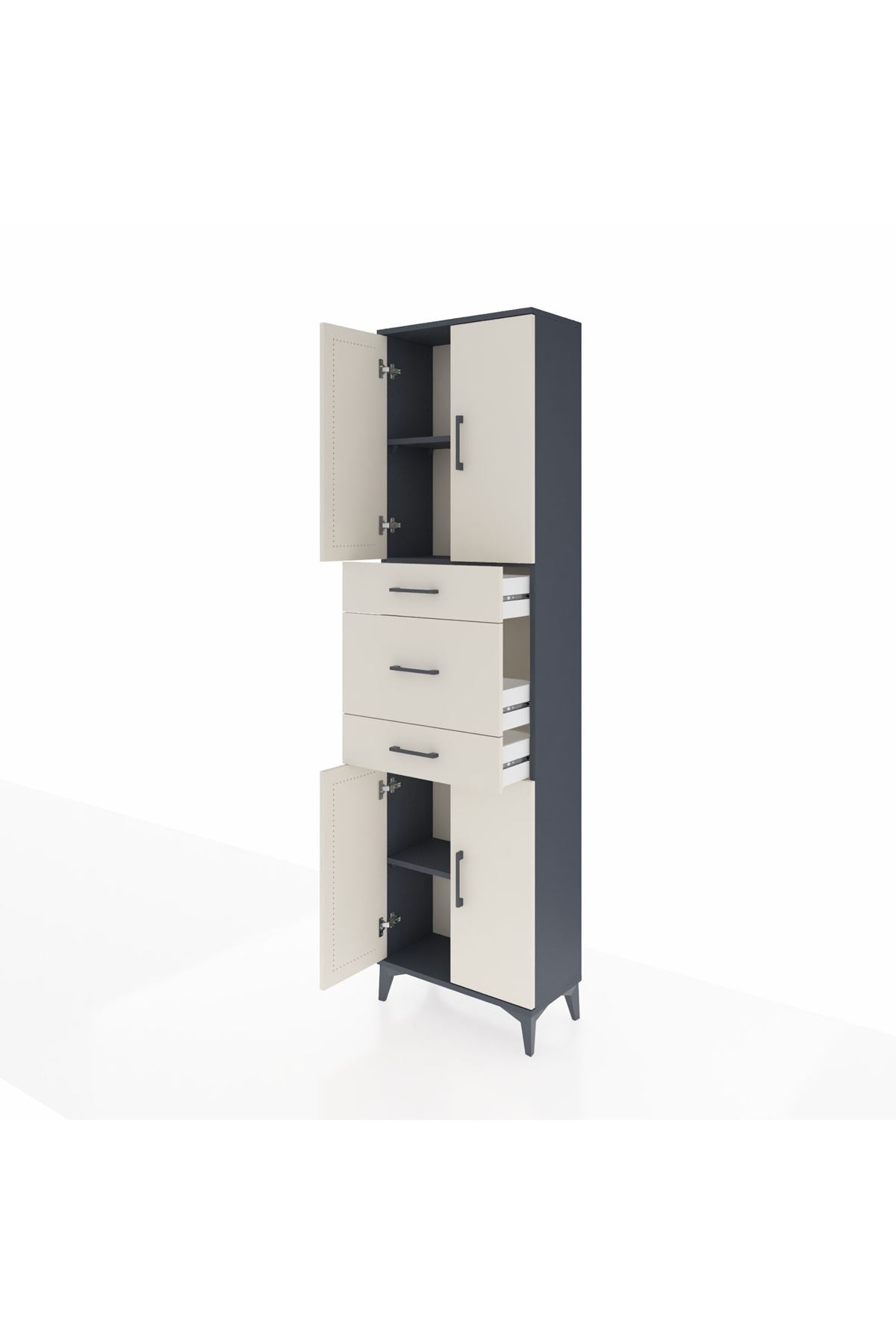 Arges Dolap 3 Raflı 3 Çekmeceli 4 Kapaklı 60x30x221 Antrasit-Aytaşı