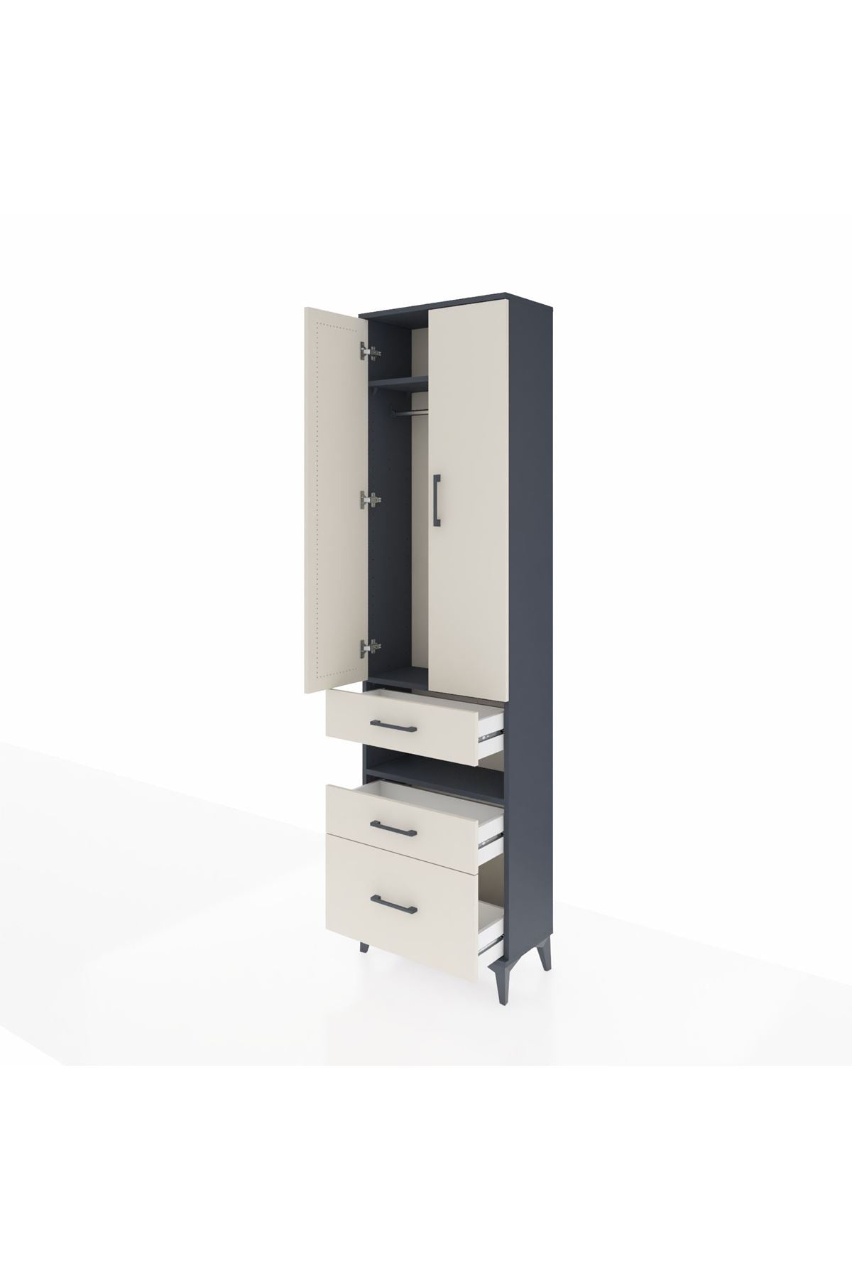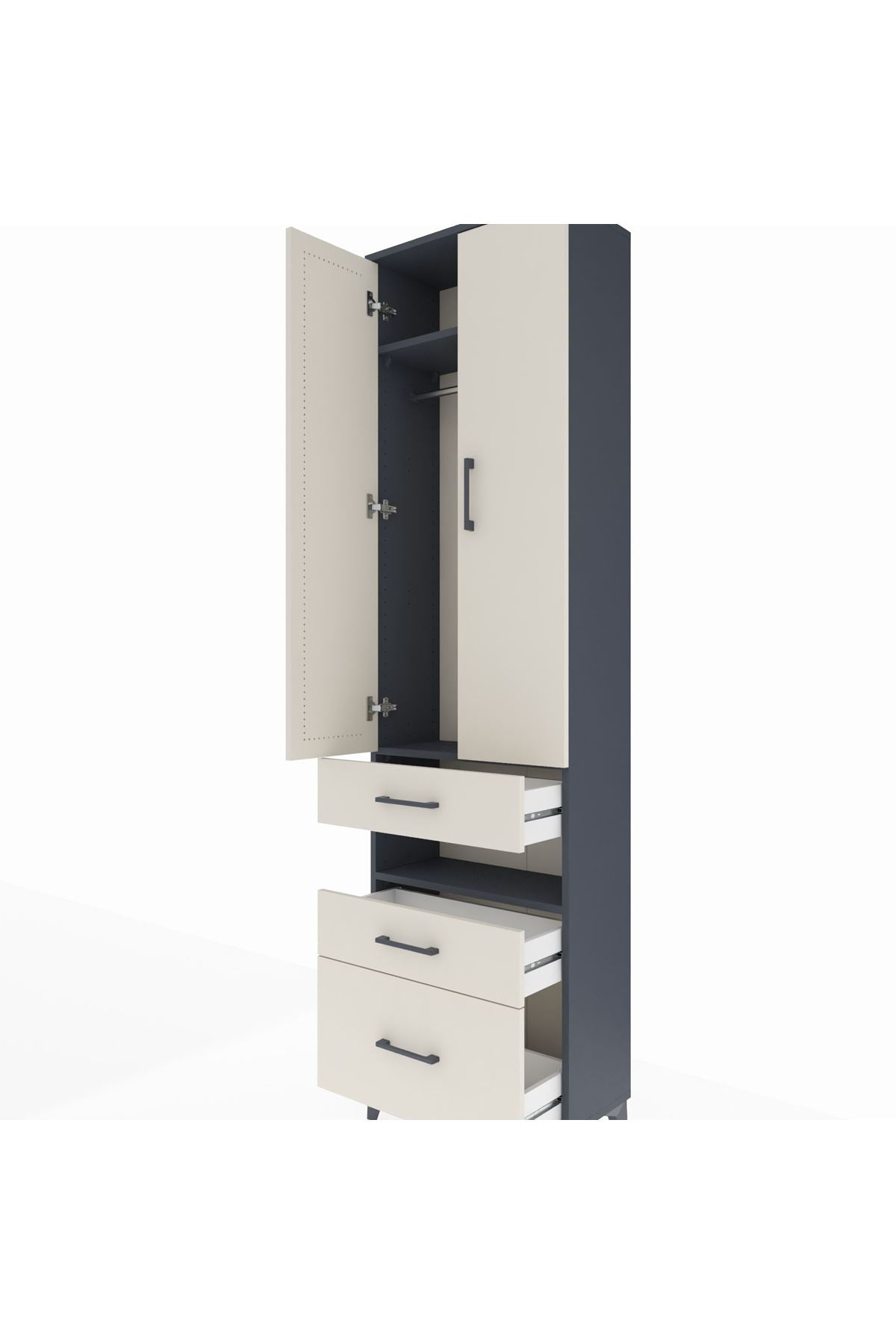 Arges Dolap 3 Raflı 3 Çekmeceli Tek Askılı 60x30x221 Antrasit-Aytaşı