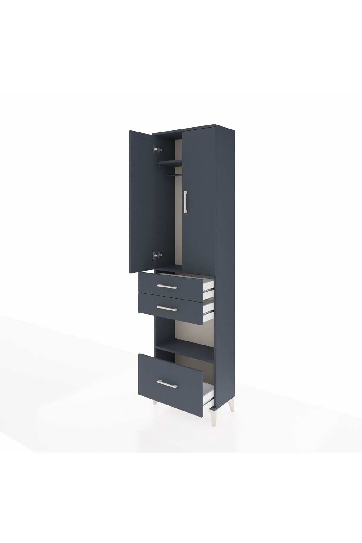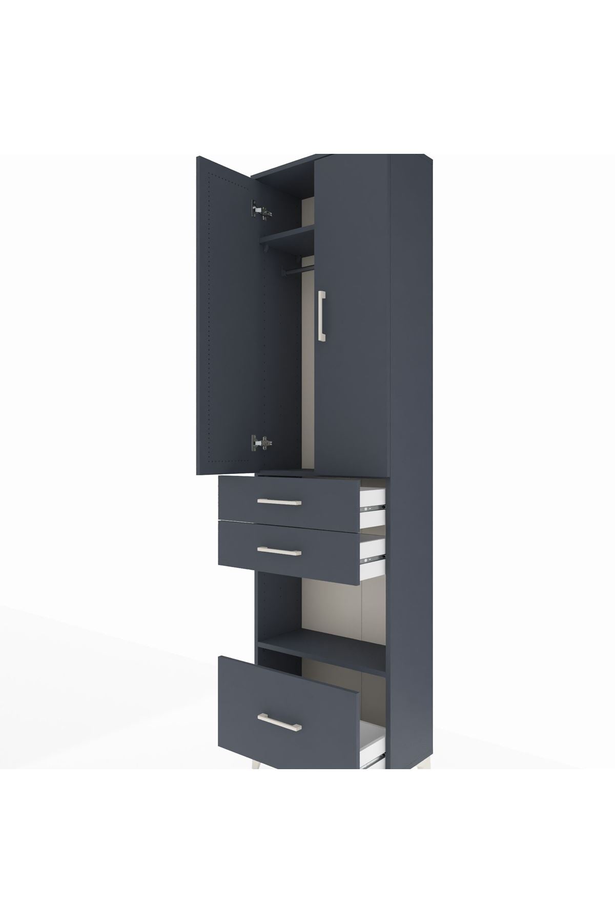 Arges Dolap 3 Raflı 3 Çekmeceli Tek Askılı 60x30x221 Antrasit-Antrasit