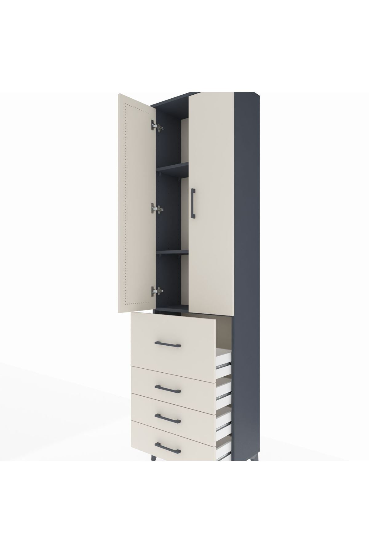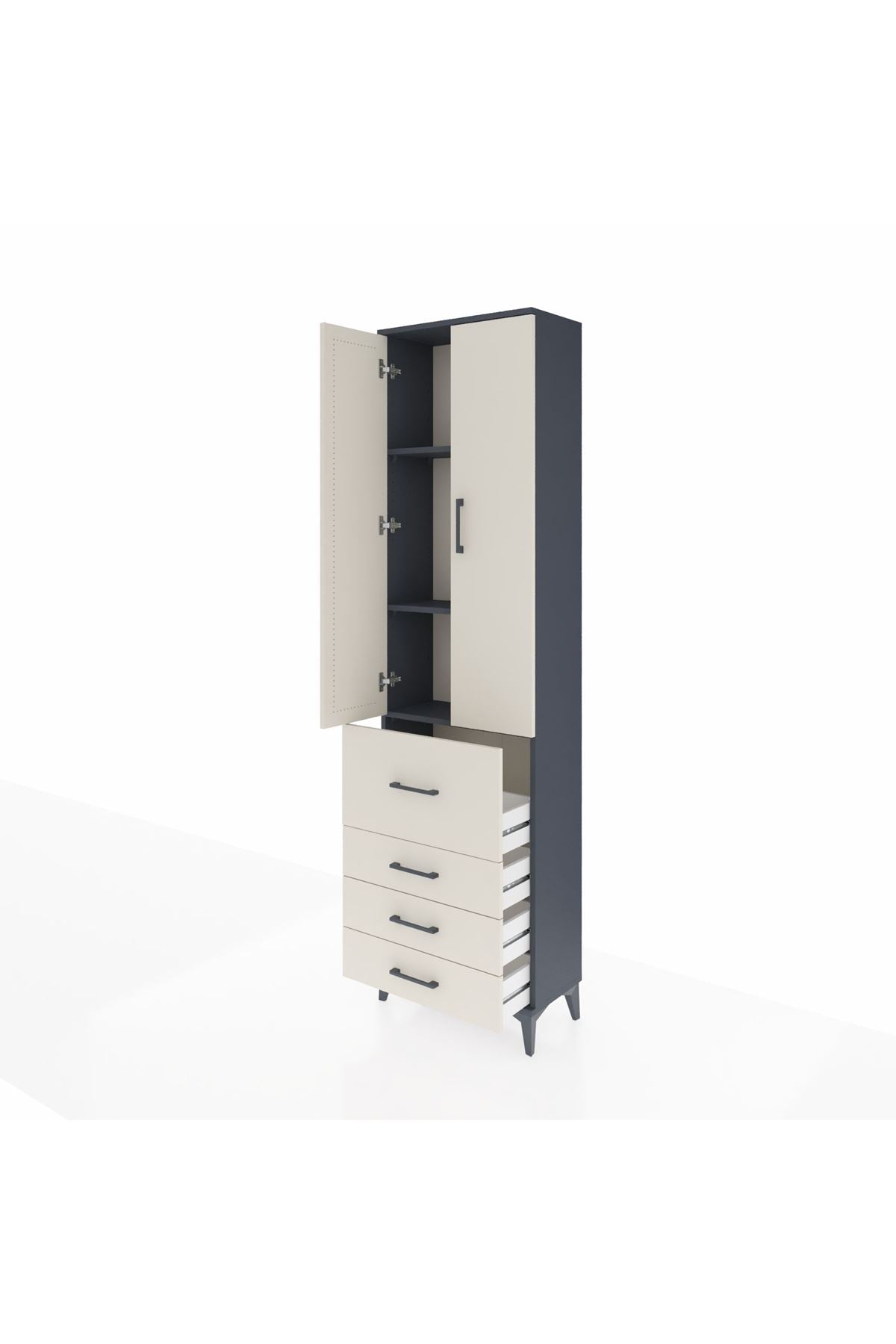 Arges Dolap 3 Raflı 4 Çekmeceli 2 Kapaklı 60x30x221 Antrasit-Aytaşı