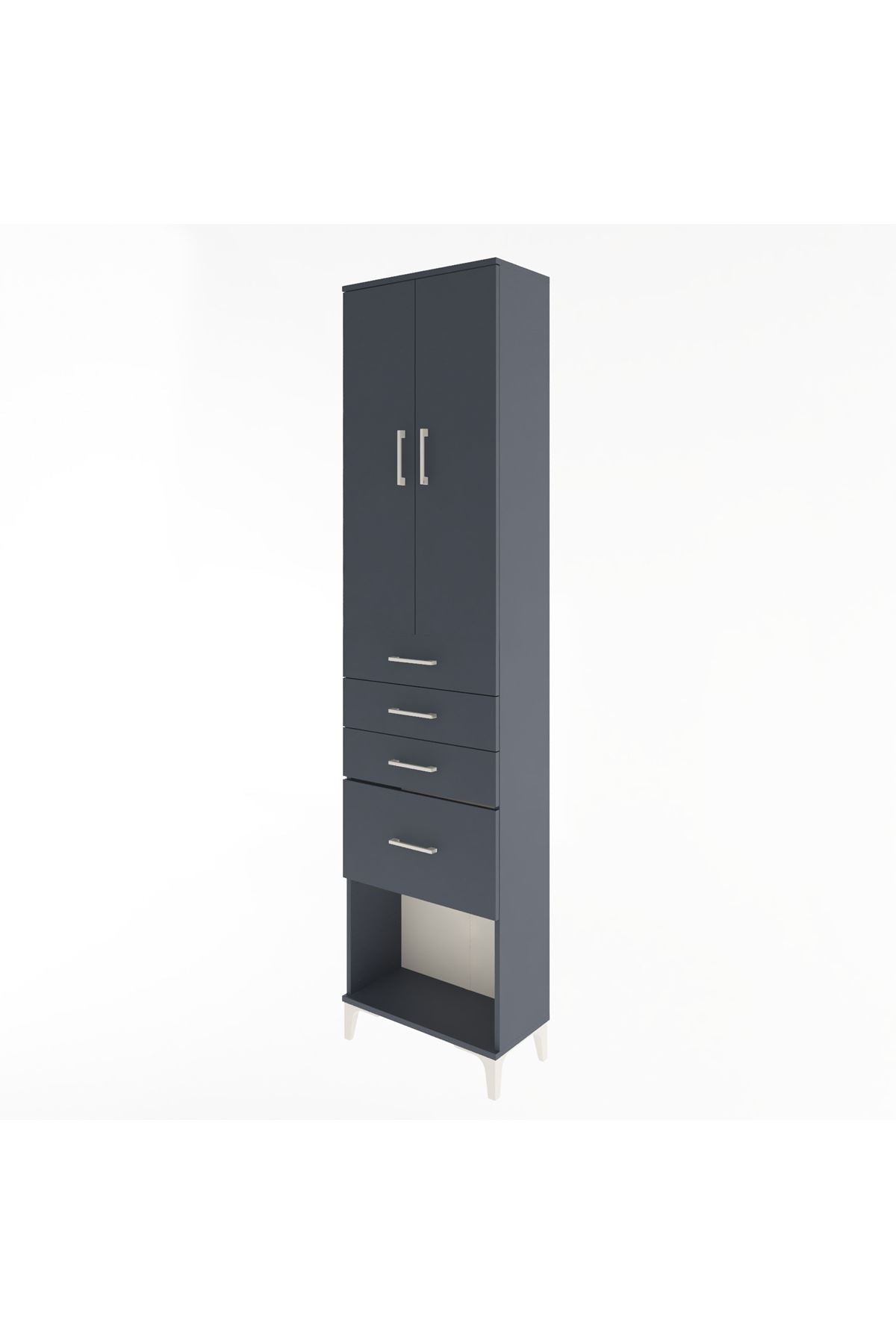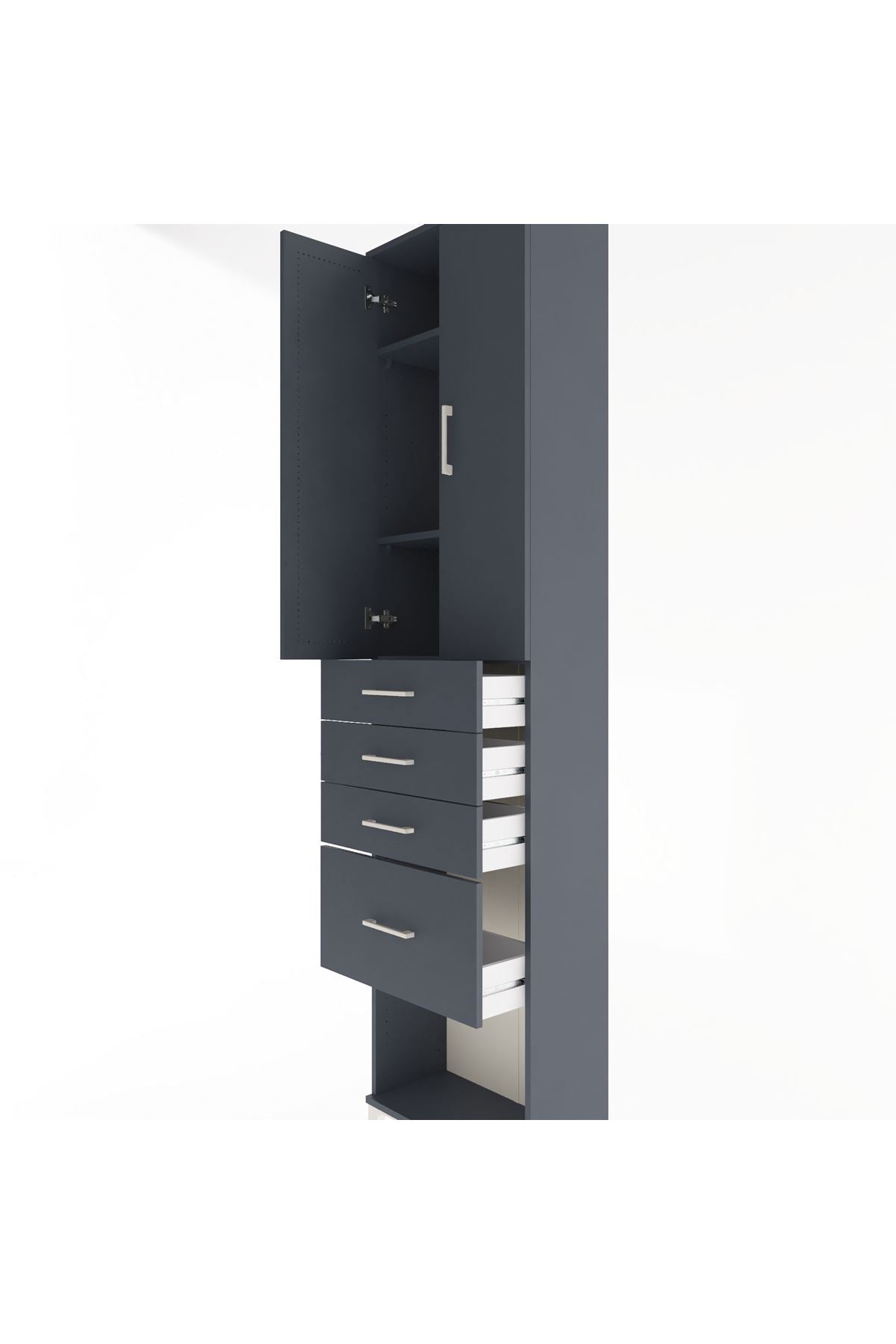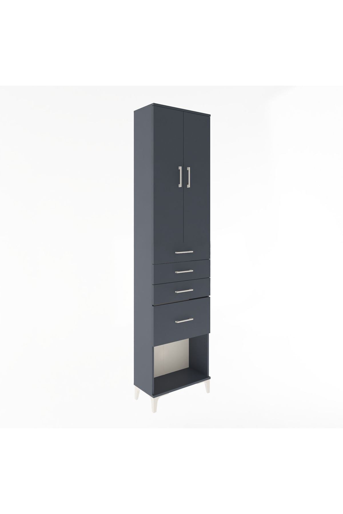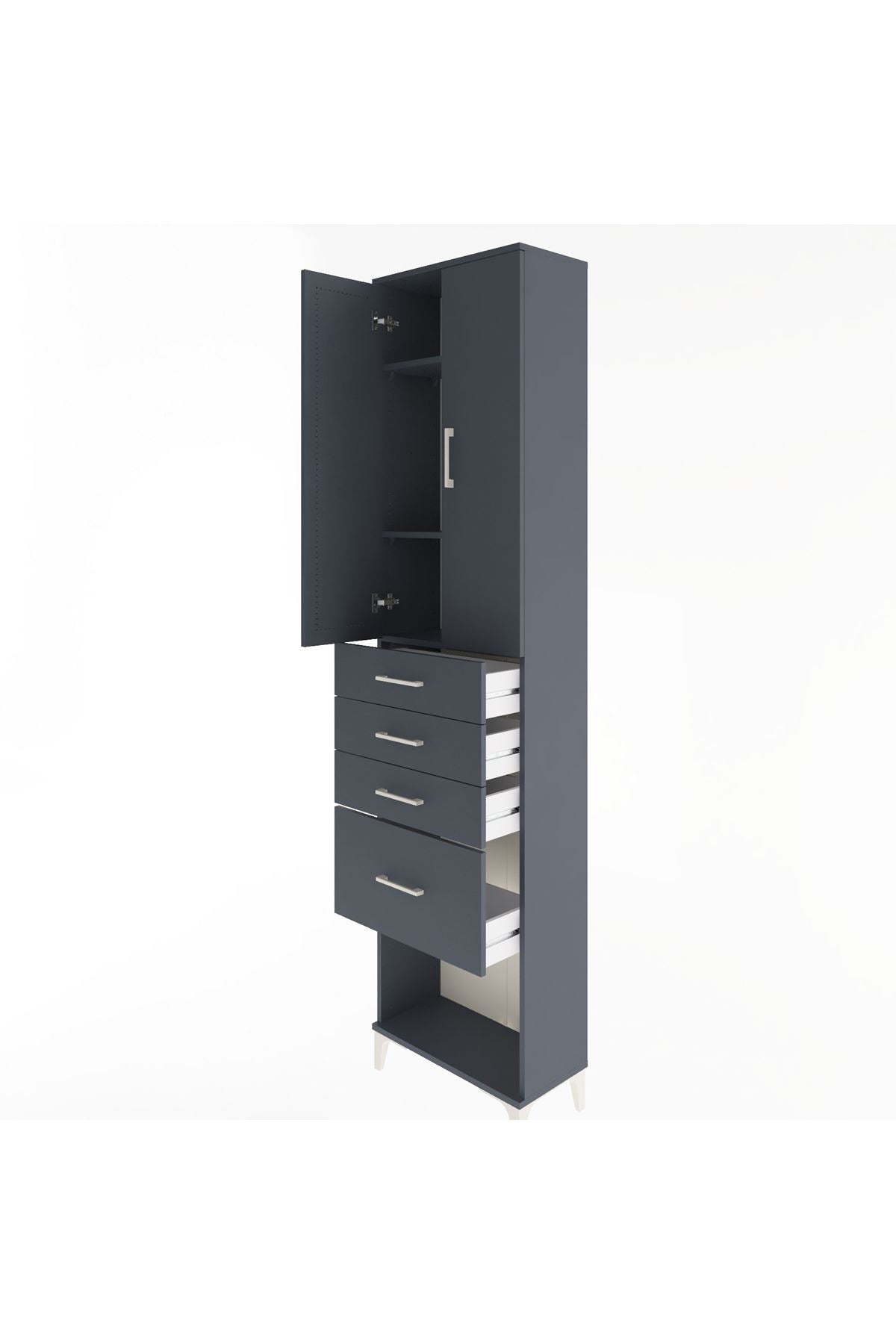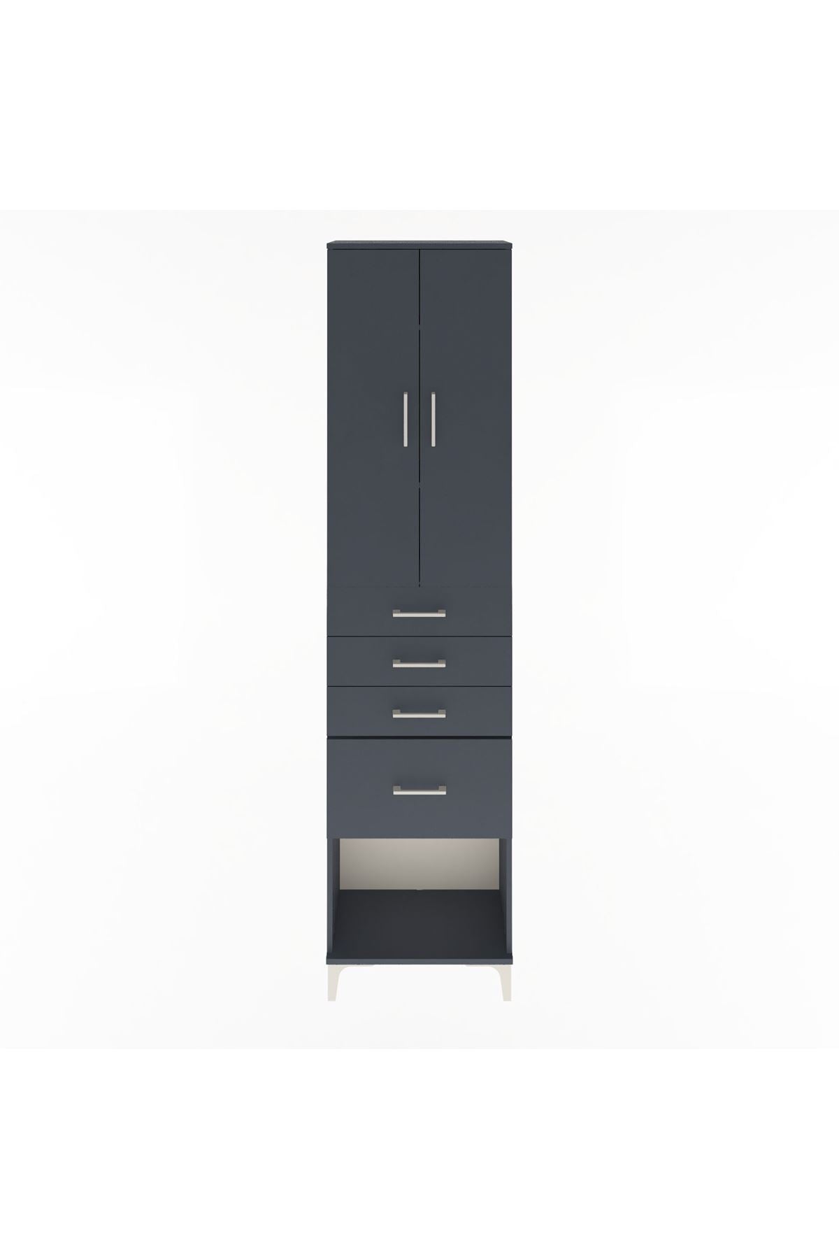 Arges Dolap 3 Raflı 4 Çekmeceli 2 Kapaklı 60x30x243 Antrasit-Antrasit