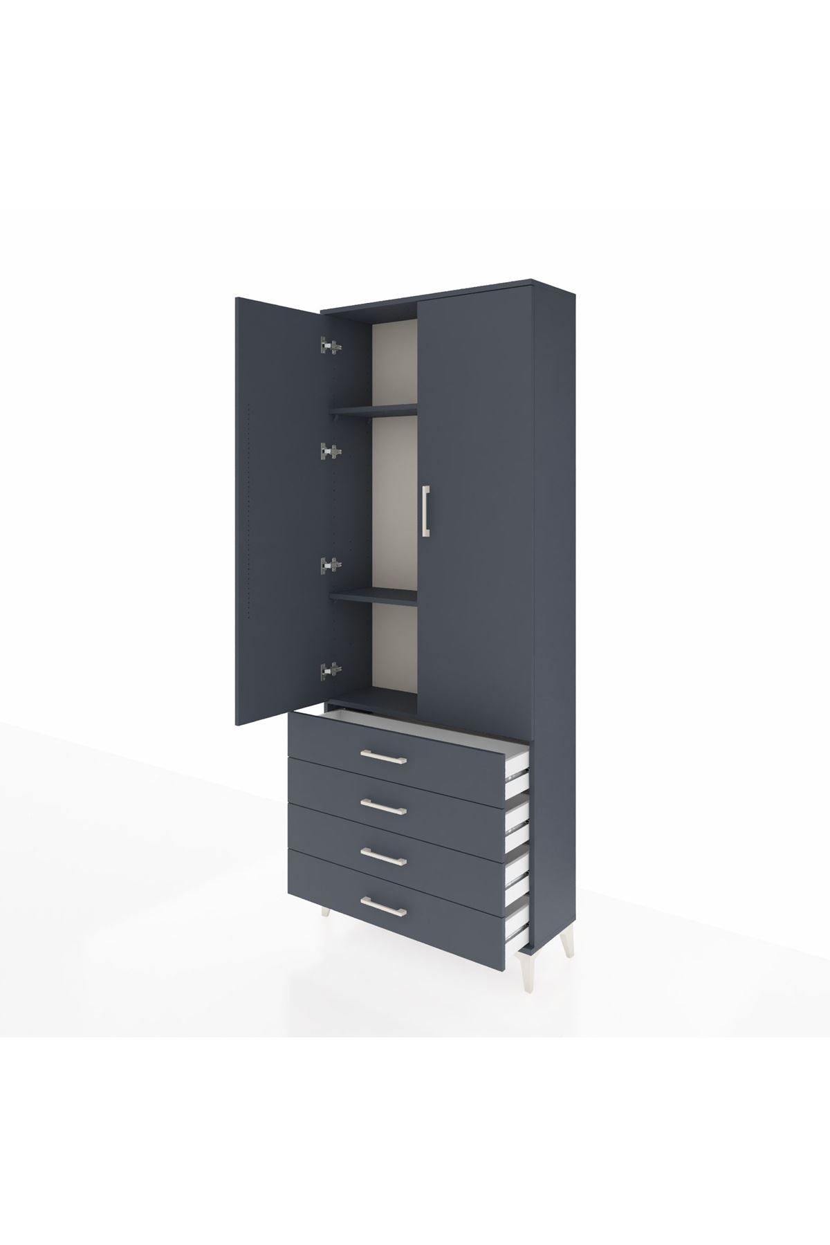 Arges Dolap 3 Raflı 4 Çekmeceli 2 Kapaklı 88x30x221 Antrasit-Antrasit