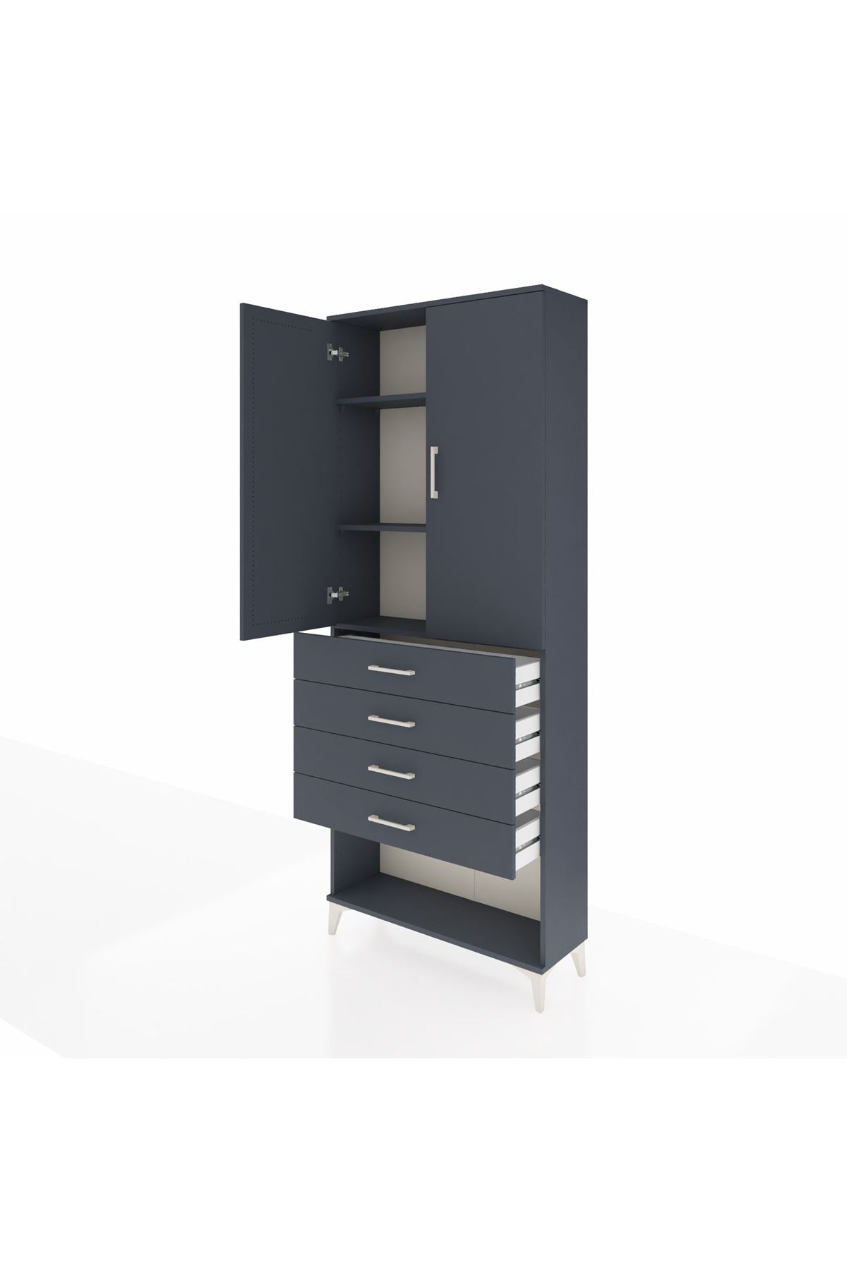 Arges Dolap 3 Raflı 4 Çekmeceli 2 Kapaklı 88x30x221 Antrasit-Antrasit