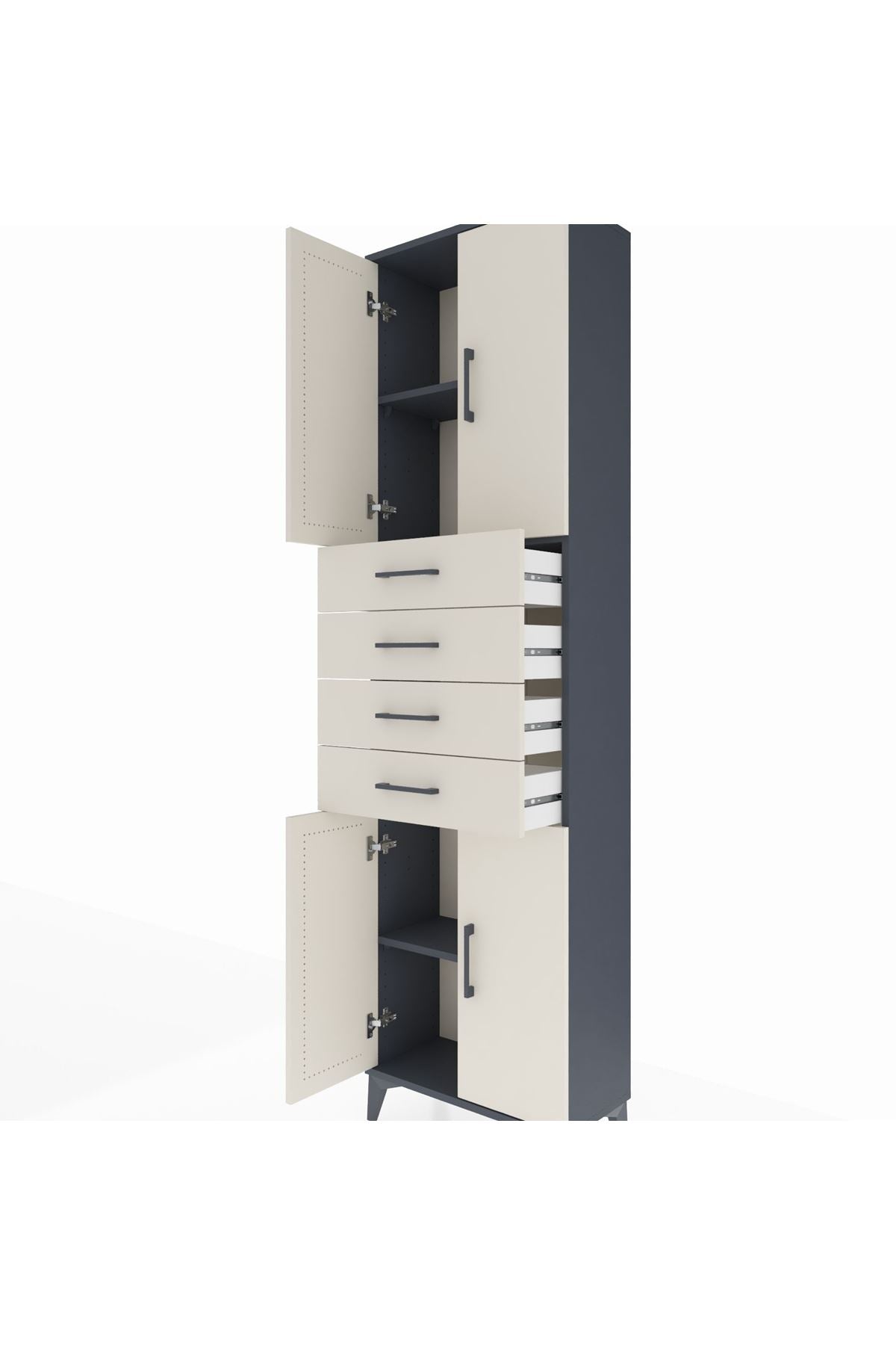 Arges Dolap 3 Raflı 4 Çekmeceli 4 Kapaklı 60x30x221 Antrasit-Aytaşı