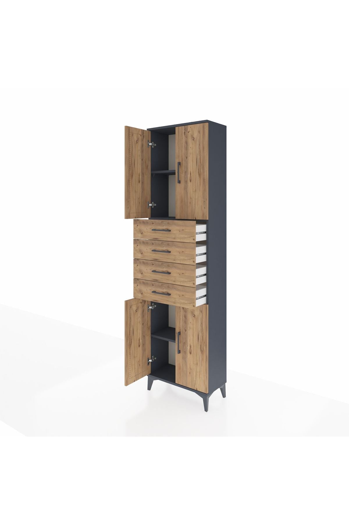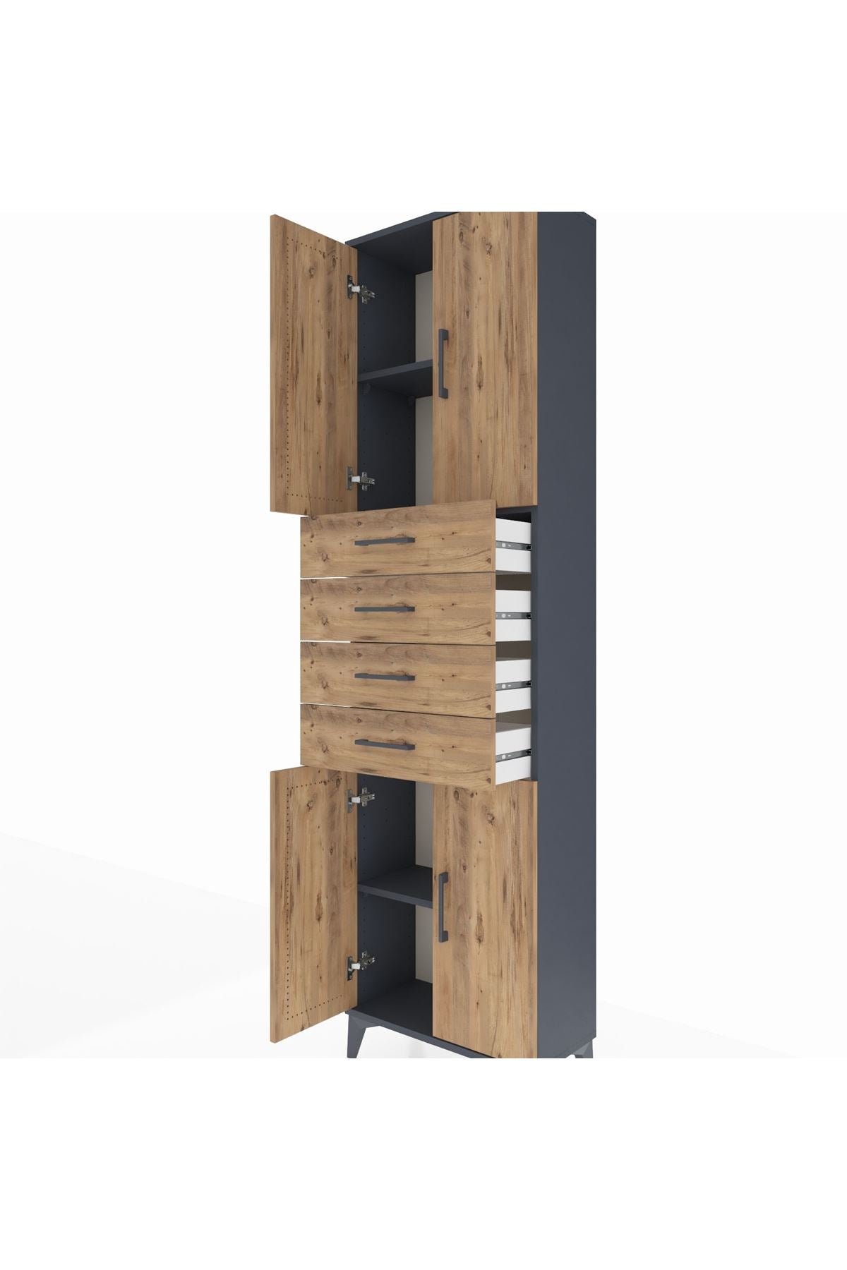 Arges Dolap 3 Raflı 4 Çekmeceli 4 Kapaklı 60x30x221 Antrasit-Çam