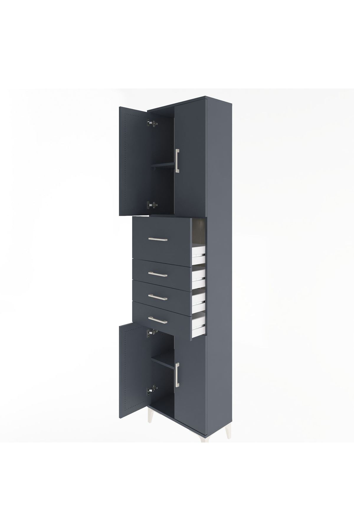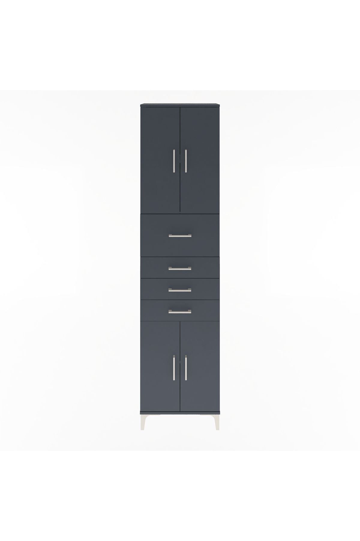 Arges Dolap 3 Raflı 4 Çekmeceli 4 Kapaklı 60x30x243 Antrasit-Antrasit