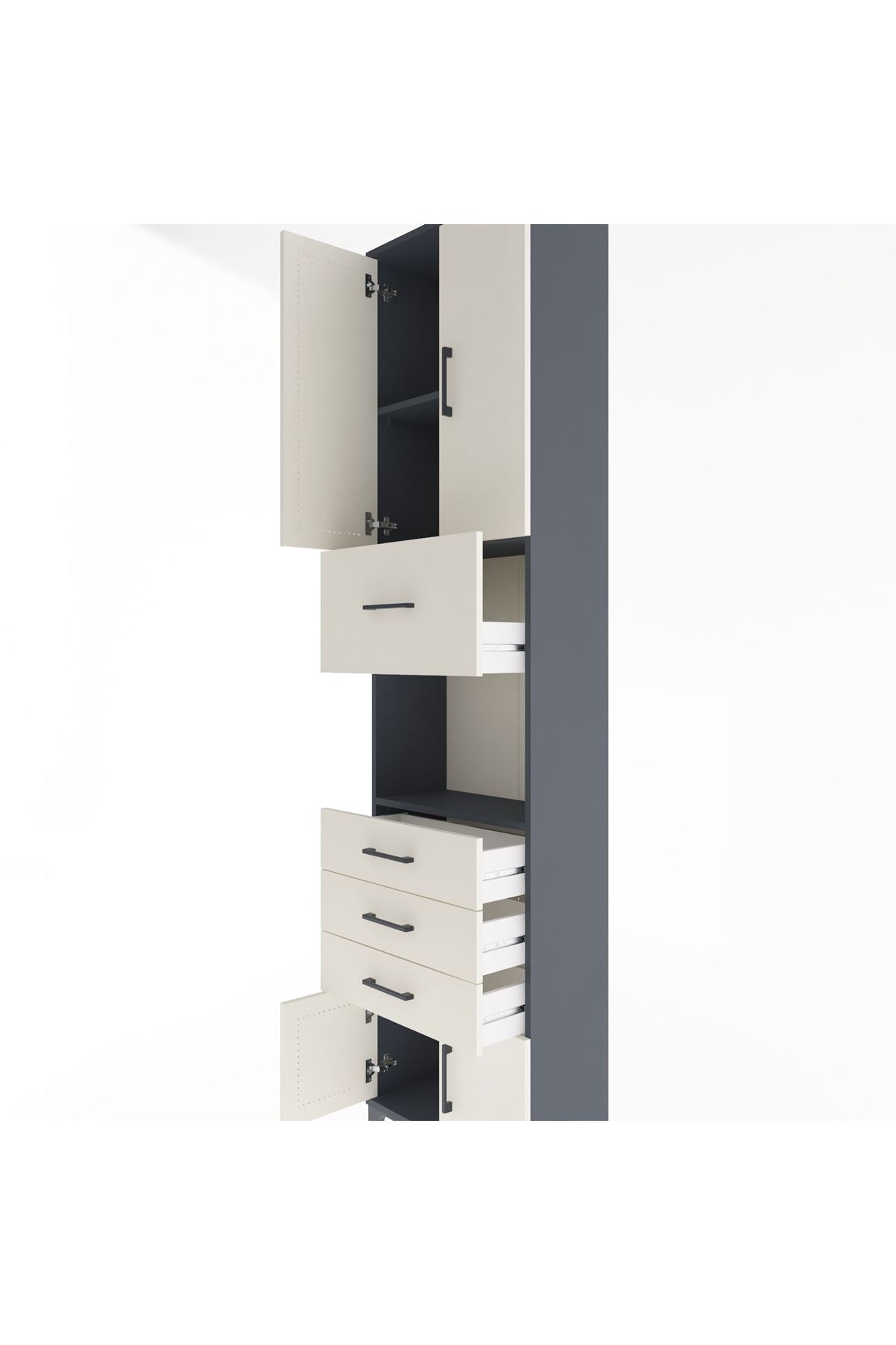 Arges Dolap 3 Raflı 4 Çekmeceli 4 Kapaklı 60x30x243 Antrasit-Aytaşı
