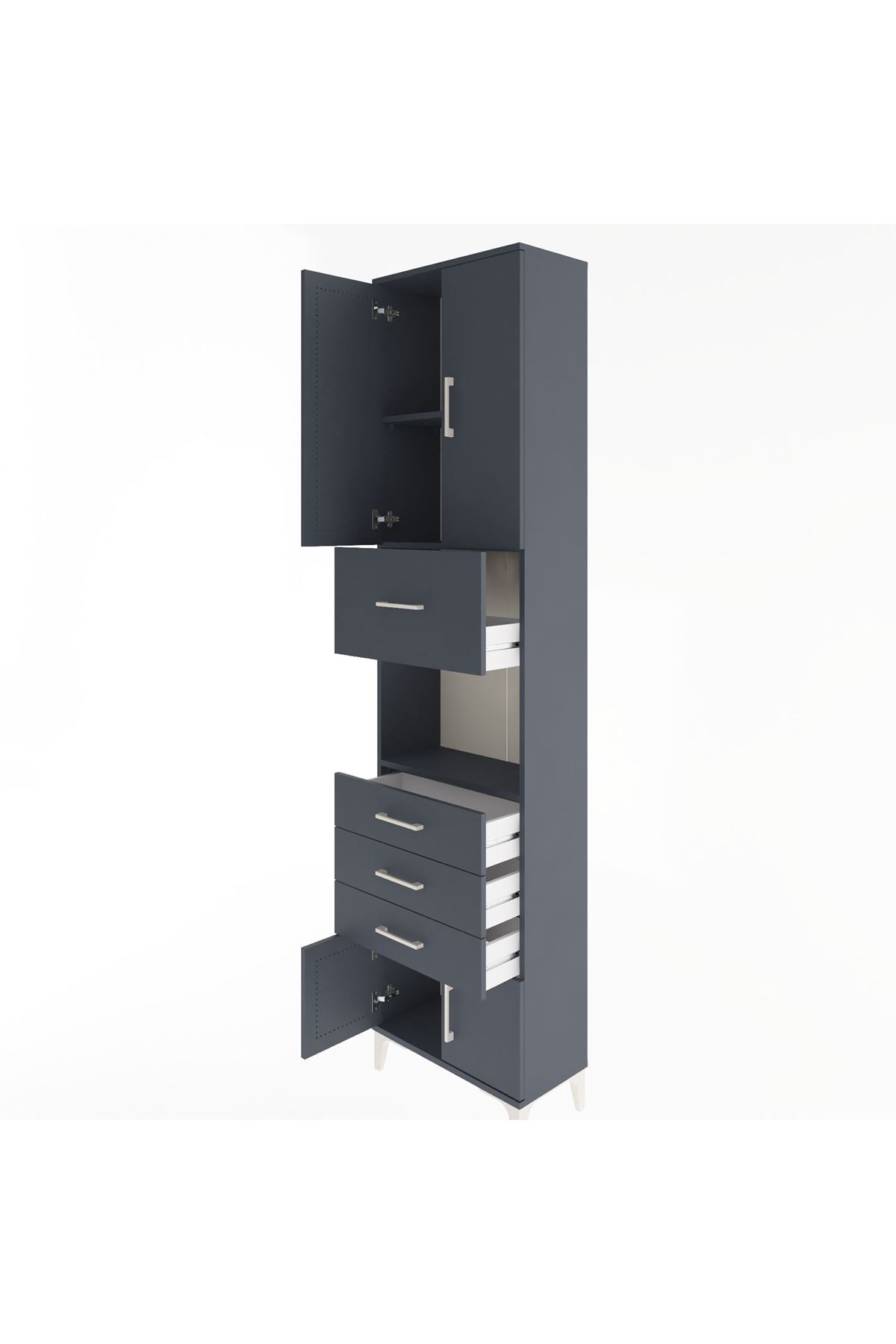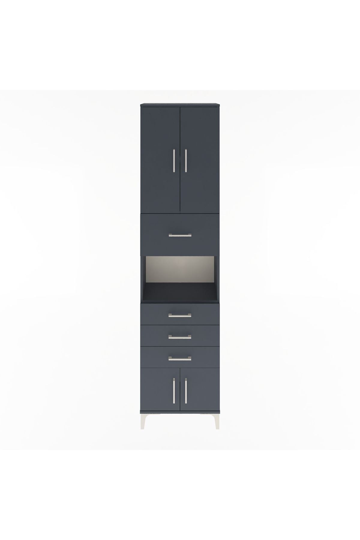 Arges Dolap 3 Raflı 4 Çekmeceli 4 Kapaklı 60x30x243 Antrasit-Antrasit