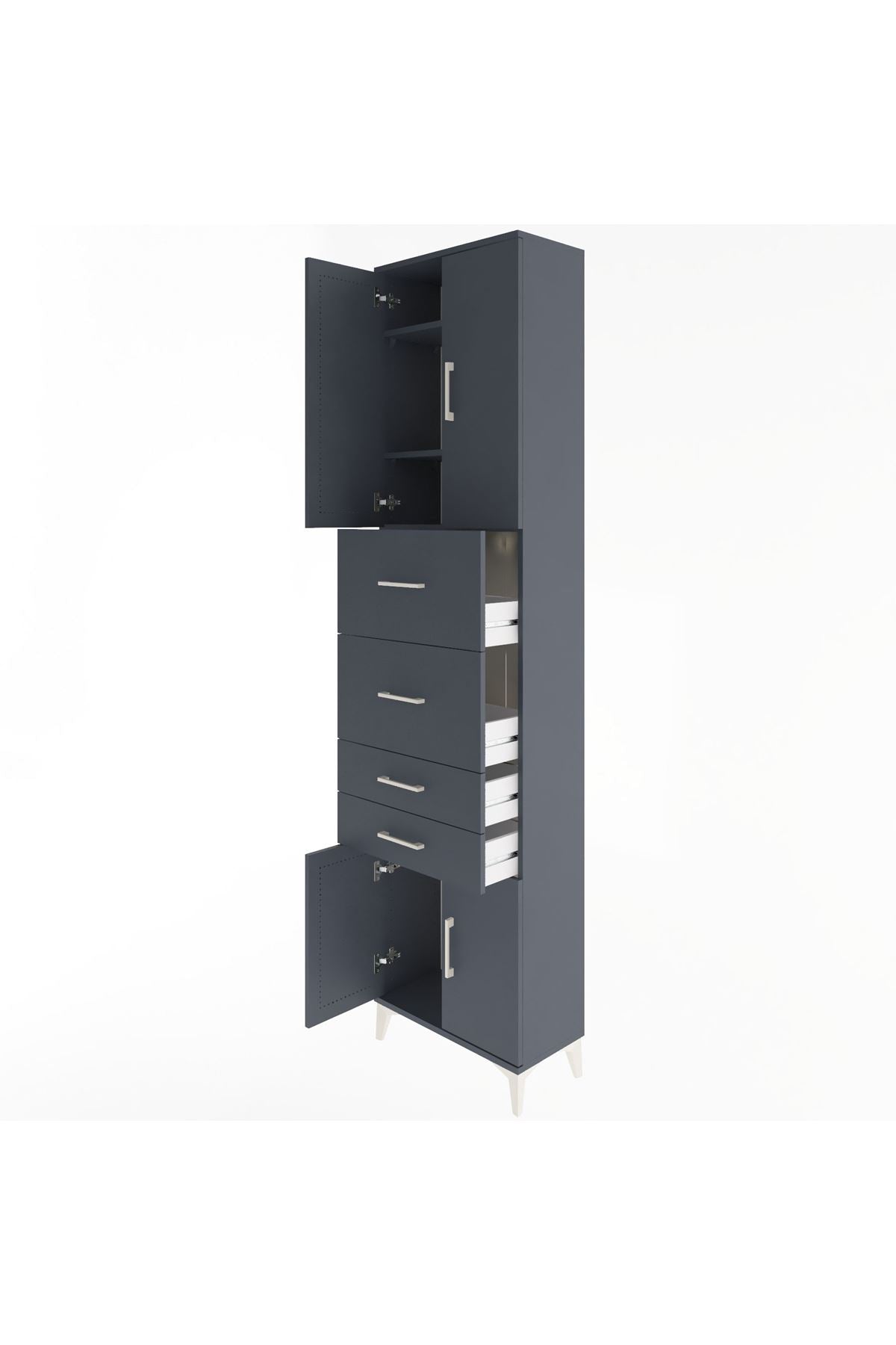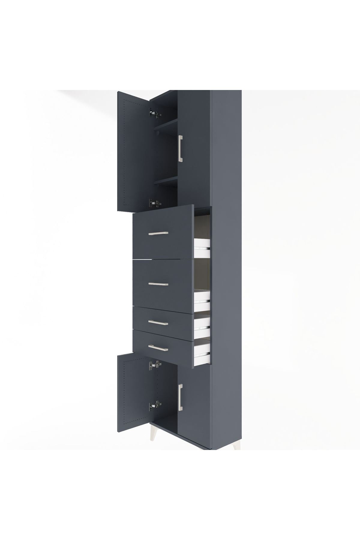 Arges Dolap 3 Raflı 4 Çekmeceli 4 Kapaklı 60x30x243 Antrasit-Antrasit