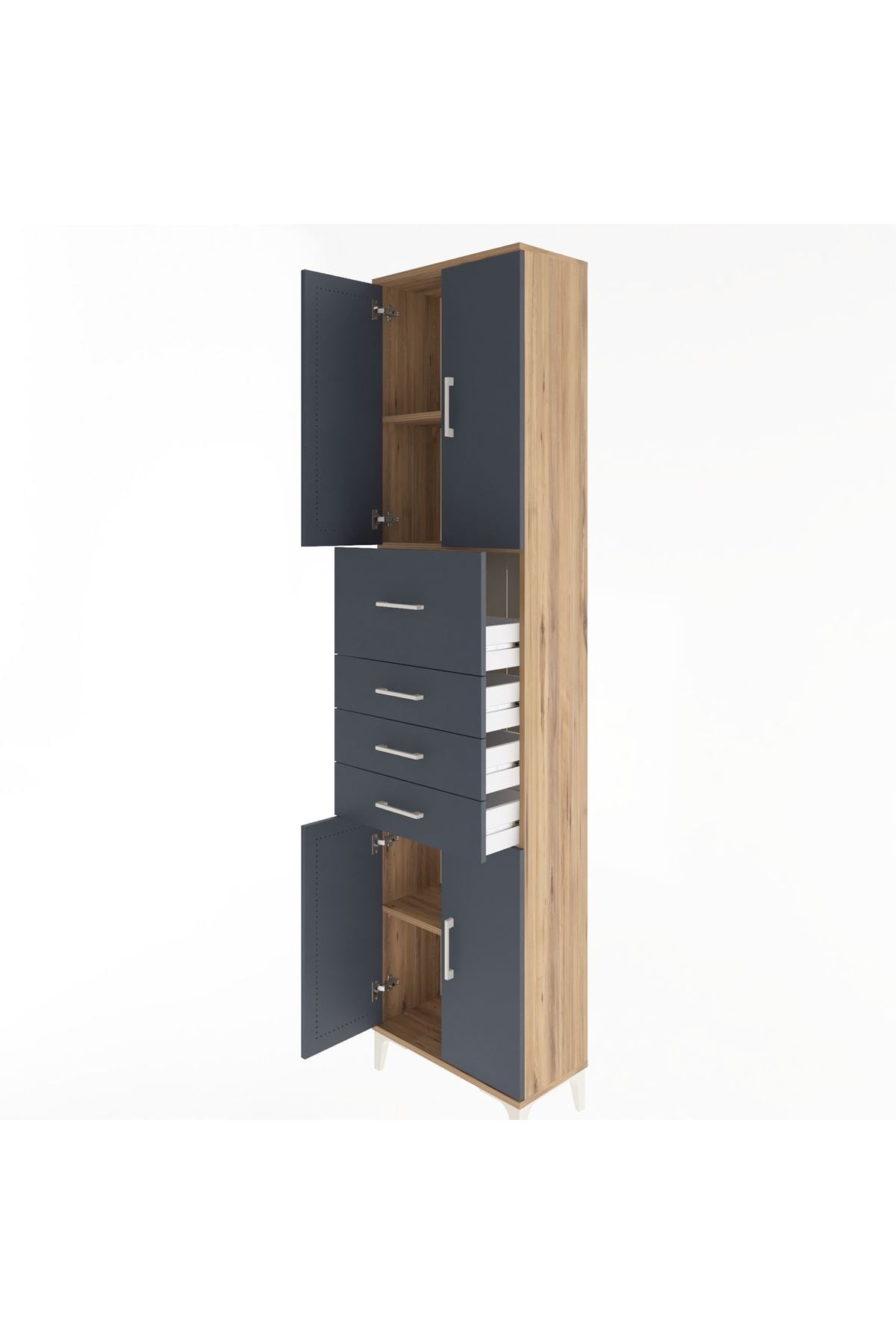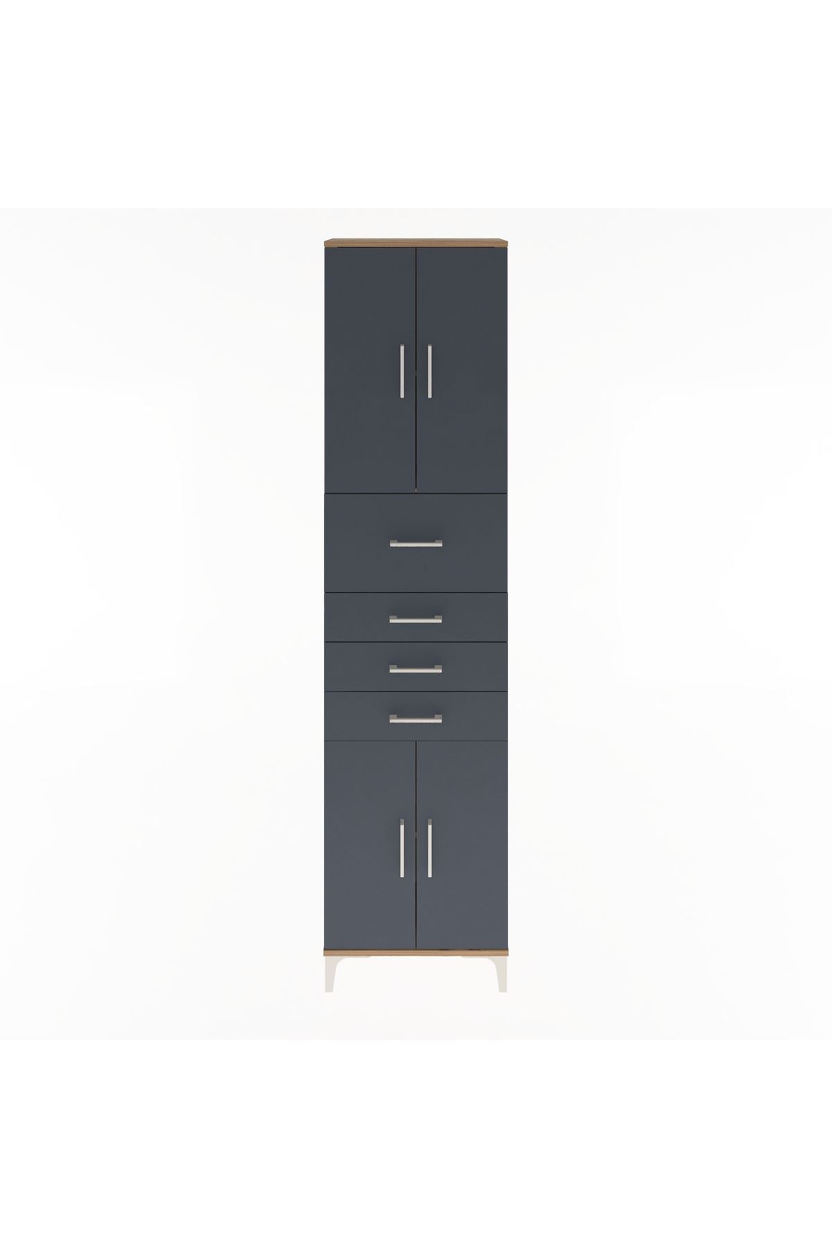 Arges Dolap 3 Raflı 4 Çekmeceli 4 Kapaklı 60x30x243 Çam-Antrasit