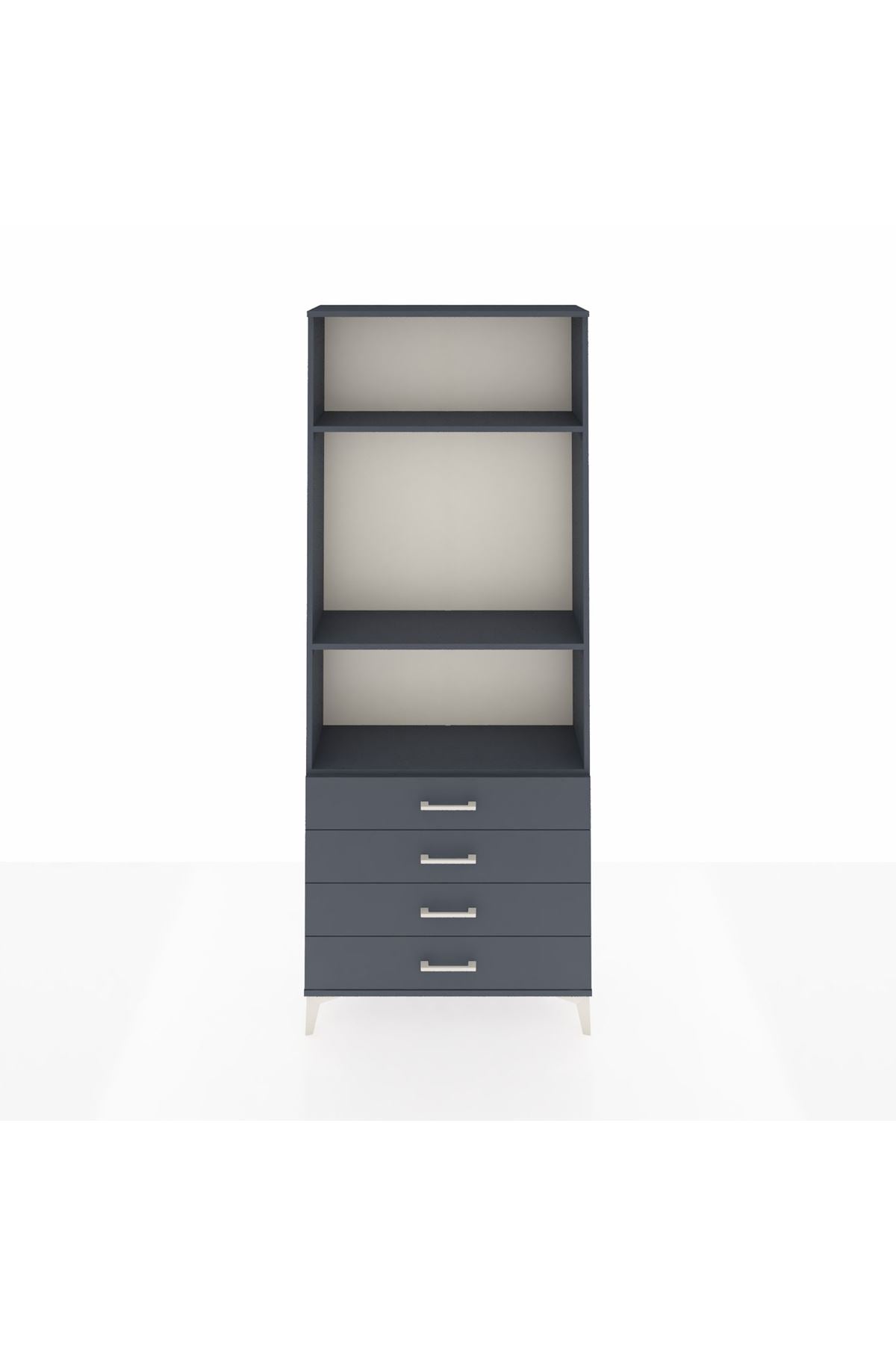 Arges Dolap 3 Raflı 4 Çekmeceli 88x30x221 Antrasit-Antrasit