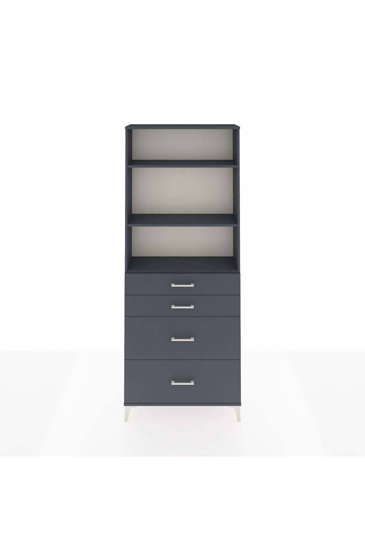 Arges Dolap 3 Raflı 4 Çekmeceli 88x30x221 Antrasit-Antrasit