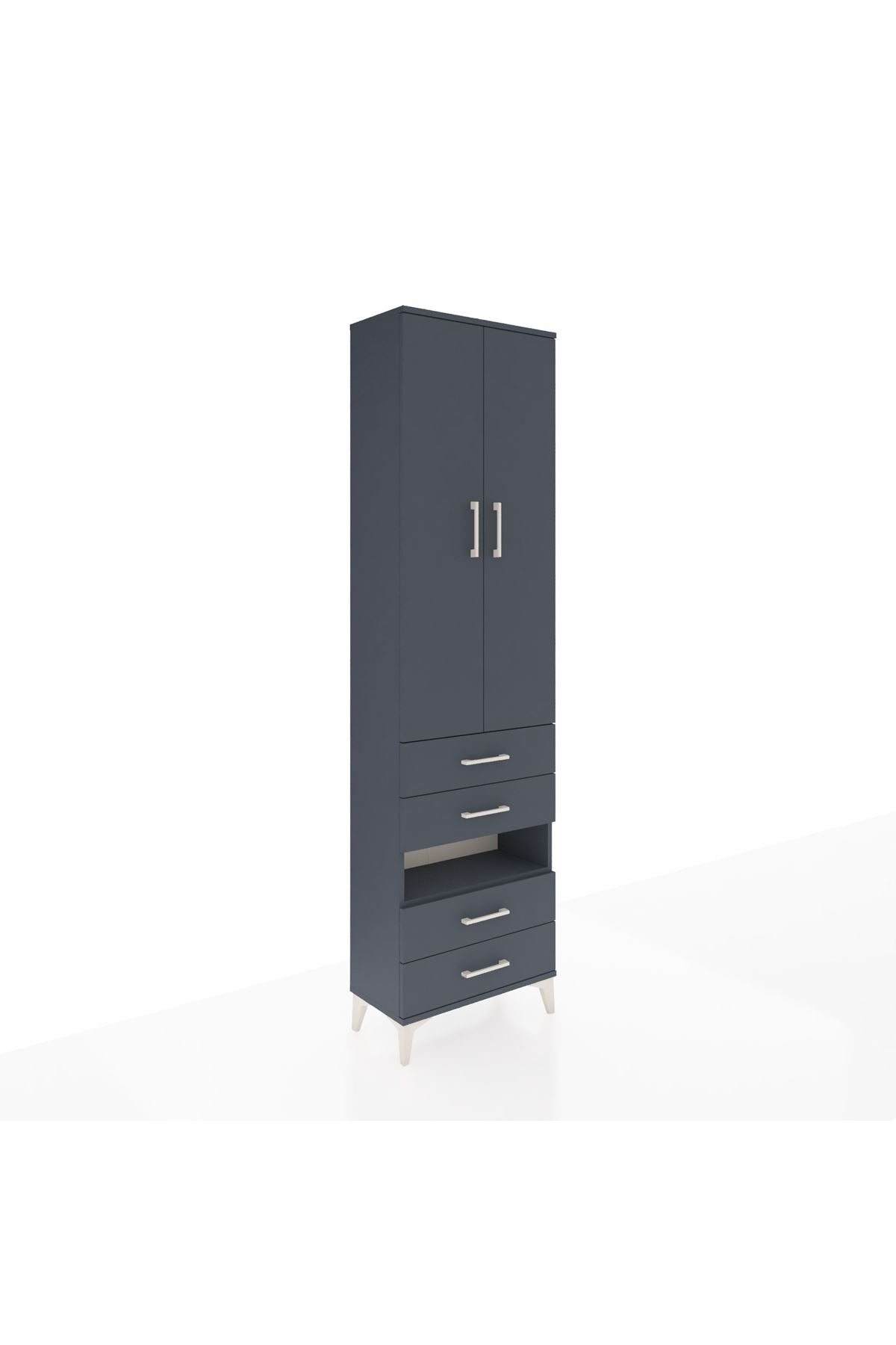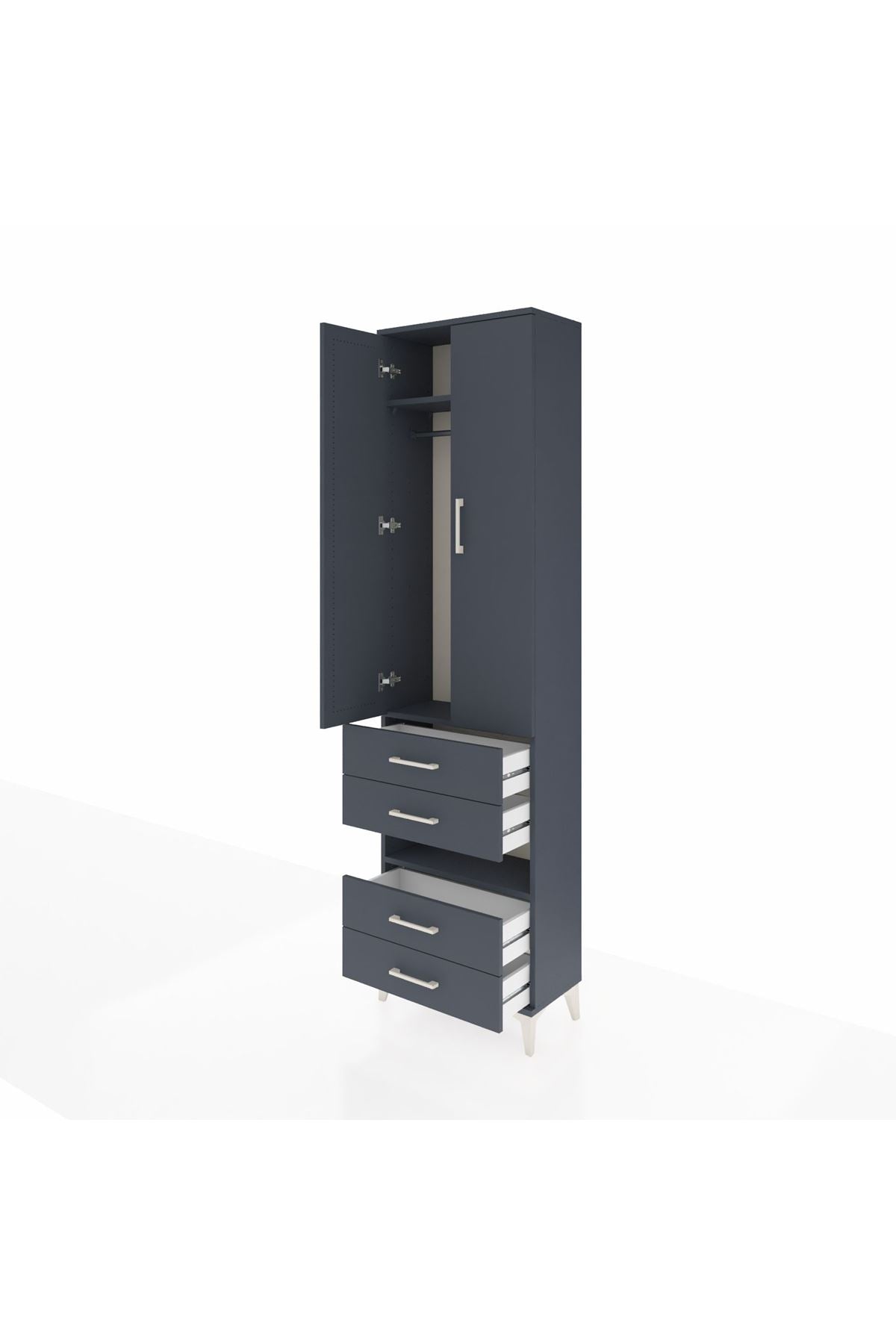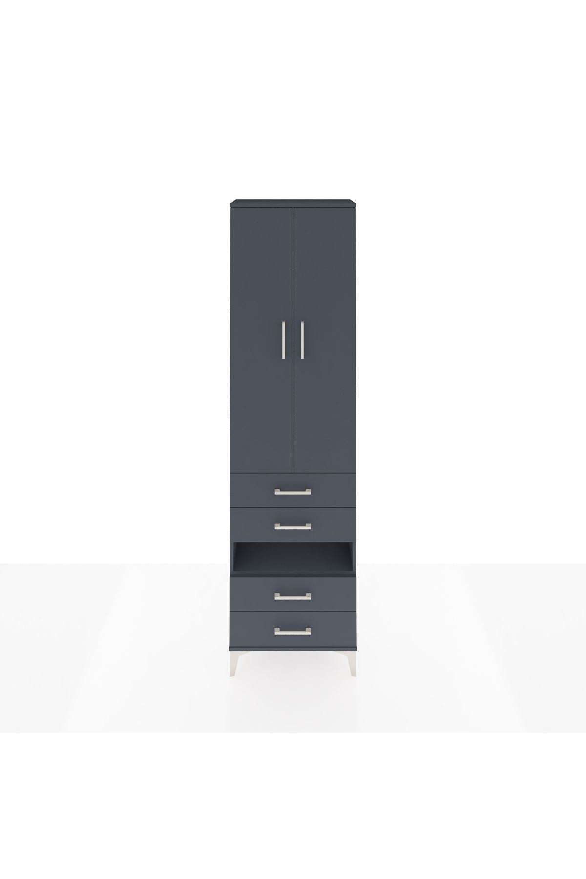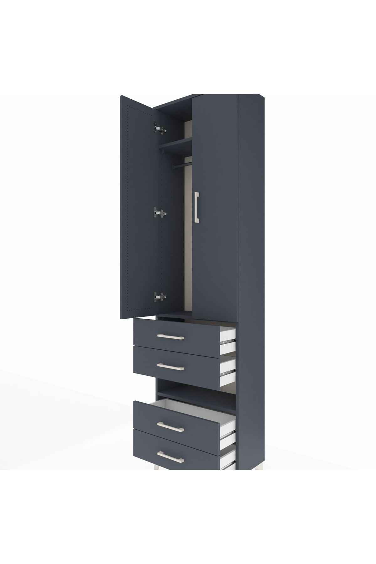 Arges Dolap 3 Raflı 4 Çekmeceli Tek Askılı 60x30x221 Antrasit-Antrasit