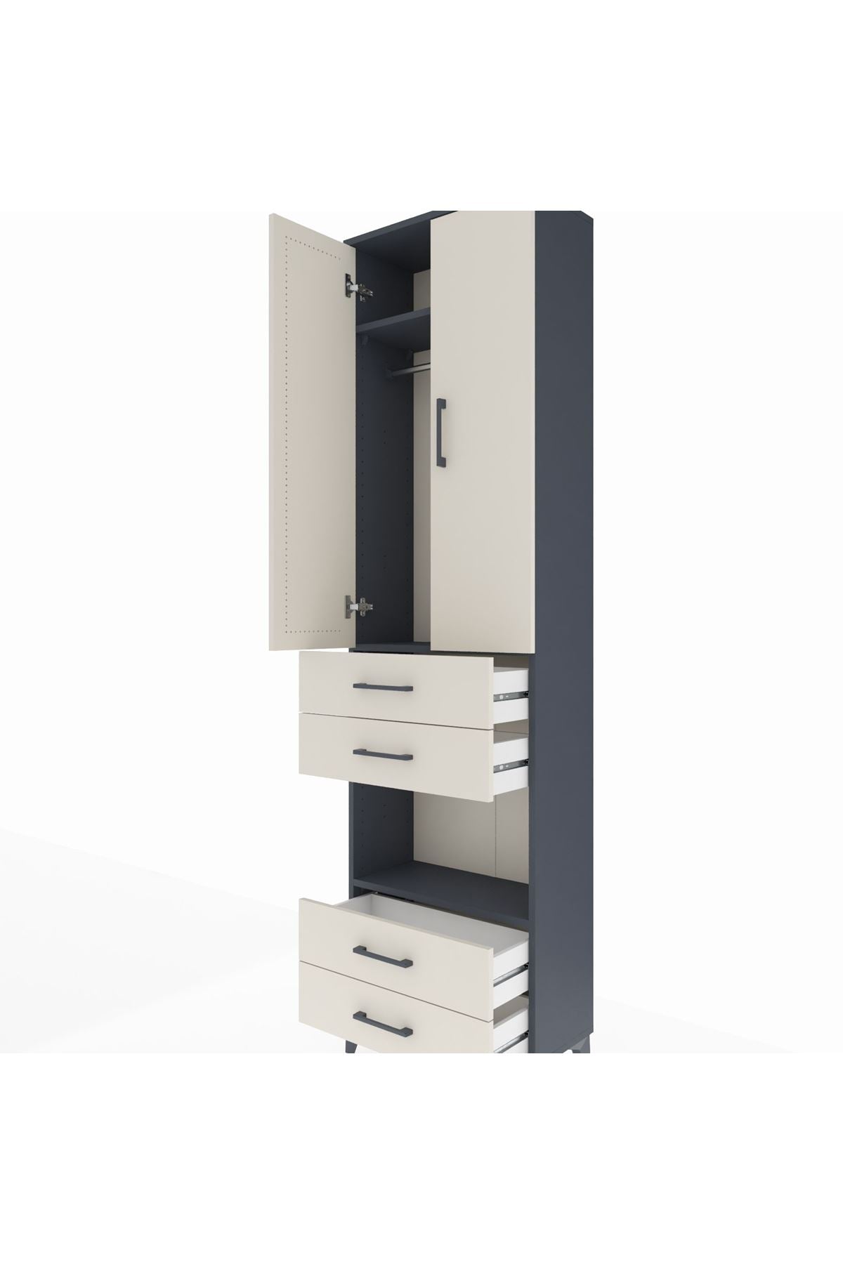 Arges Dolap 3 Raflı 4 Çekmeceli Tek Askılı 60x30x221 Antrasit-Aytaşı