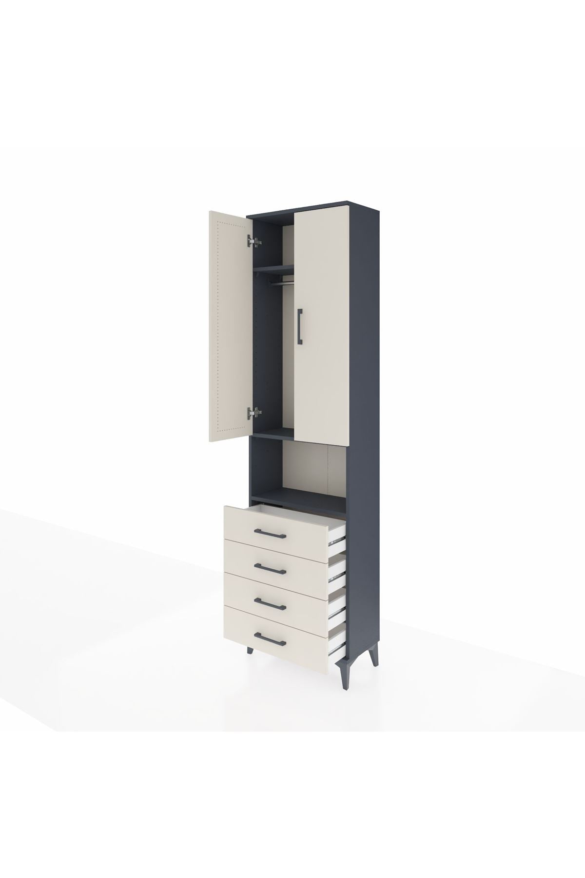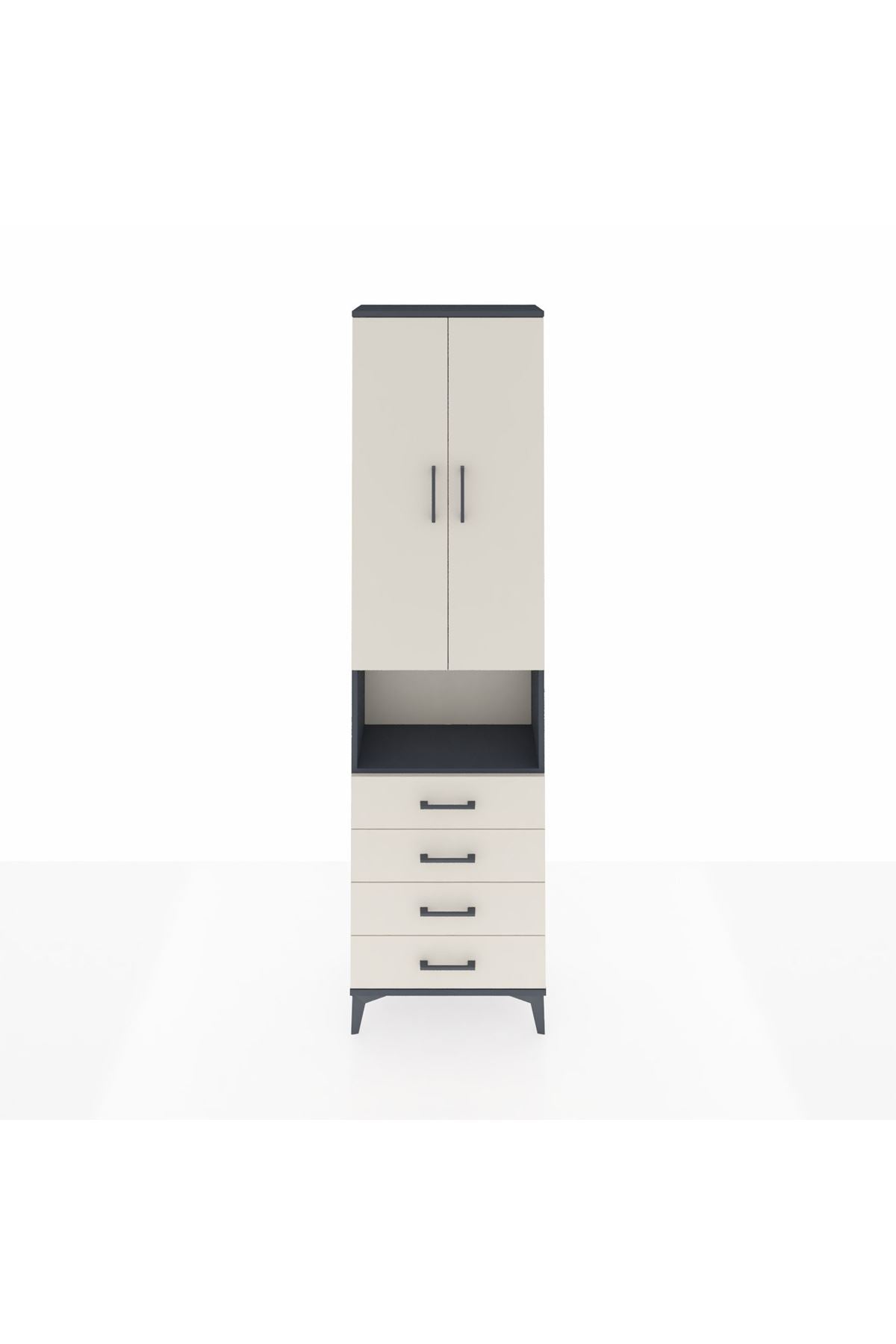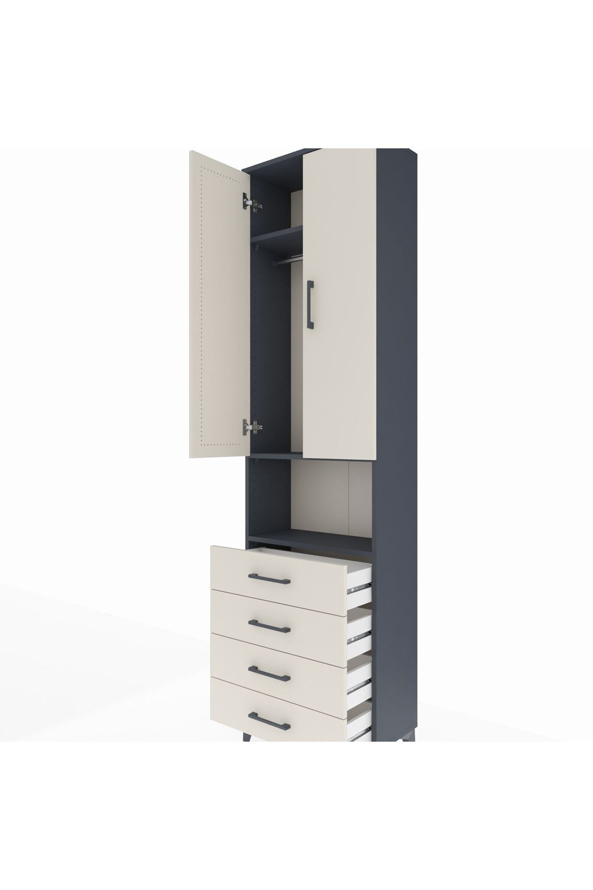 Arges Dolap 3 Raflı 4 Çekmeceli Tek Askılı 60x30x221 Antrasit-Aytaşı