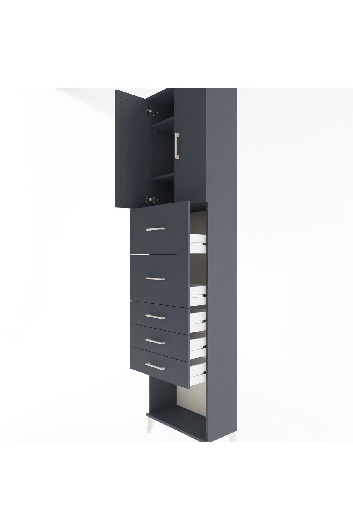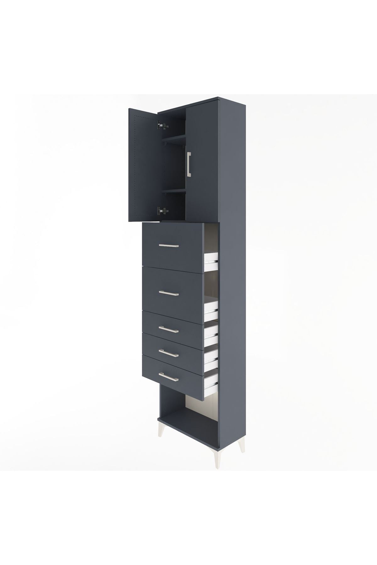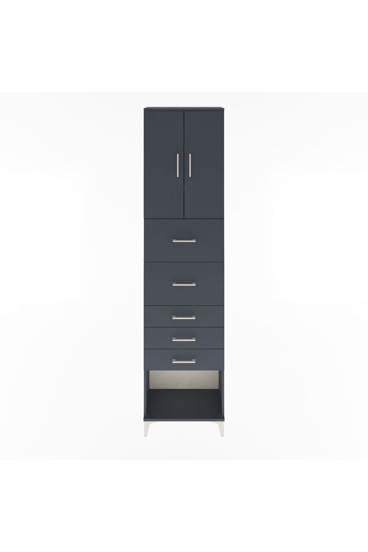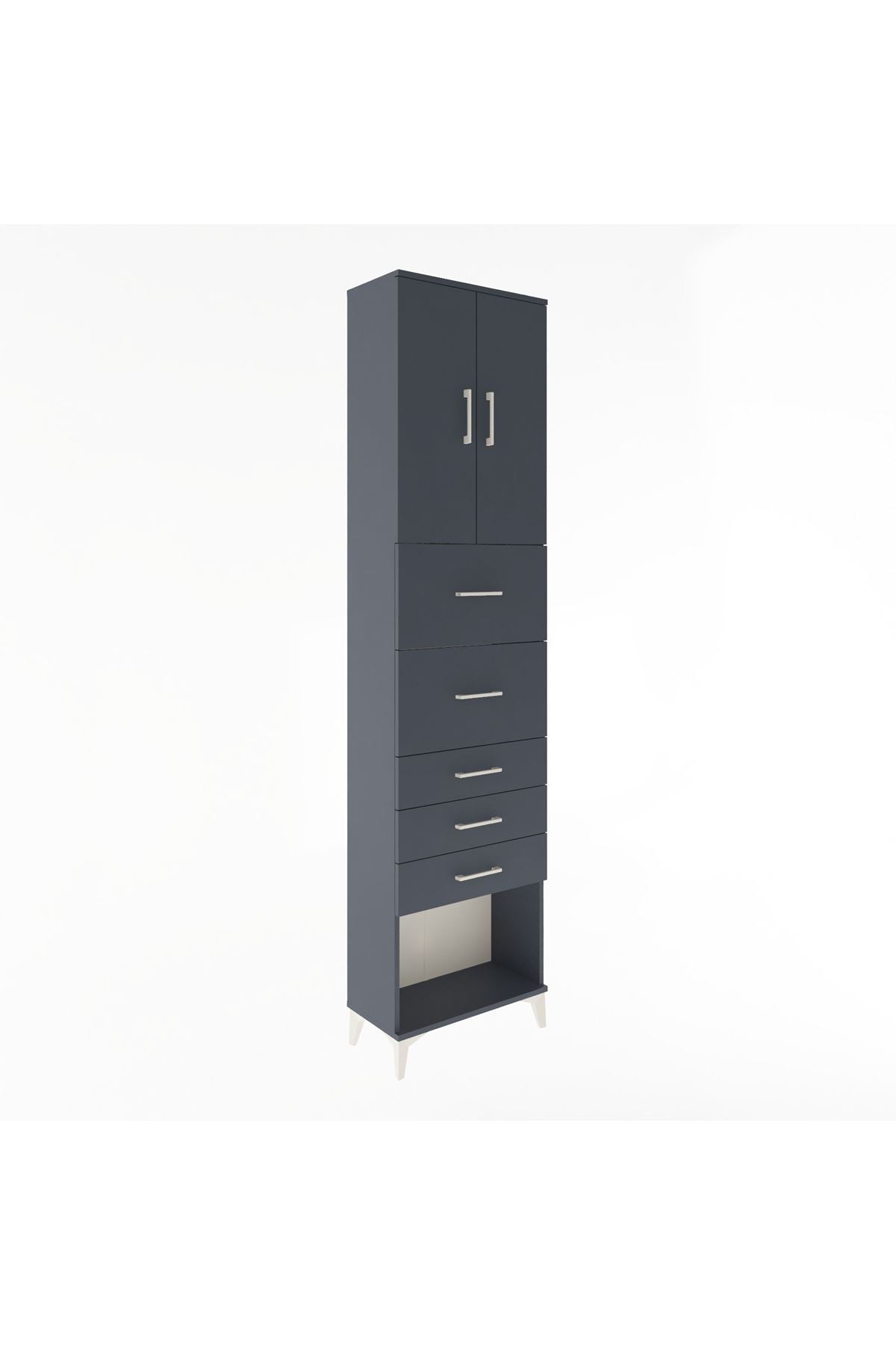 Arges Dolap 3 Raflı 5 Çekmeceli 2 Kapaklı 60x30x243 Antrasit-Antrasit