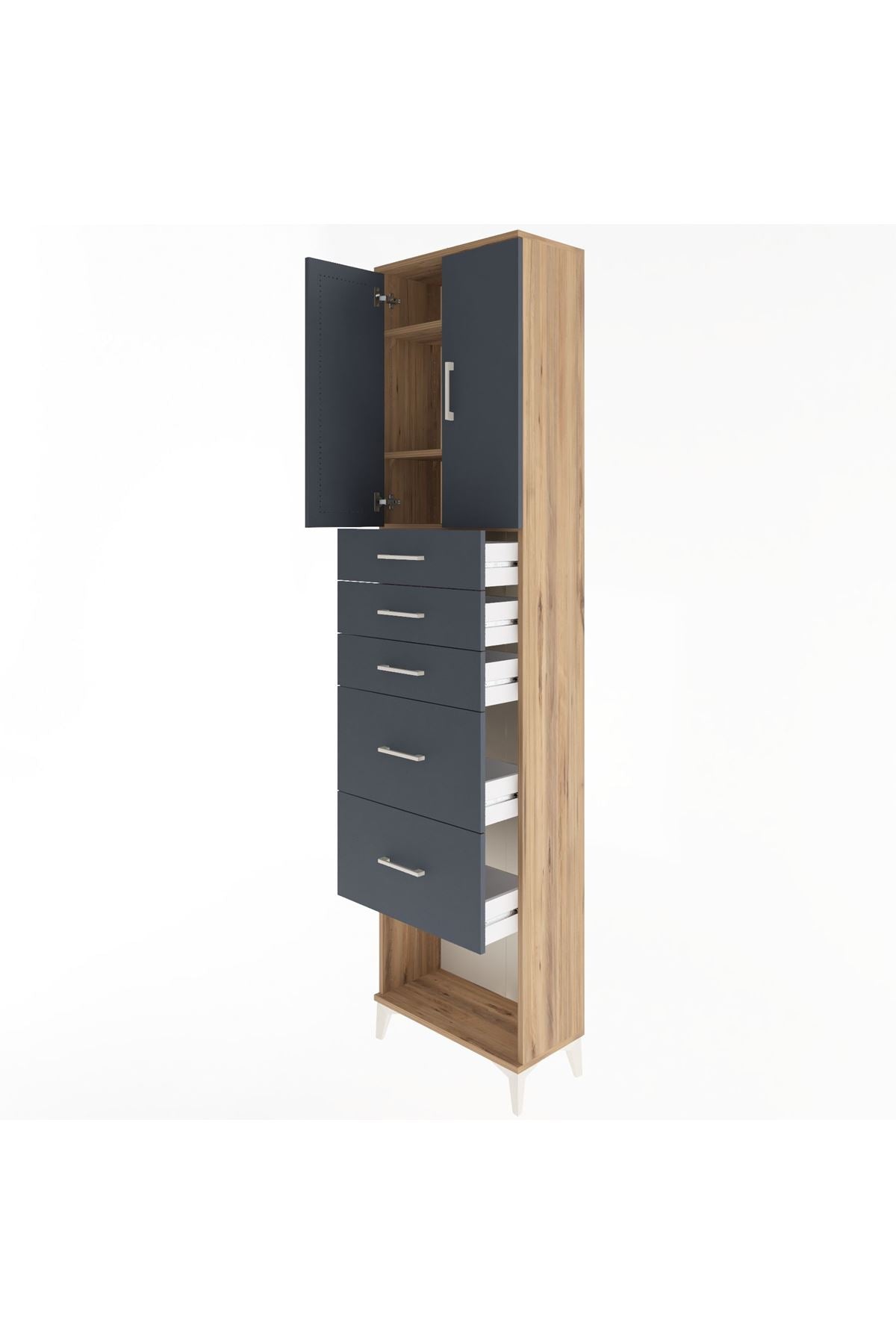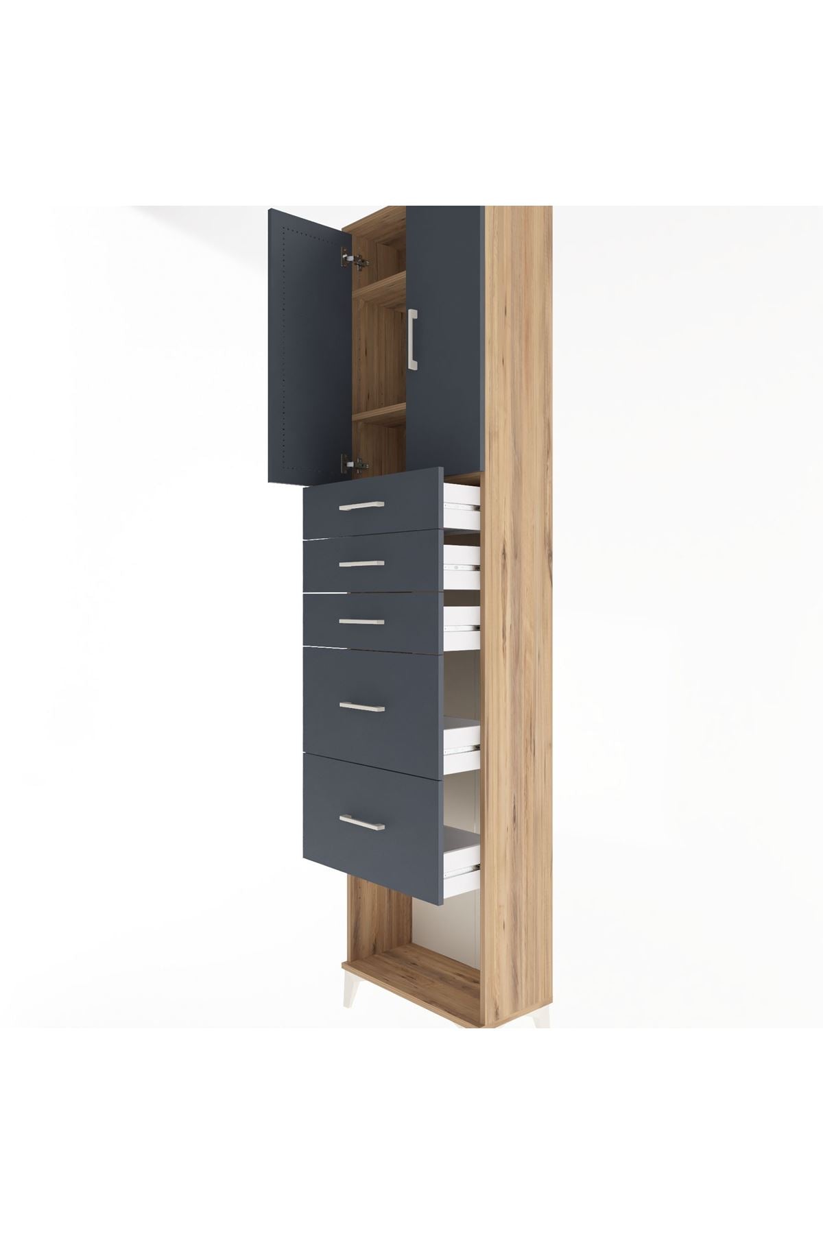 Arges Dolap 3 Raflı 5 Çekmeceli 2 Kapaklı 60x30x243 Çam-Antrasit