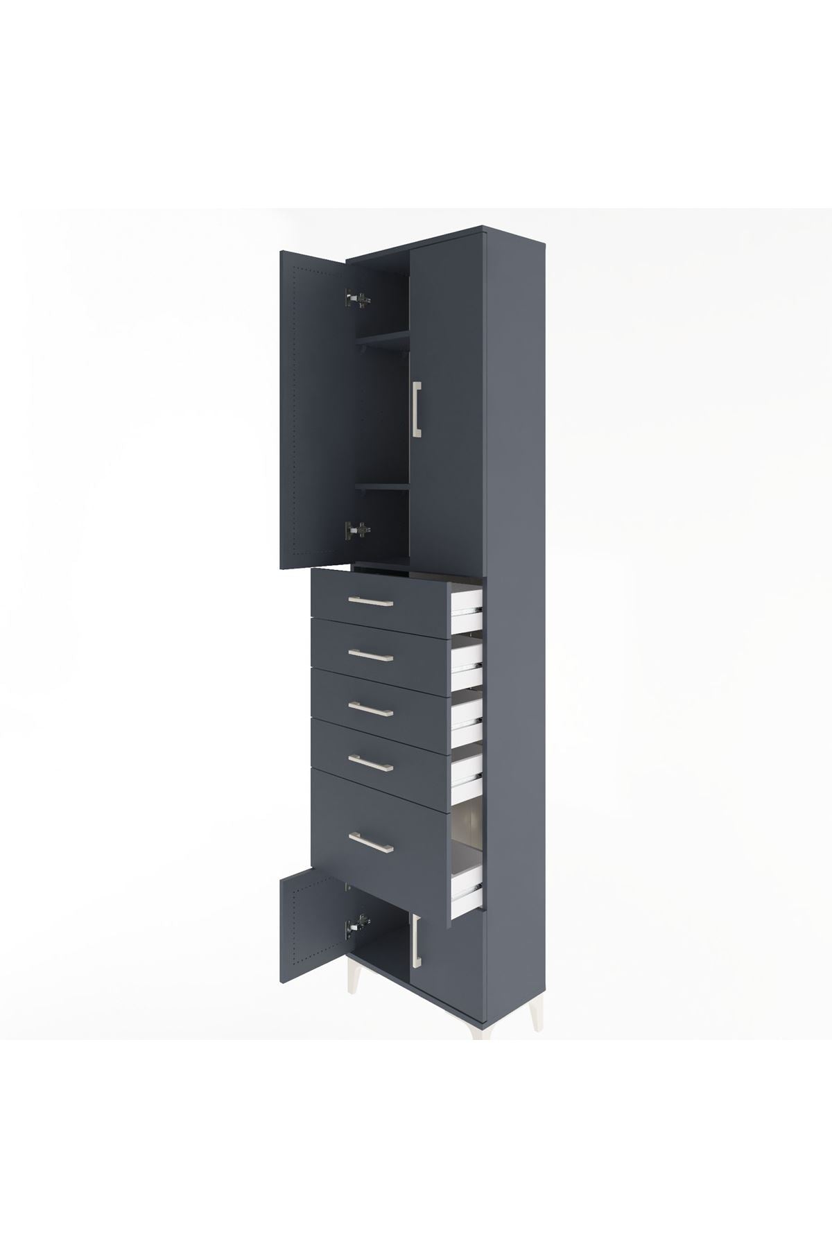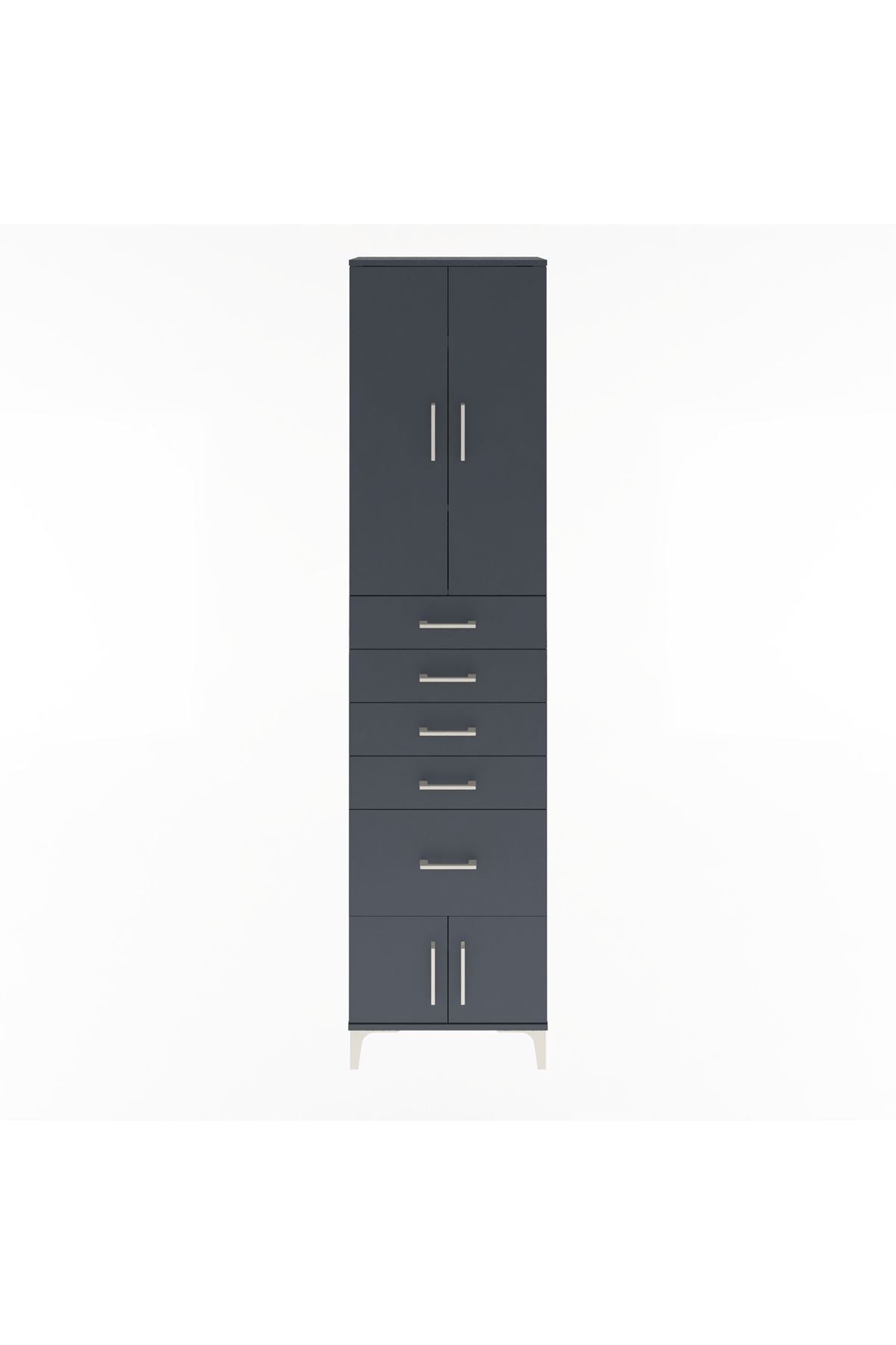 Arges Dolap 3 Raflı 5 Çekmeceli 4 Kapaklı 60x30x243 Antrasit-Antrasit