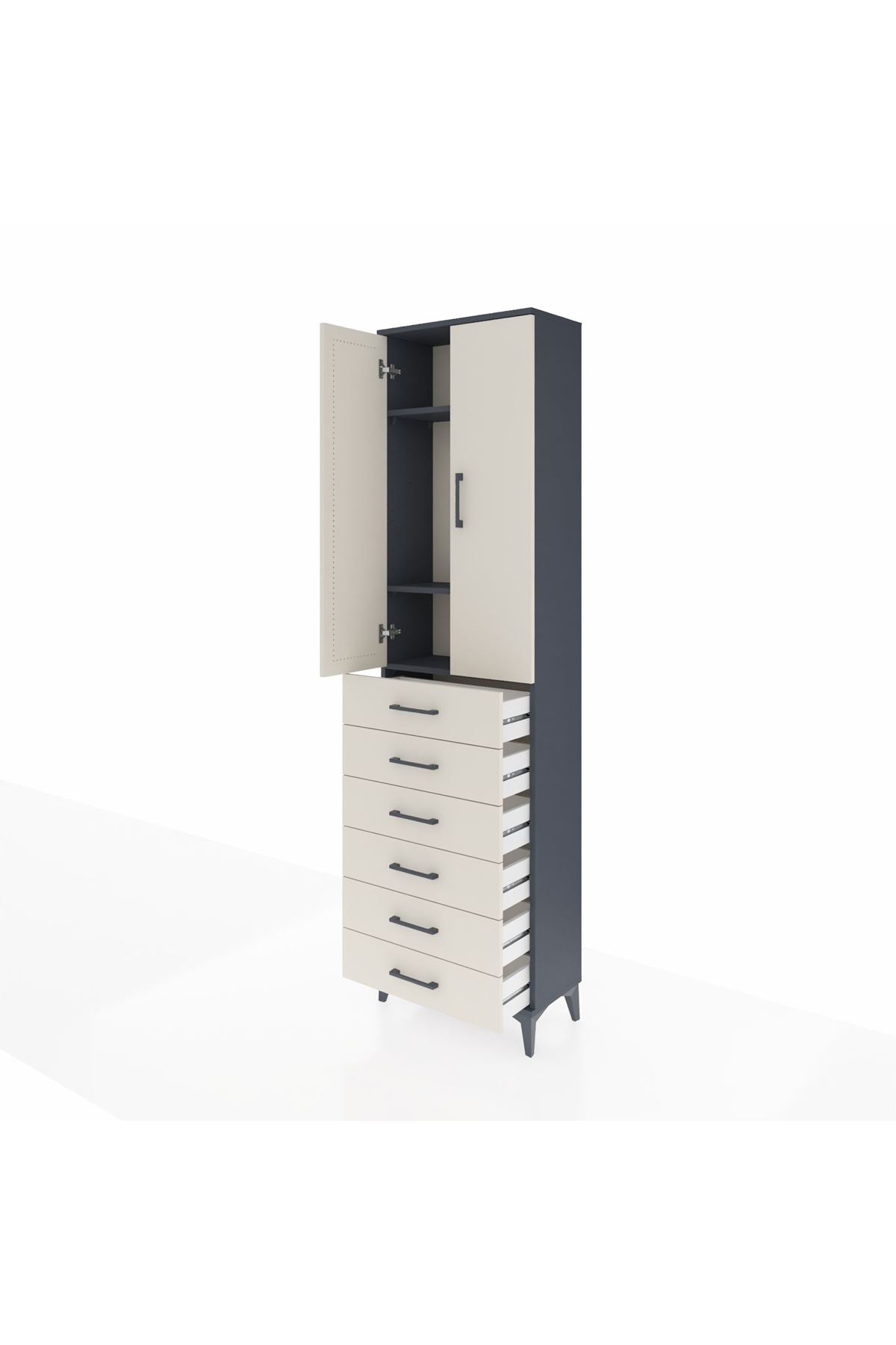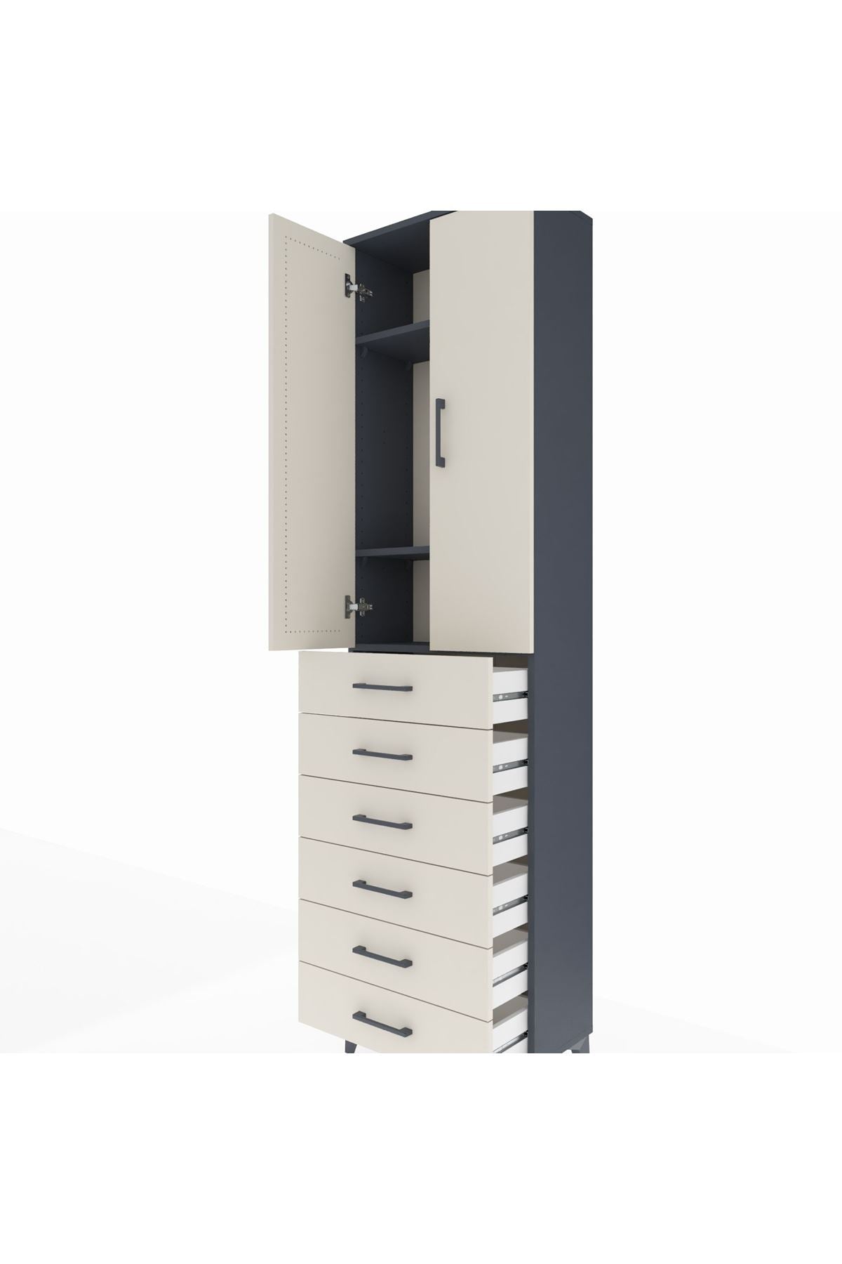 Arges Dolap 3 Raflı 6 Çekmeceli 2 Kapaklı 60x30x221 Antrasit-Aytaşı