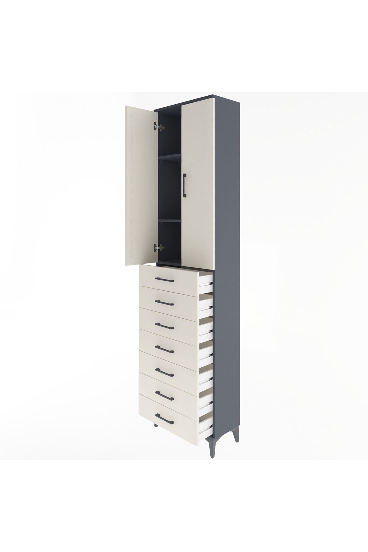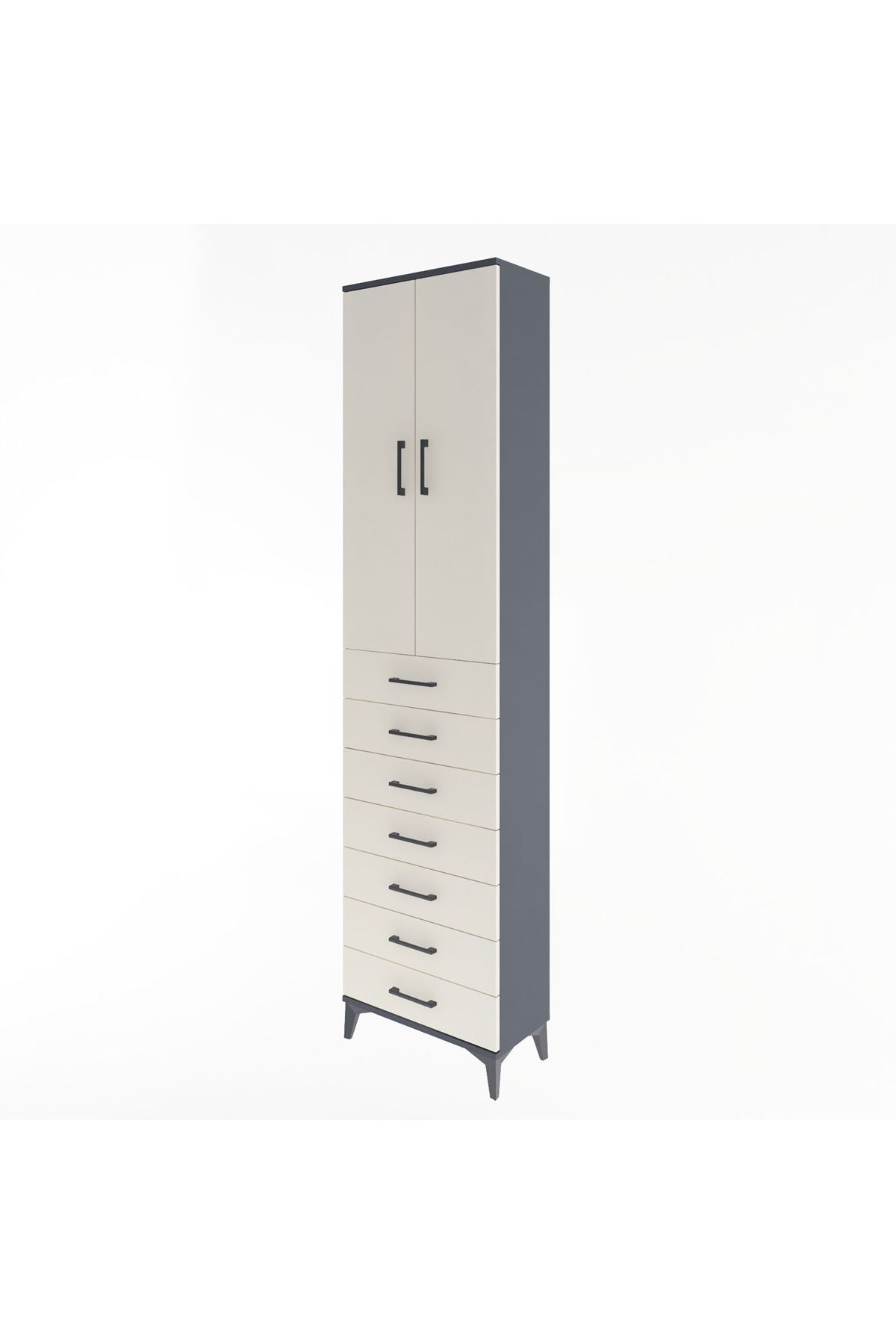 Arges Dolap 3 Raflı 7 Çekmeceli 2 Kapaklı 60x30x243 Antrasit-Aytaşı