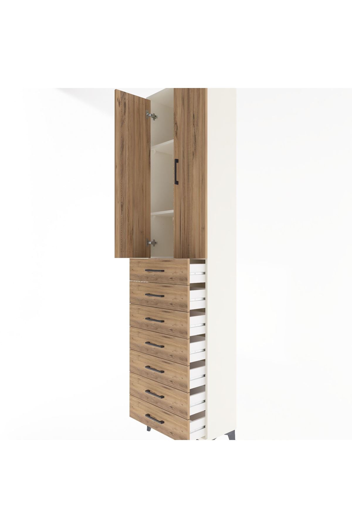 Arges Dolap 3 Raflı 7 Çekmeceli 2 Kapaklı 60x30x243 Aytaşı-Çam