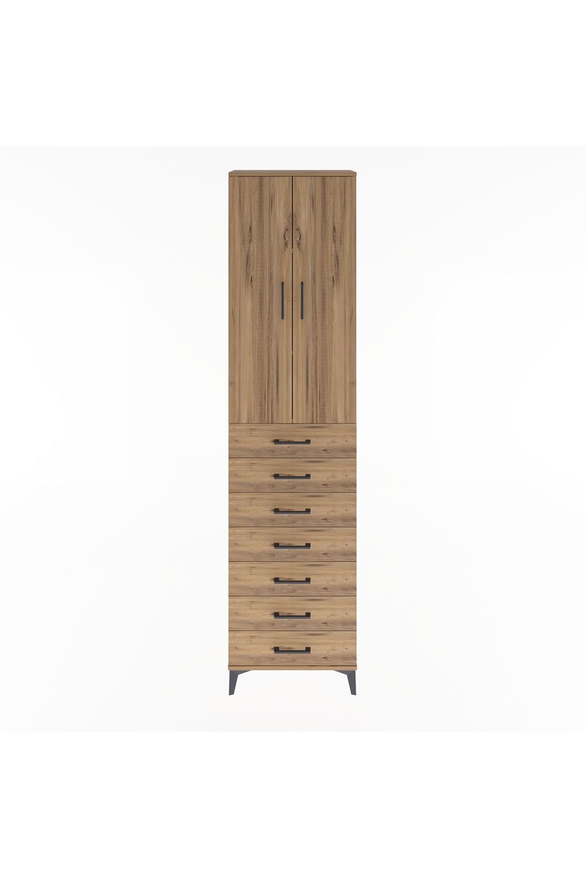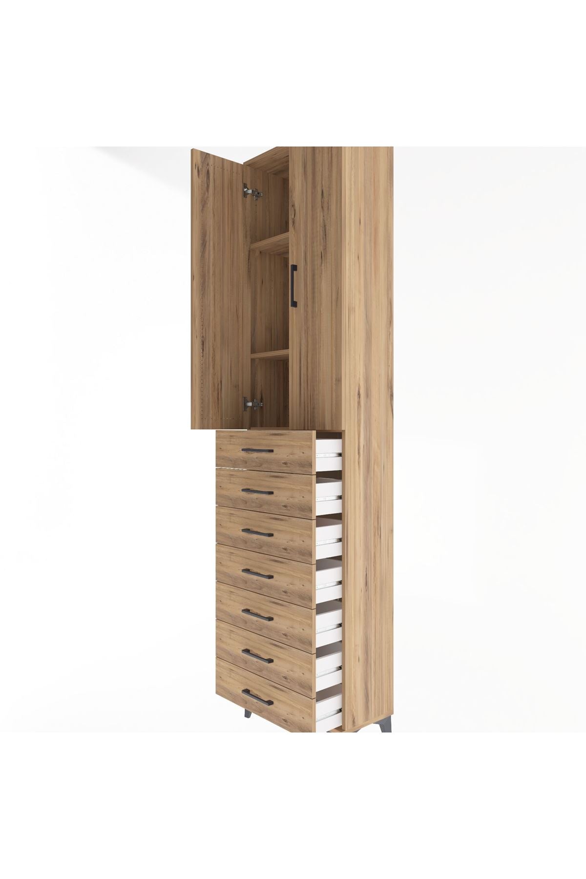 Arges Dolap 3 Raflı 7 Çekmeceli 2 Kapaklı 60x30x243 Çam-Çam
